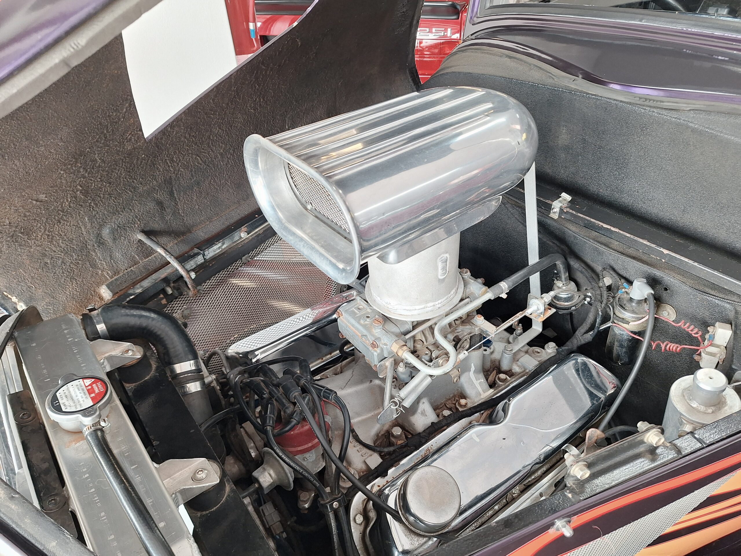 The iconic ’34 Ford 3-window coupe is one of the all-time great hot rod shapes, and this build leans fully into that street rod attitude. Finished in bold purple with traditional flame detailing, it has serious presence – the kind of car that looks like it’s doing 100 km/h even when it’s standing still.