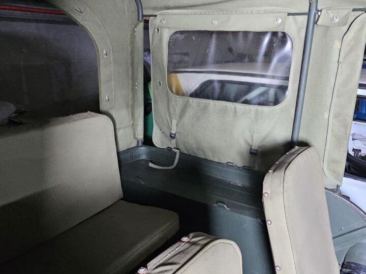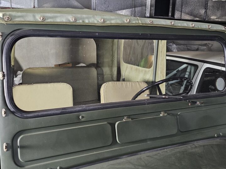 Finished in classic Army Green inside and out, it sits on good tyres and is registered as a built-up vehicle, with papers and licence disc up to date. The engine is currently a non-runner and will need to be checked and recommissioned, and there are still some finishing touches required to complete the build.