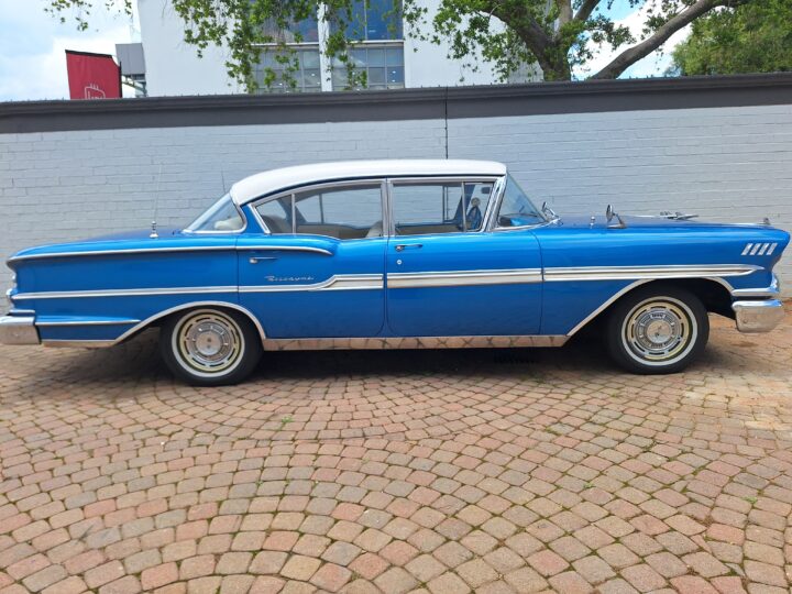 The 1958 Chevrolet Biscayne stands as one of Chevy’s most distinctive full-size models of the era, known for its clean lines, broad stance, and unmistakable late-’50s styling. With its quad headlights, sweeping bodywork, and signature rear design, the Biscayne offers all the visual drama of the period while remaining the more understated, driver-focused model in Chevy’s lineup.
