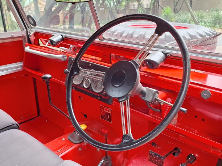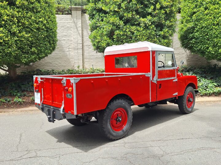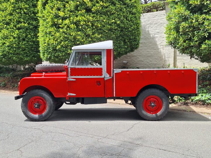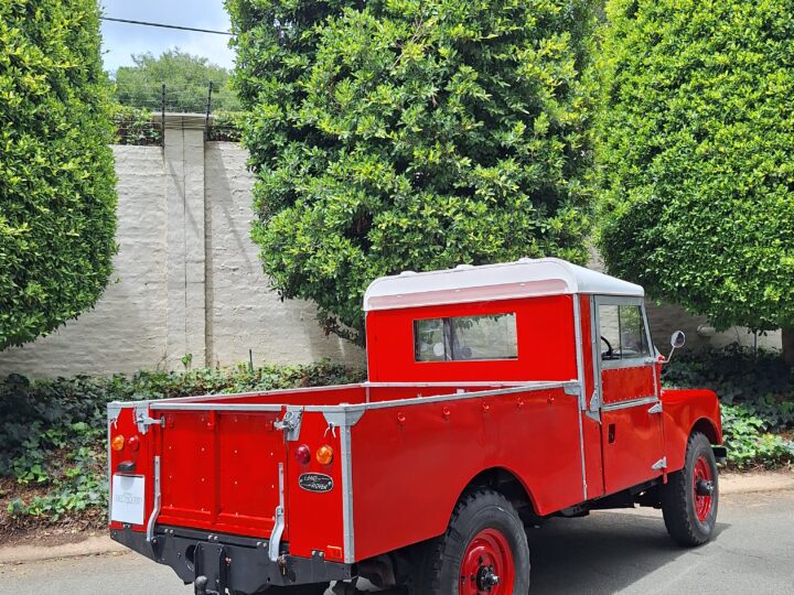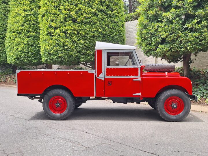 A proper old-school Landy, this 1958 Series I 109 Pick-Up is the real deal – rugged, simple and built to work. Finished in head-turning Fire Engine Red with matching wheels and a white roof, it looks every bit the classic utility you’d expect to see on a farm, a game lodge or leading a vintage convoy.