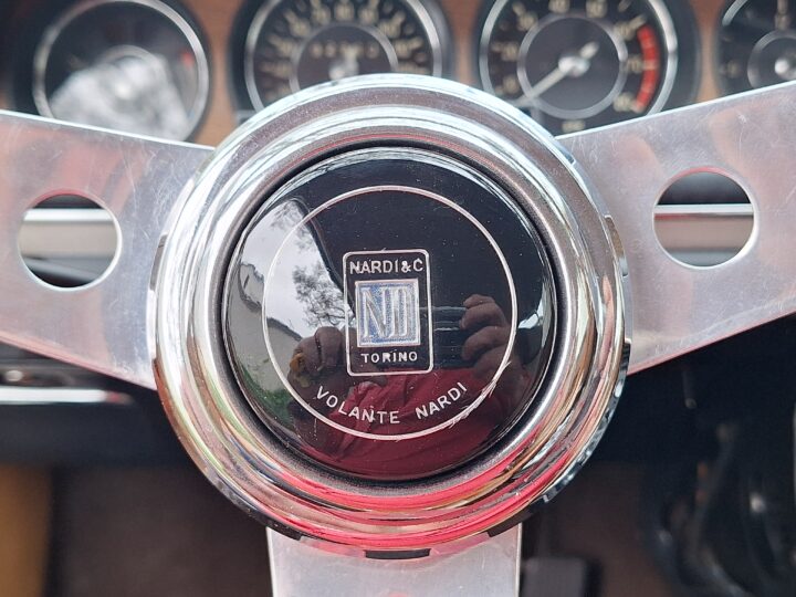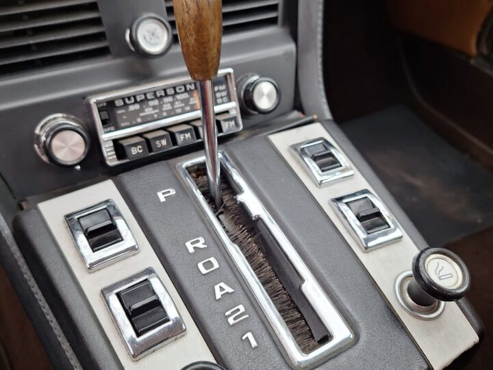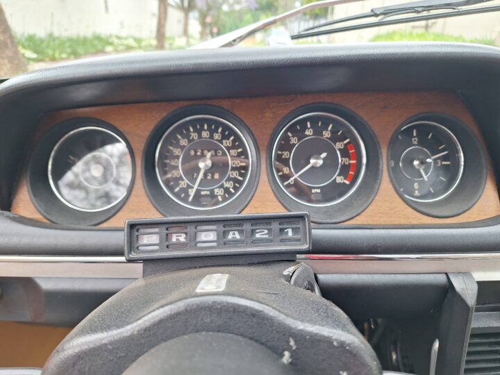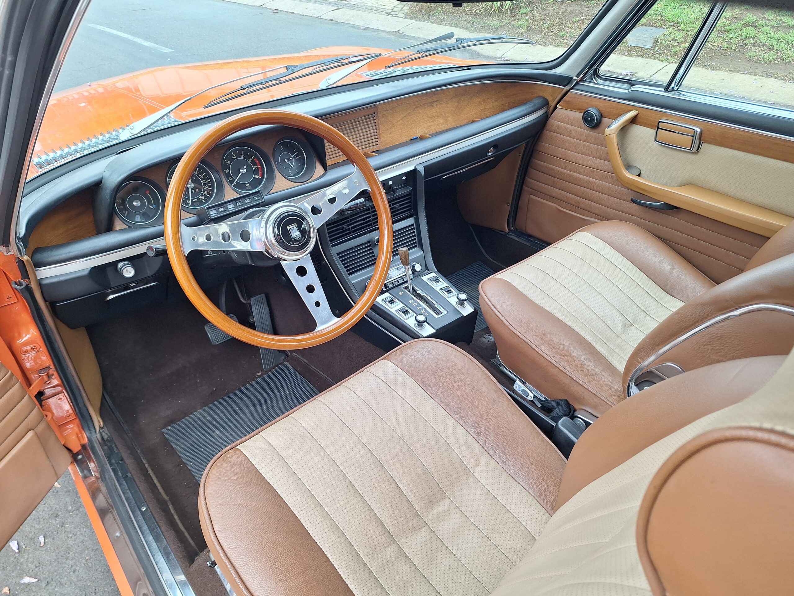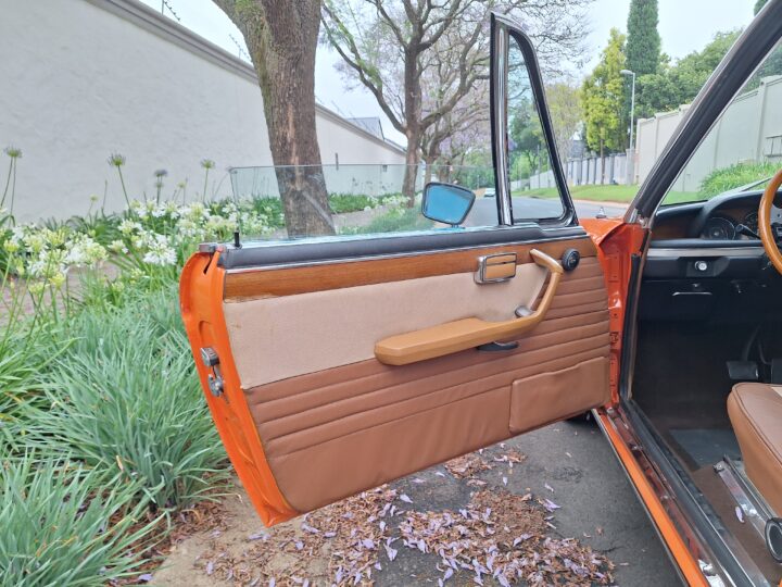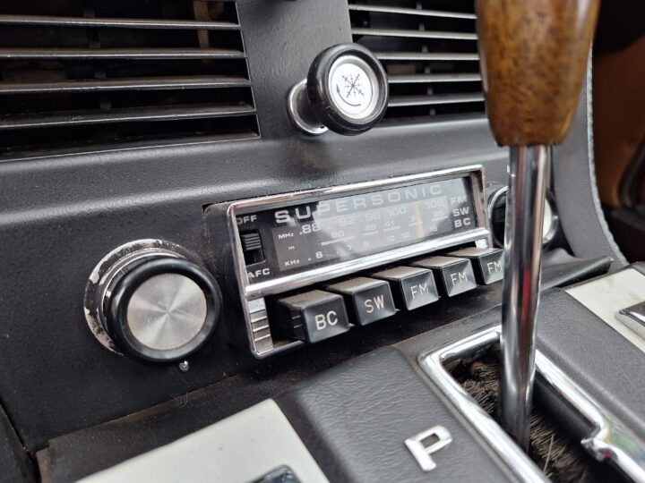 Finished in Metallic Burnt Orange, this car commands attention from every angle. Although the colour is a non-standard hue, it suits the coupé’s elegant proportions beautifully and brings a touch of modern flair to a timeless design. The light brown and tan interior creates a warm and inviting cabin, highlighted by classic wood trim and a period Supersonic radio that still operates, a charming detail from another era.