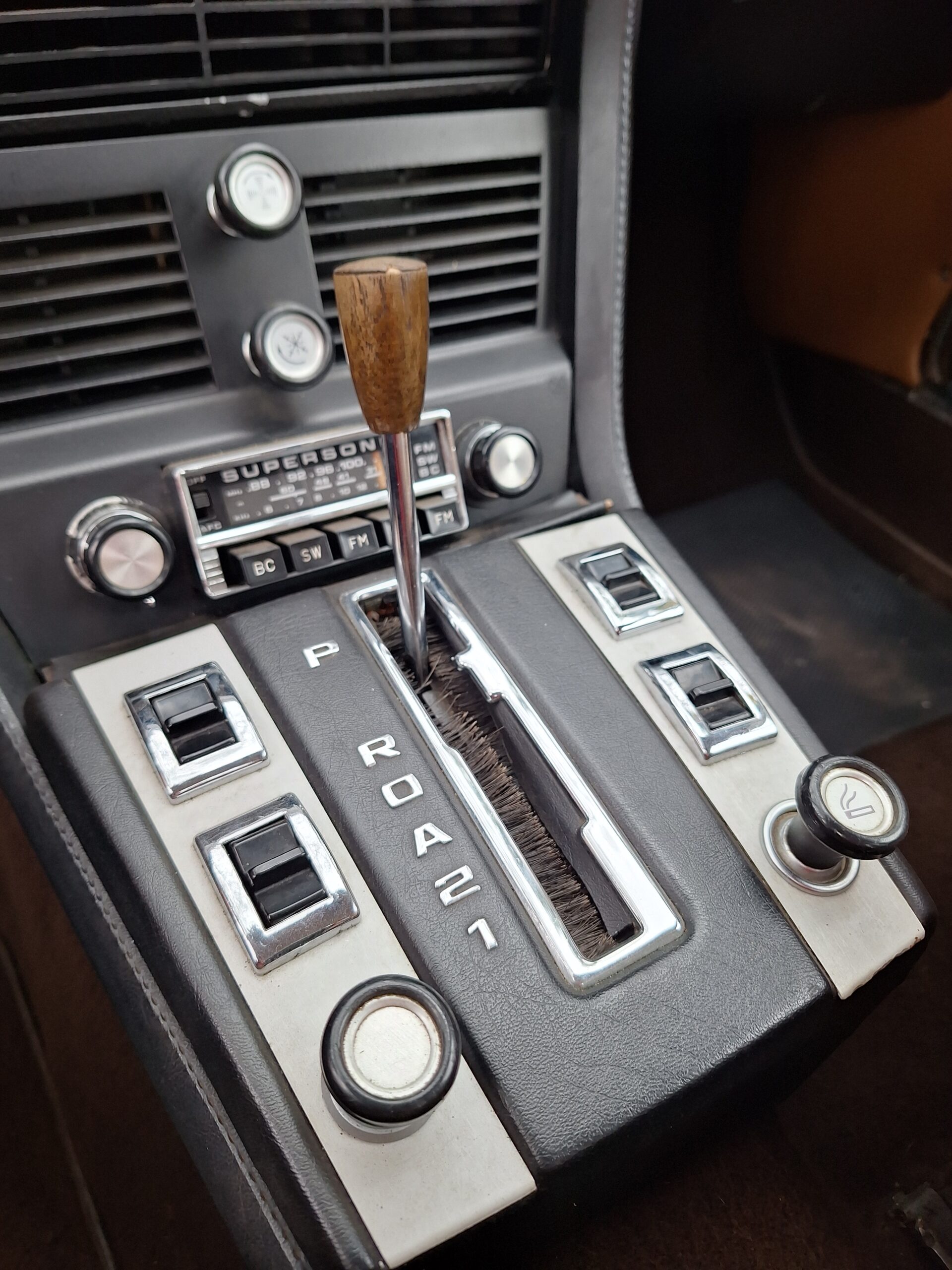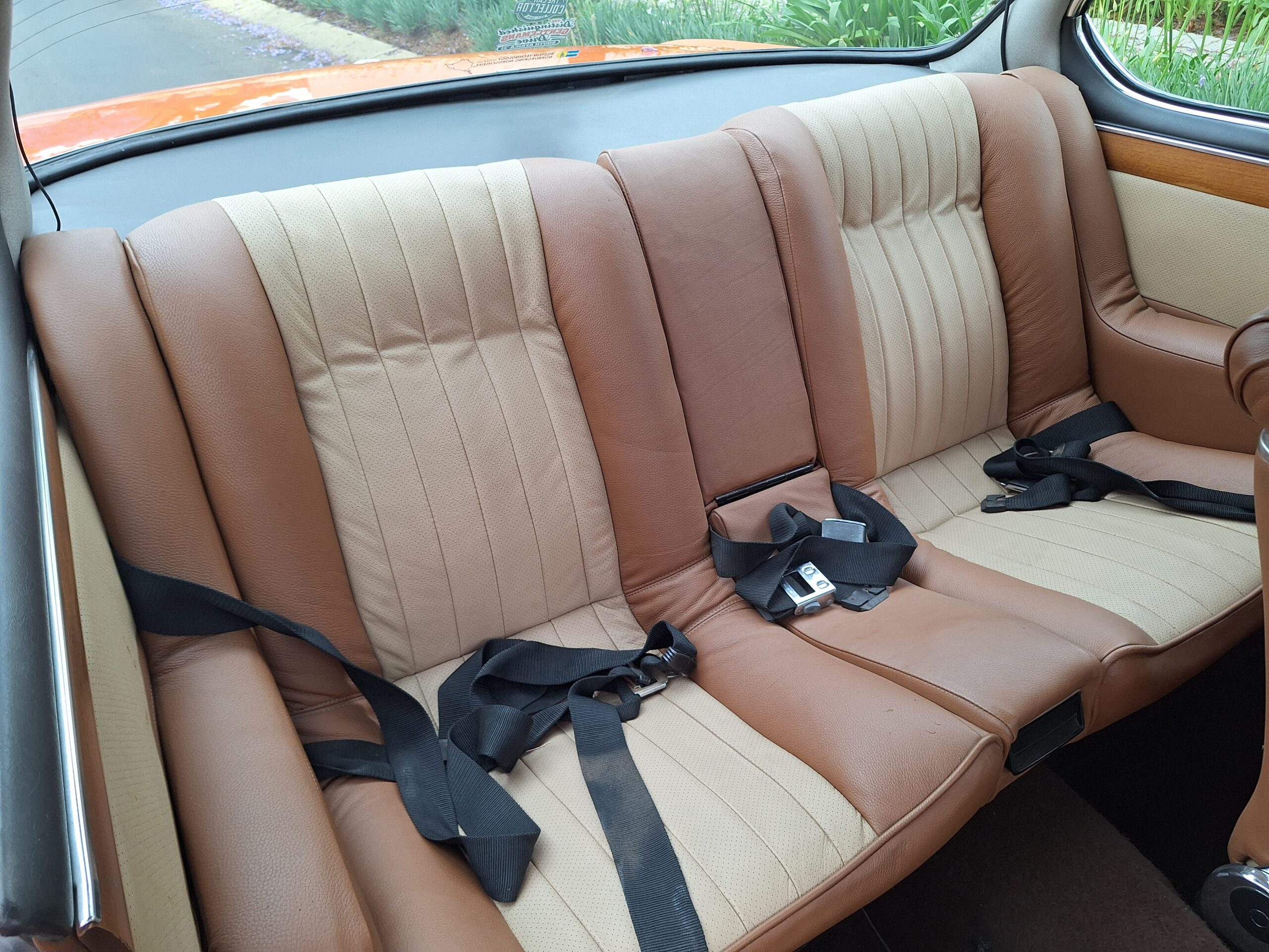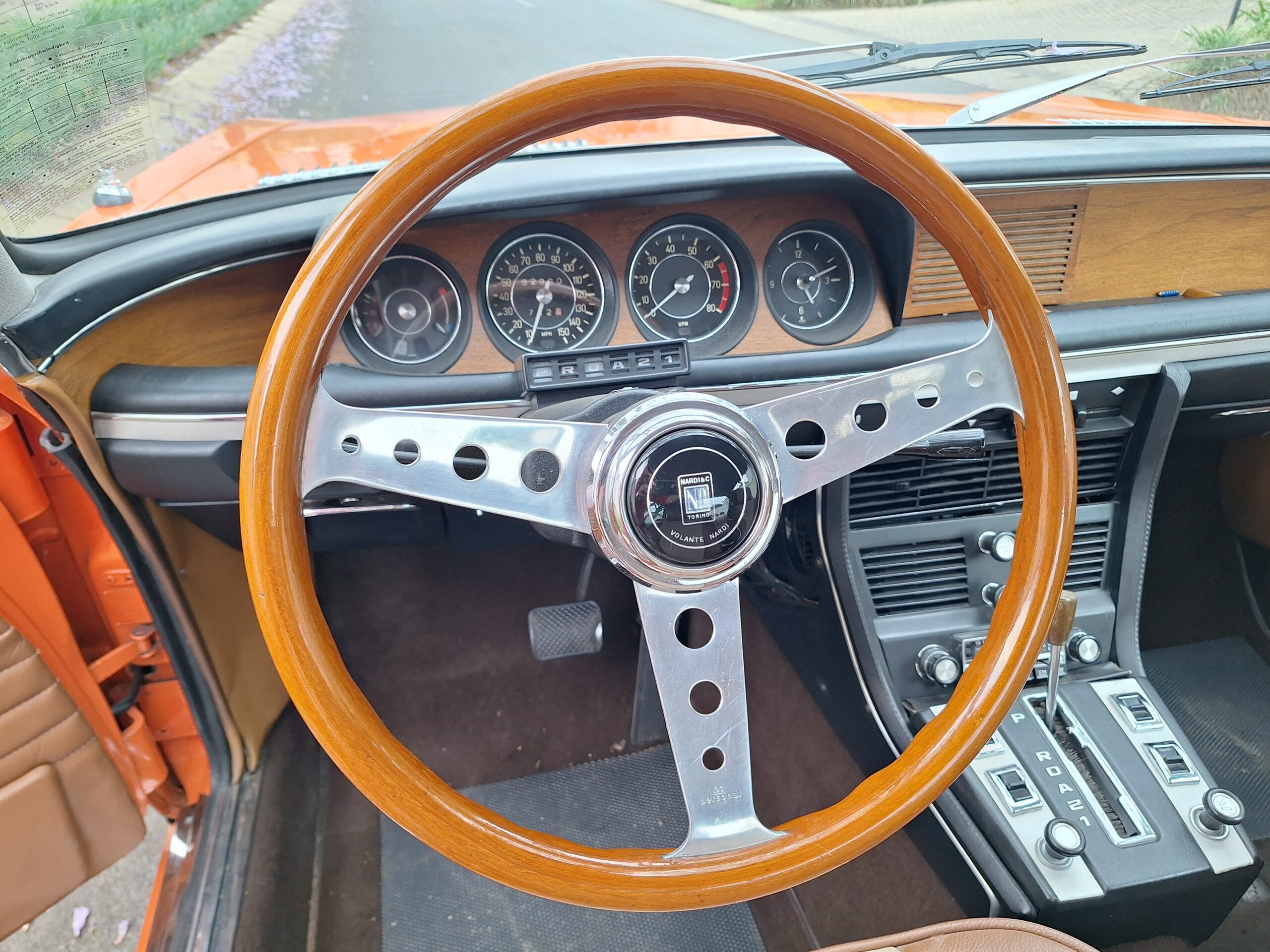 Finished in Metallic Burnt Orange, this car commands attention from every angle. Although the colour is a non-standard hue, it suits the coupé’s elegant proportions beautifully and brings a touch of modern flair to a timeless design. The light brown and tan interior creates a warm and inviting cabin, highlighted by classic wood trim and a period Supersonic radio that still operates, a charming detail from another era.