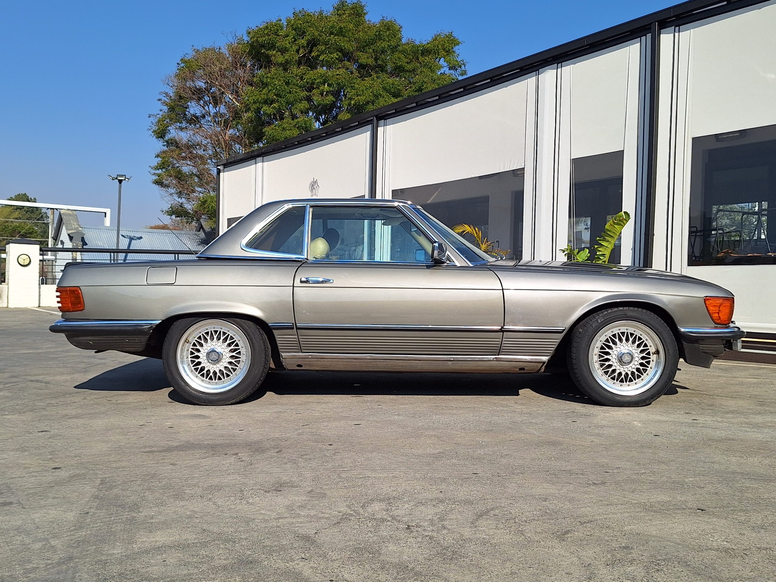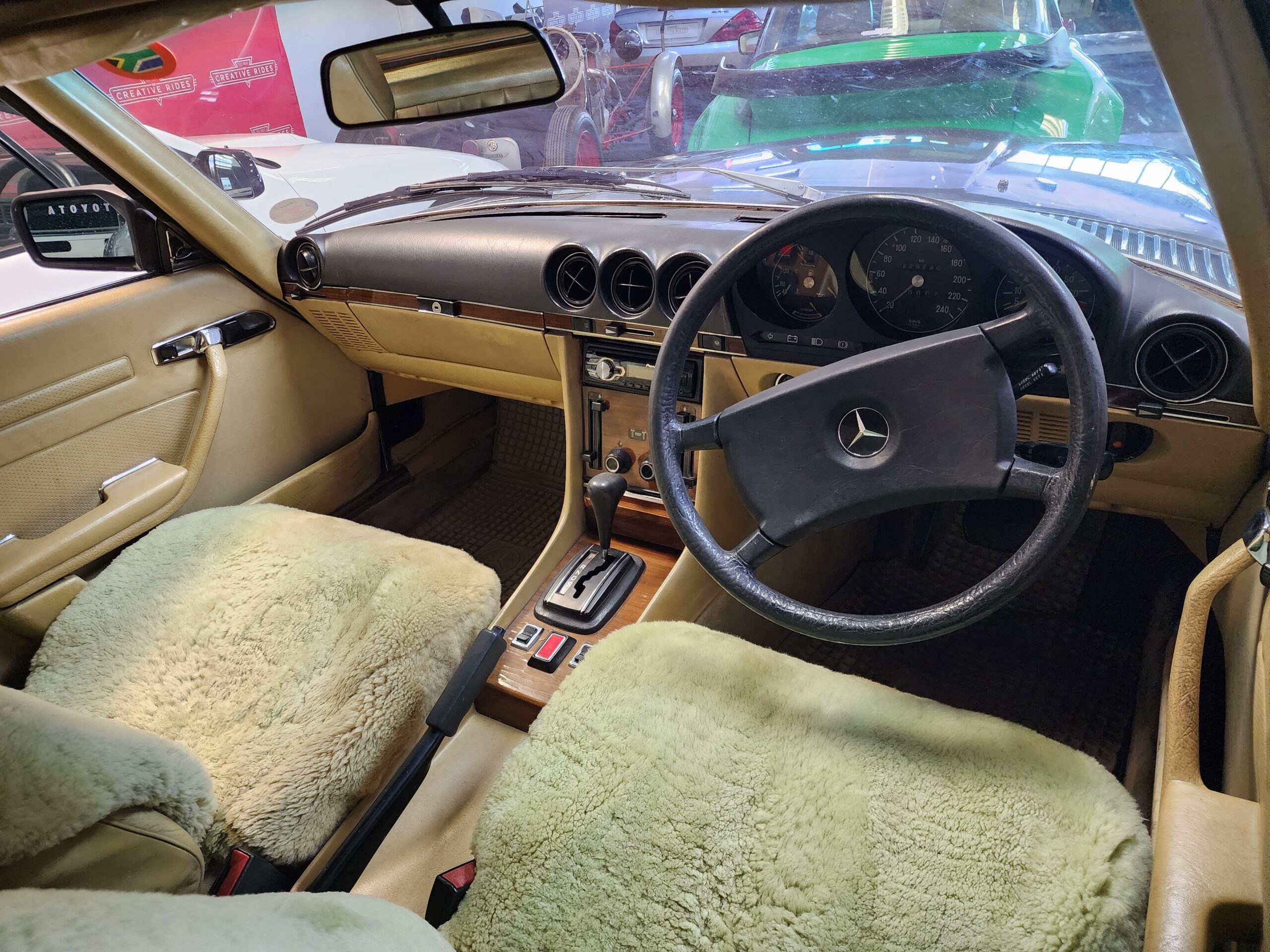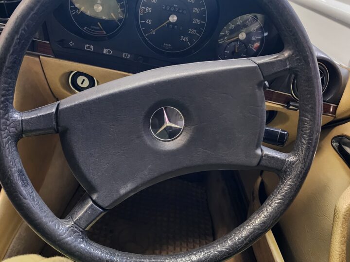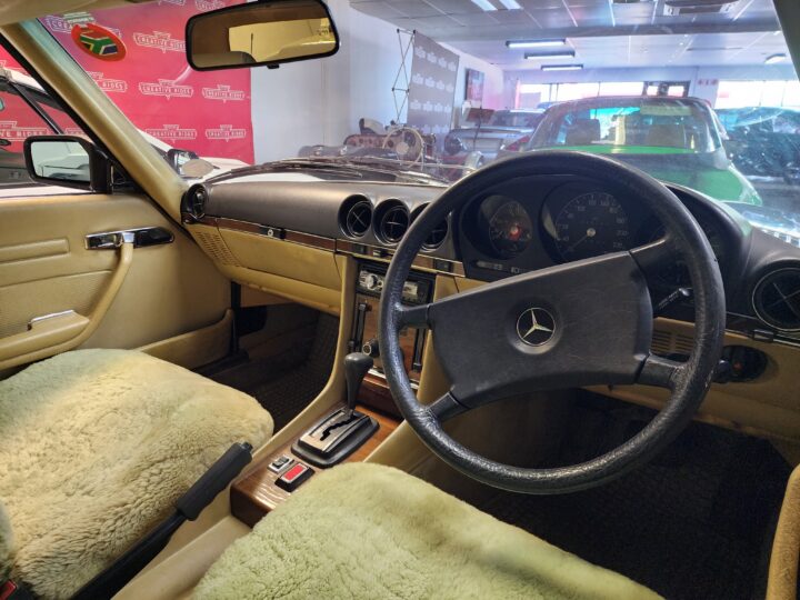 Finished with period-style BBS alloy rims, this car exudes timeless appeal. The design of the W107 has aged remarkably well, remaining instantly recognisable and continuing to turn heads more than four decades later.