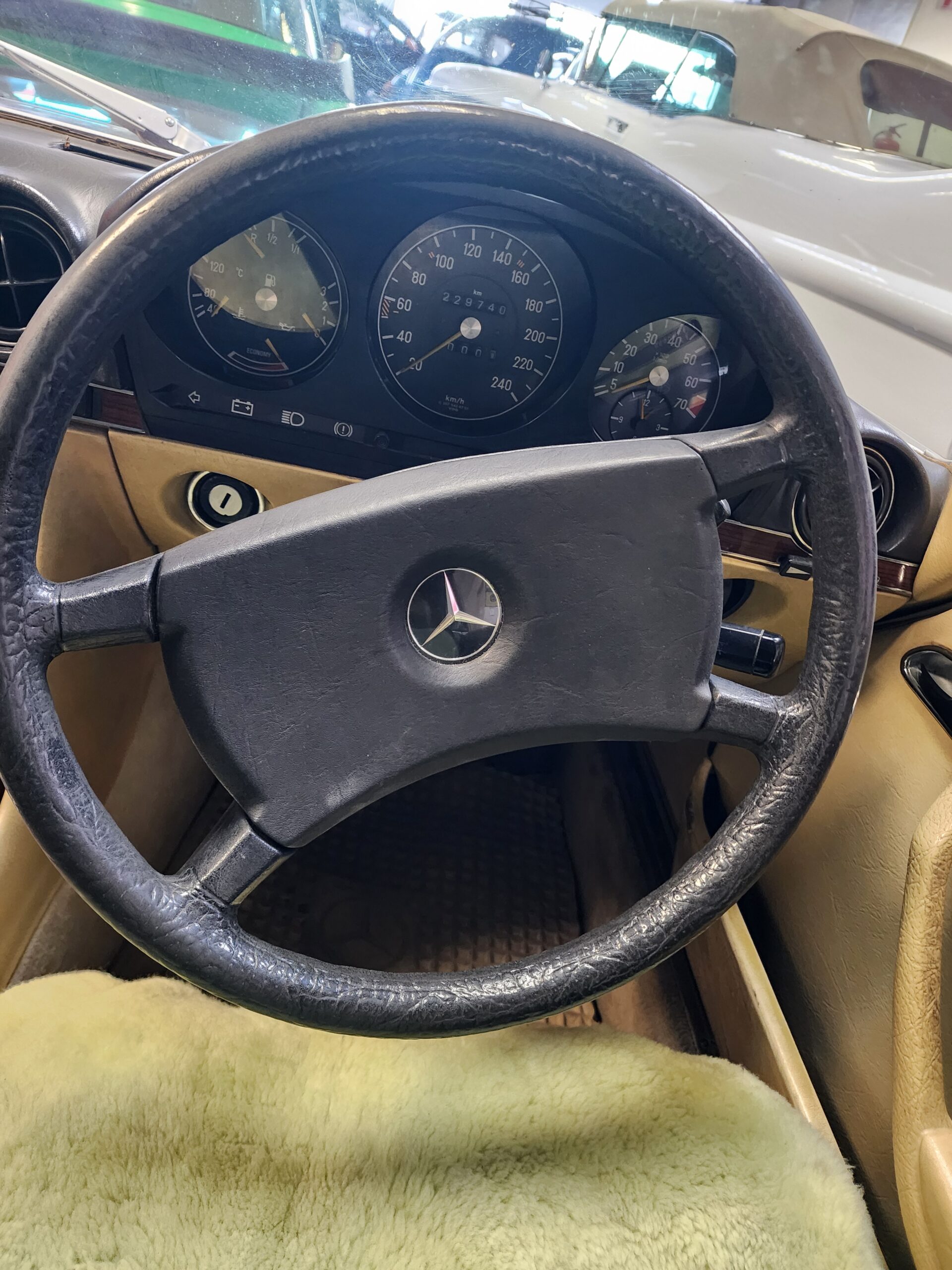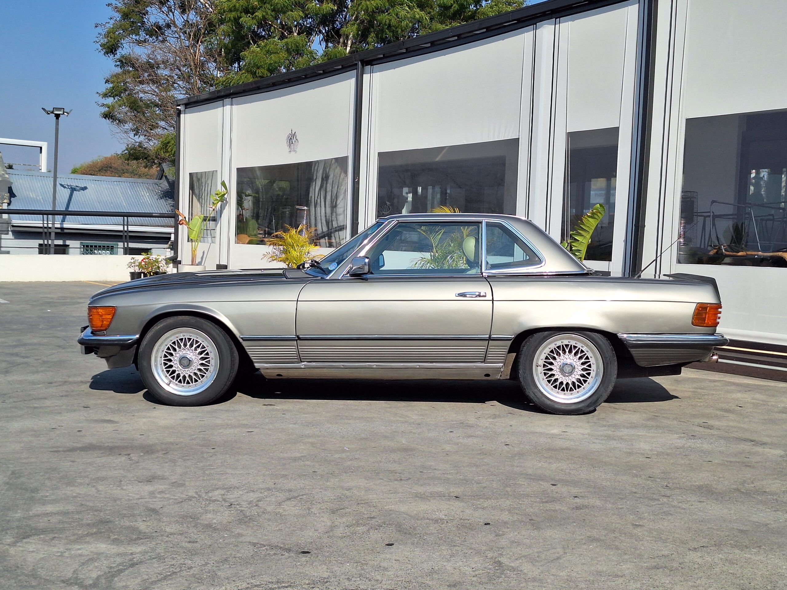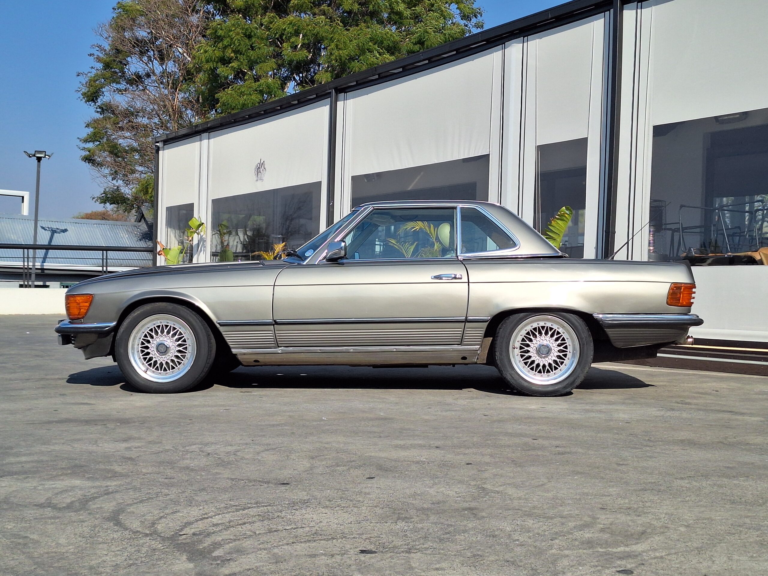 Finished with period-style BBS alloy rims, this car exudes timeless appeal. The design of the W107 has aged remarkably well, remaining instantly recognisable and continuing to turn heads more than four decades later.