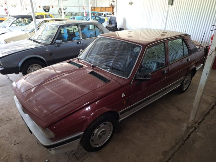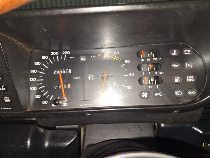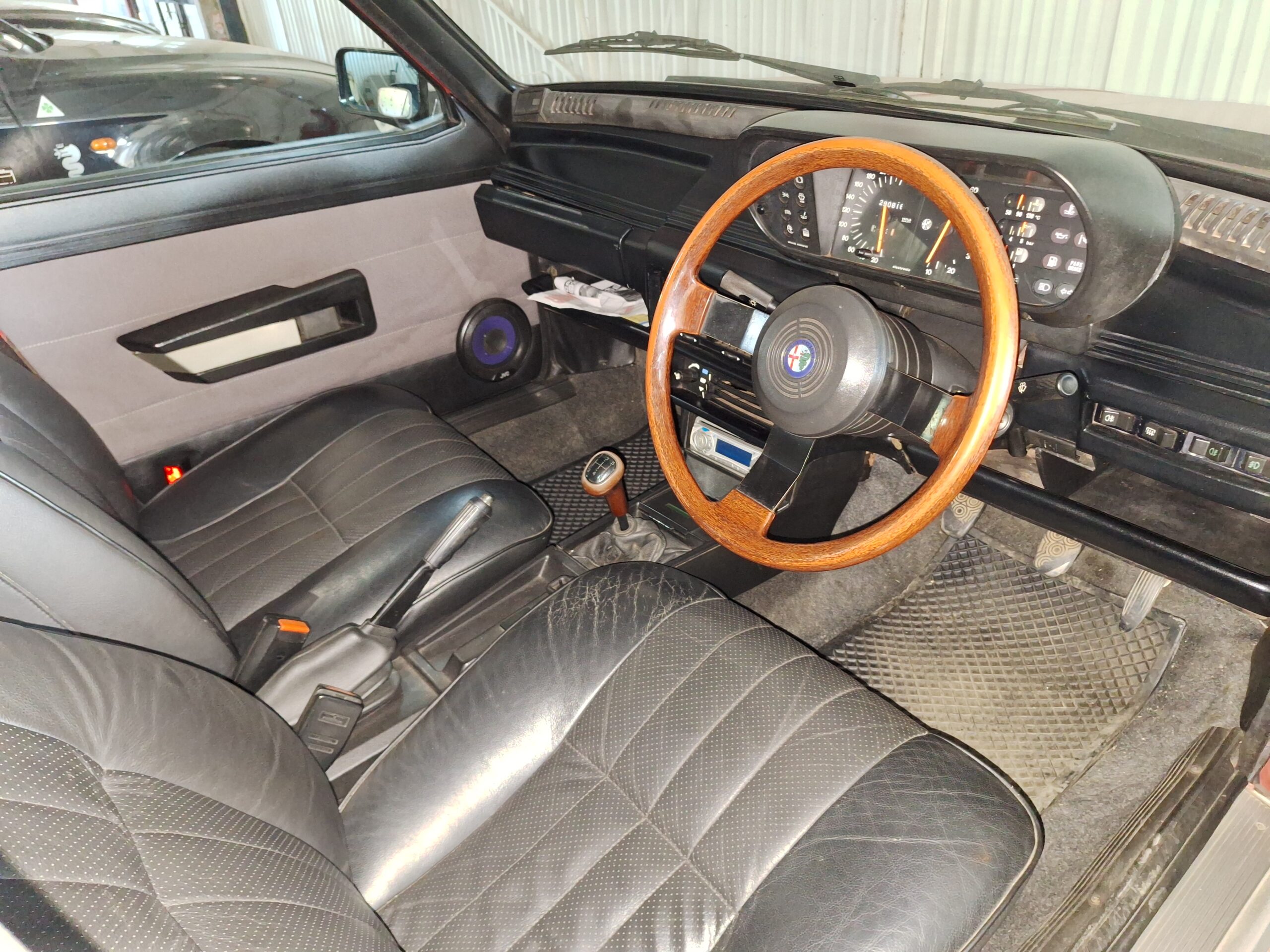 Inside, the black leatherette upholstery is classic ’80s Alfa, offering a clean and purposeful cabin that still feels authentic. This is not an over-restored showpiece, but a genuine survivor – a solid, usable Alfa Romeo that would make a great weekend toy, daily classic, or a very good base for light cosmetic freshening and detailing.