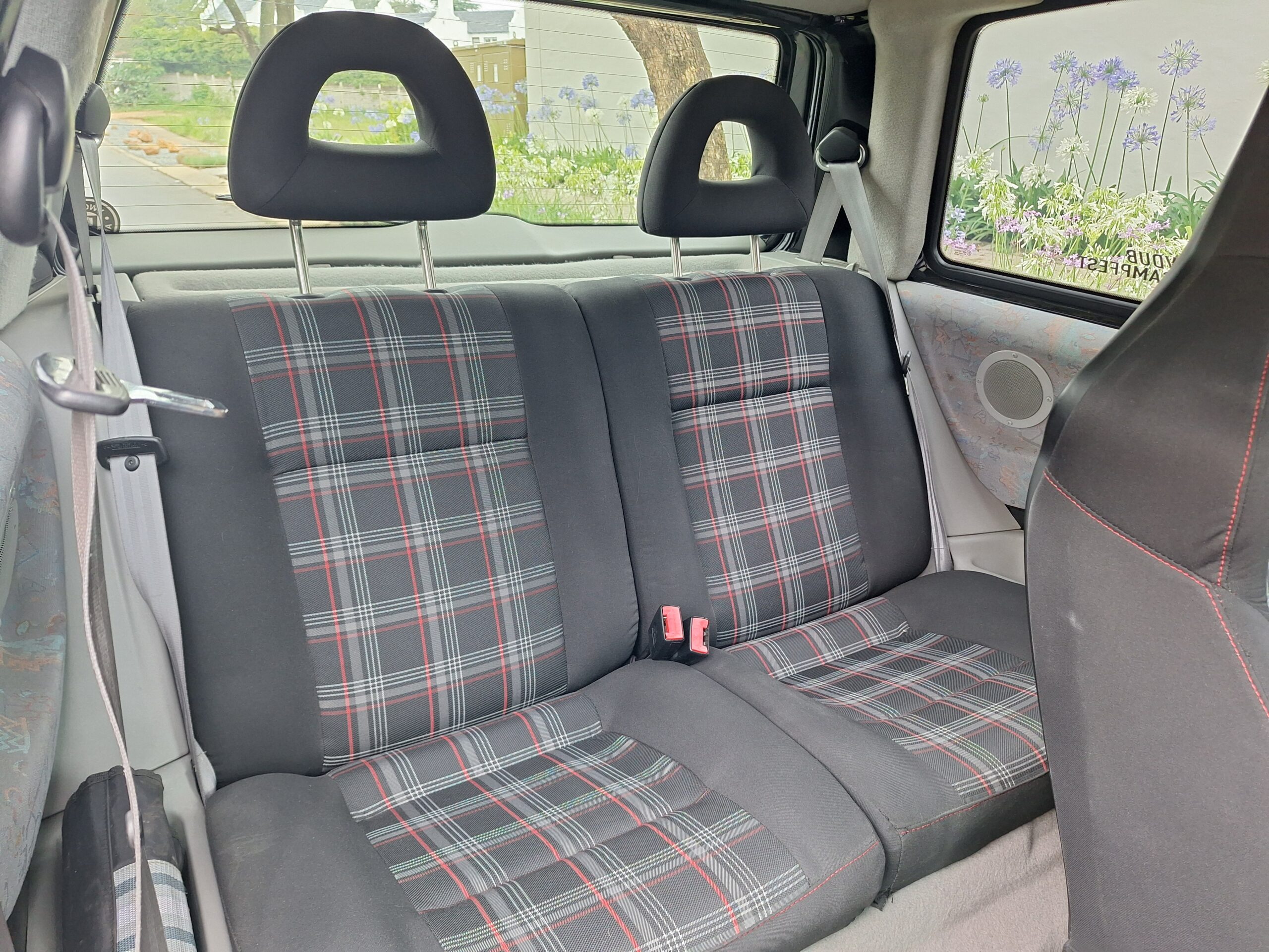 • OEM+ interior: Original GTI-style seat fabric front and rear for that factory-plus look