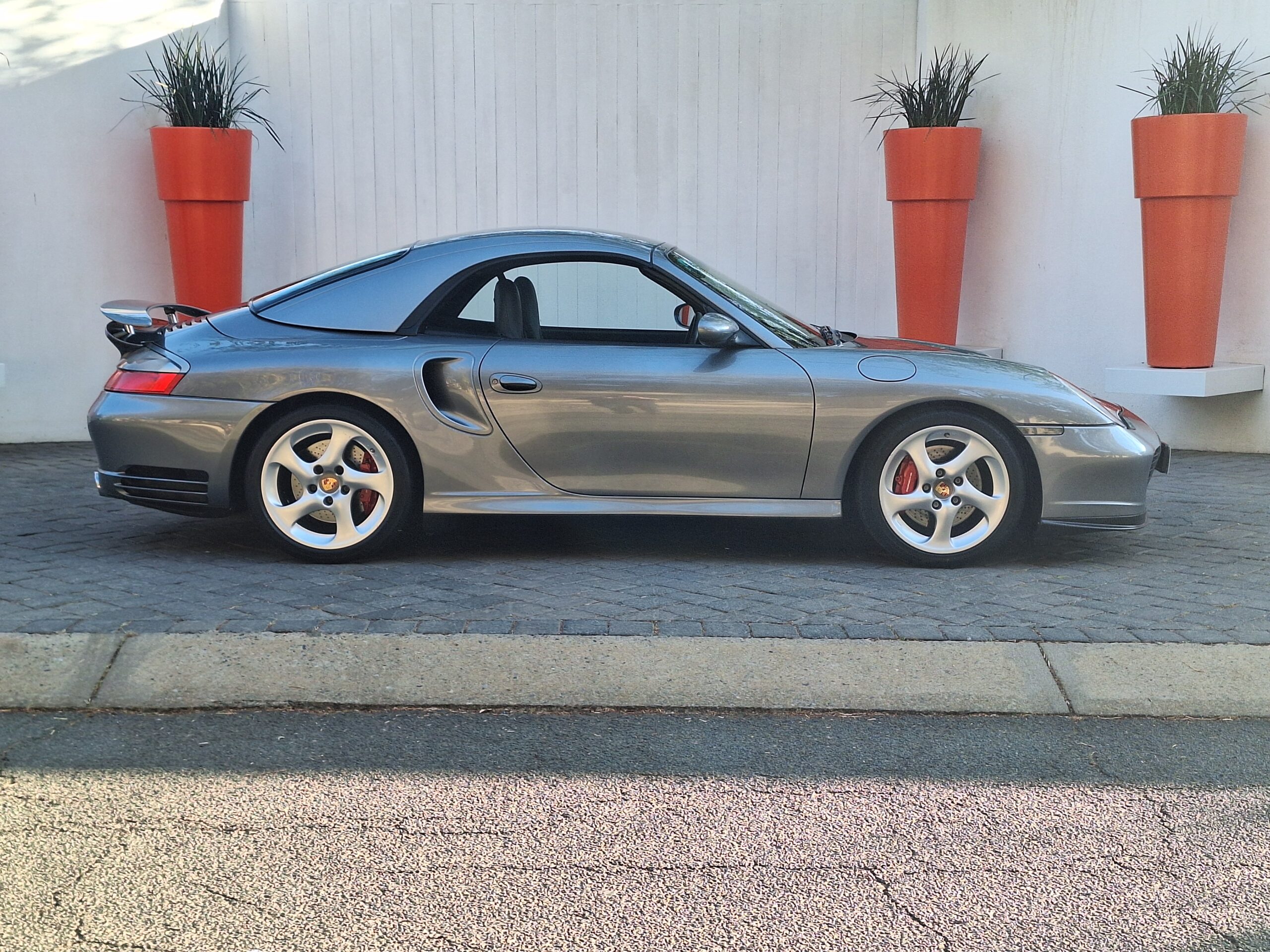 This 2004 Porsche 911 Turbo Cabriolet blends open-top driving with the legendary performance of the 996 Turbo. Powered by the 3.6L twin-turbo Mezger flat-six, it delivers 415 hp to all four wheels through the Tiptronic S transmission, sprinting from 0-100 km/h in under 5 seconds and reaching nearly 300km/h.
