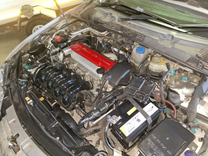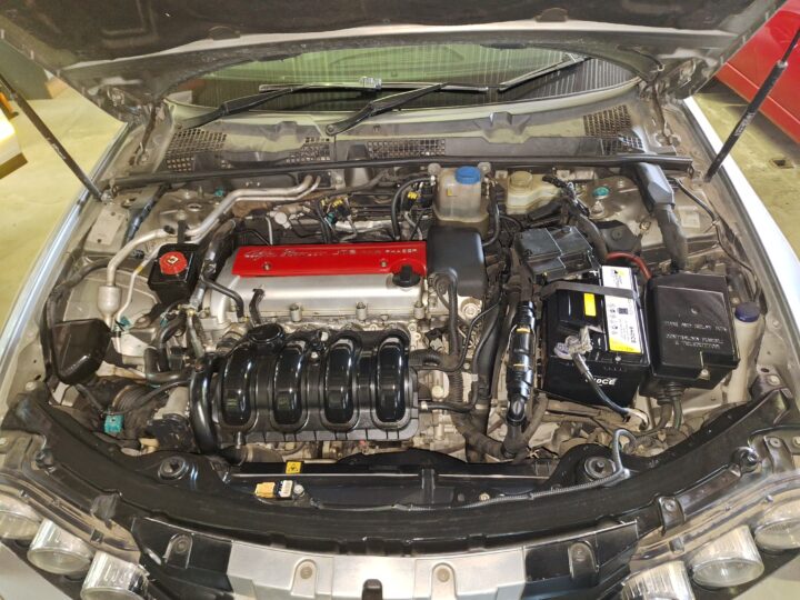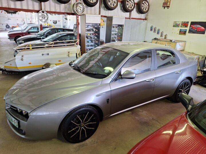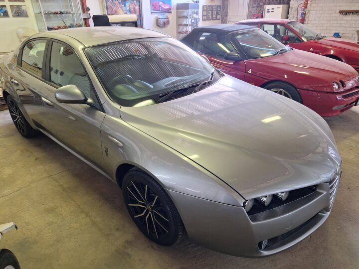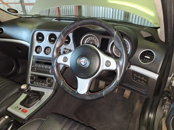 The 159 is one of Alfa Romeo’s best-looking modern saloons, and this 2.2 JTS example still has plenty of presence. Finished in silver over black leather, it has a clean, honest look inside and out, with the triple-dial dashboard and deeply bolstered front seats giving the cabin a proper Alfa feel.