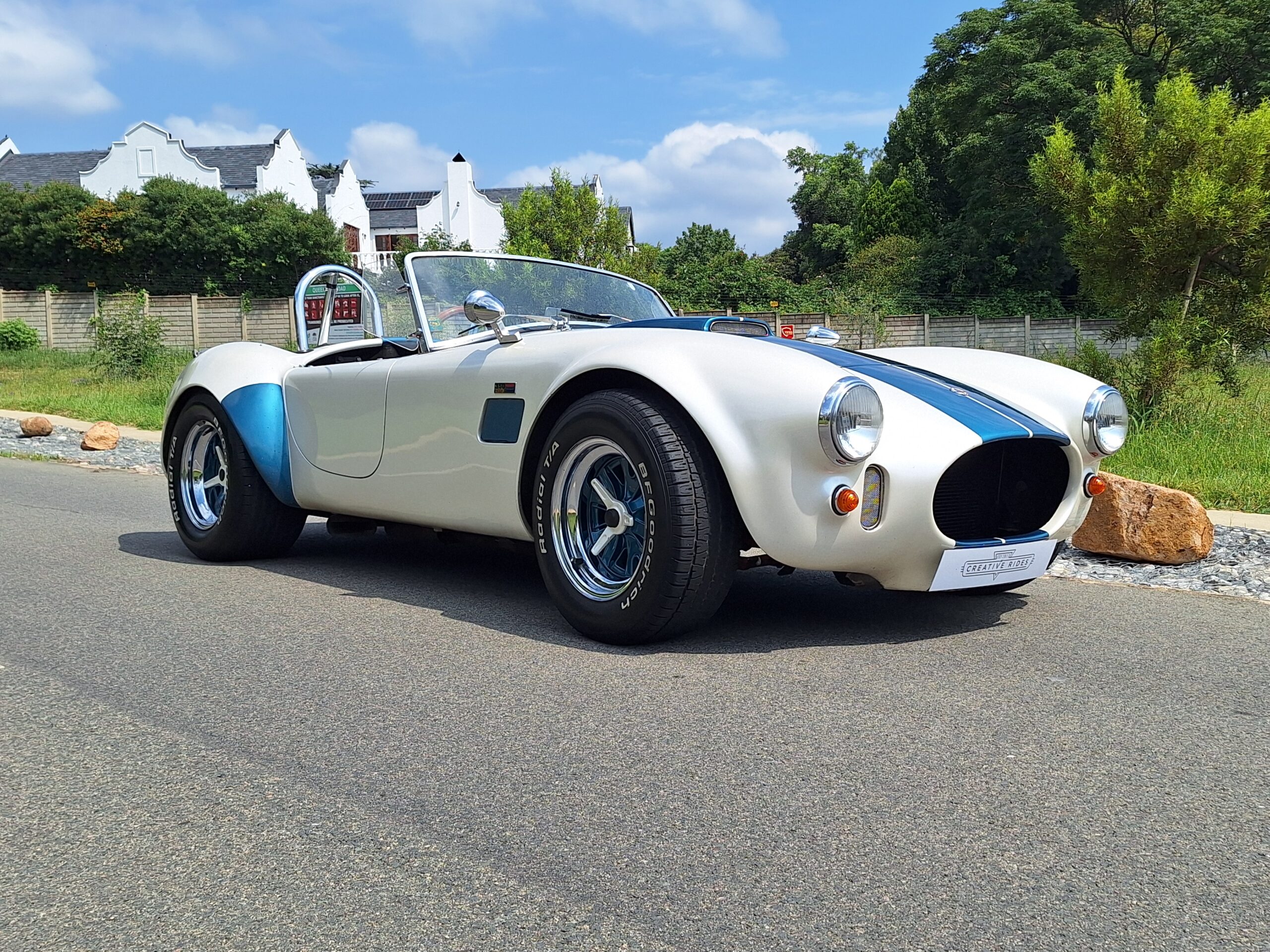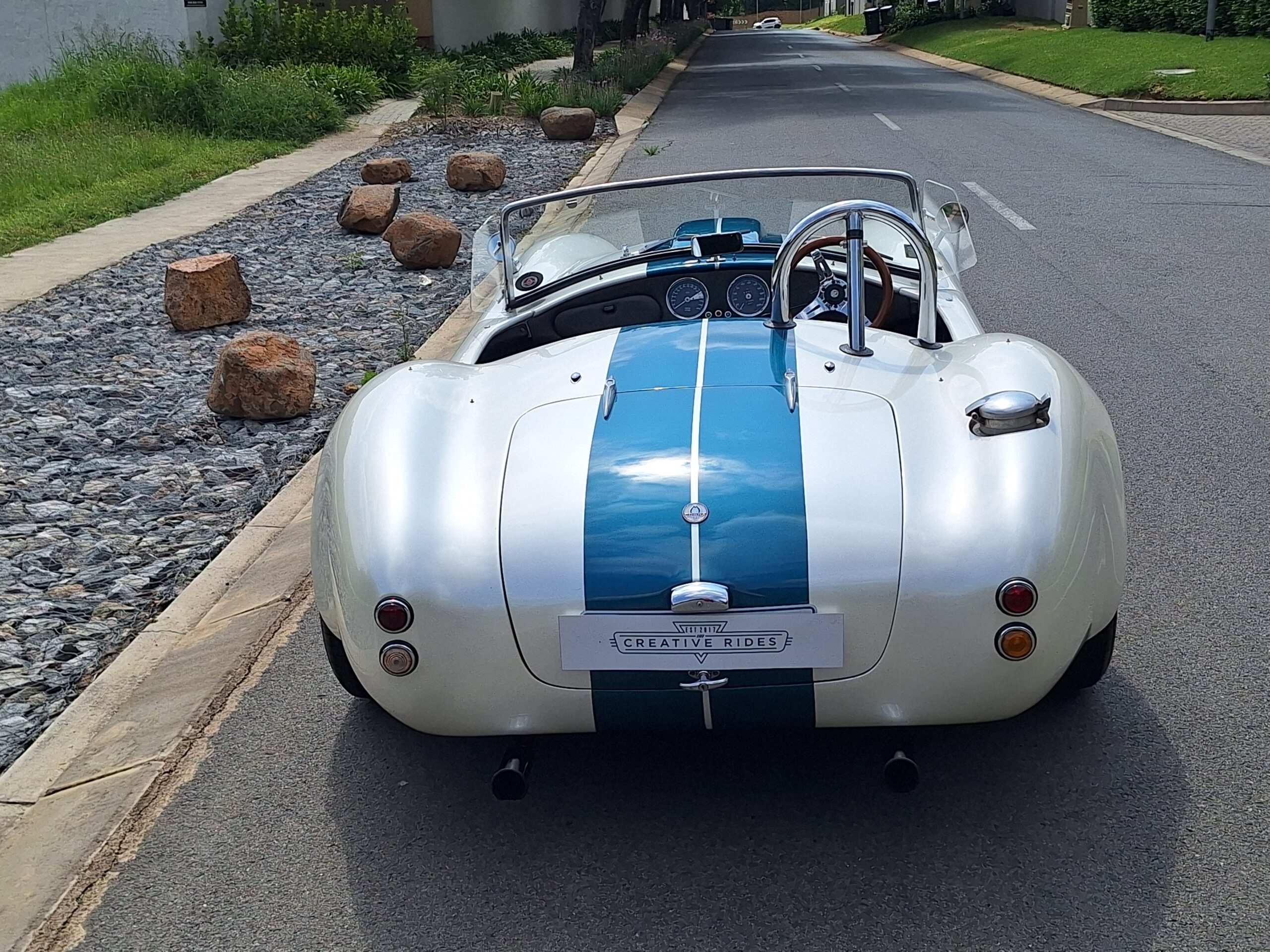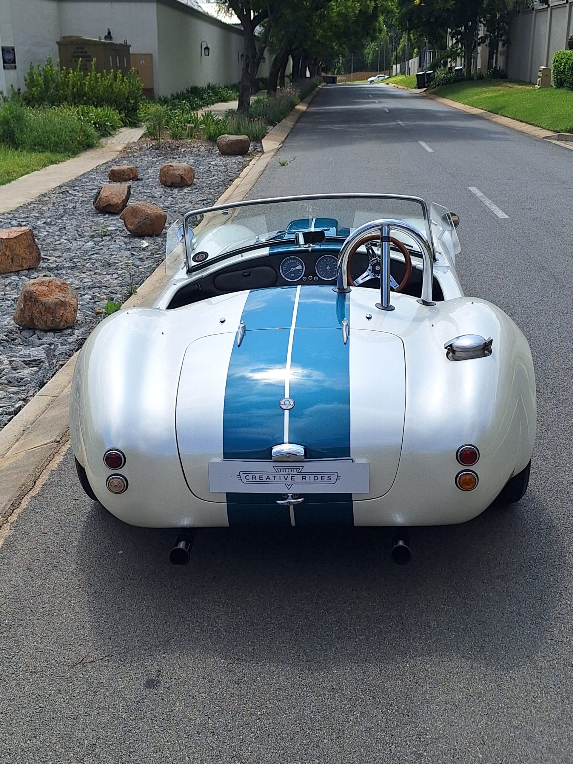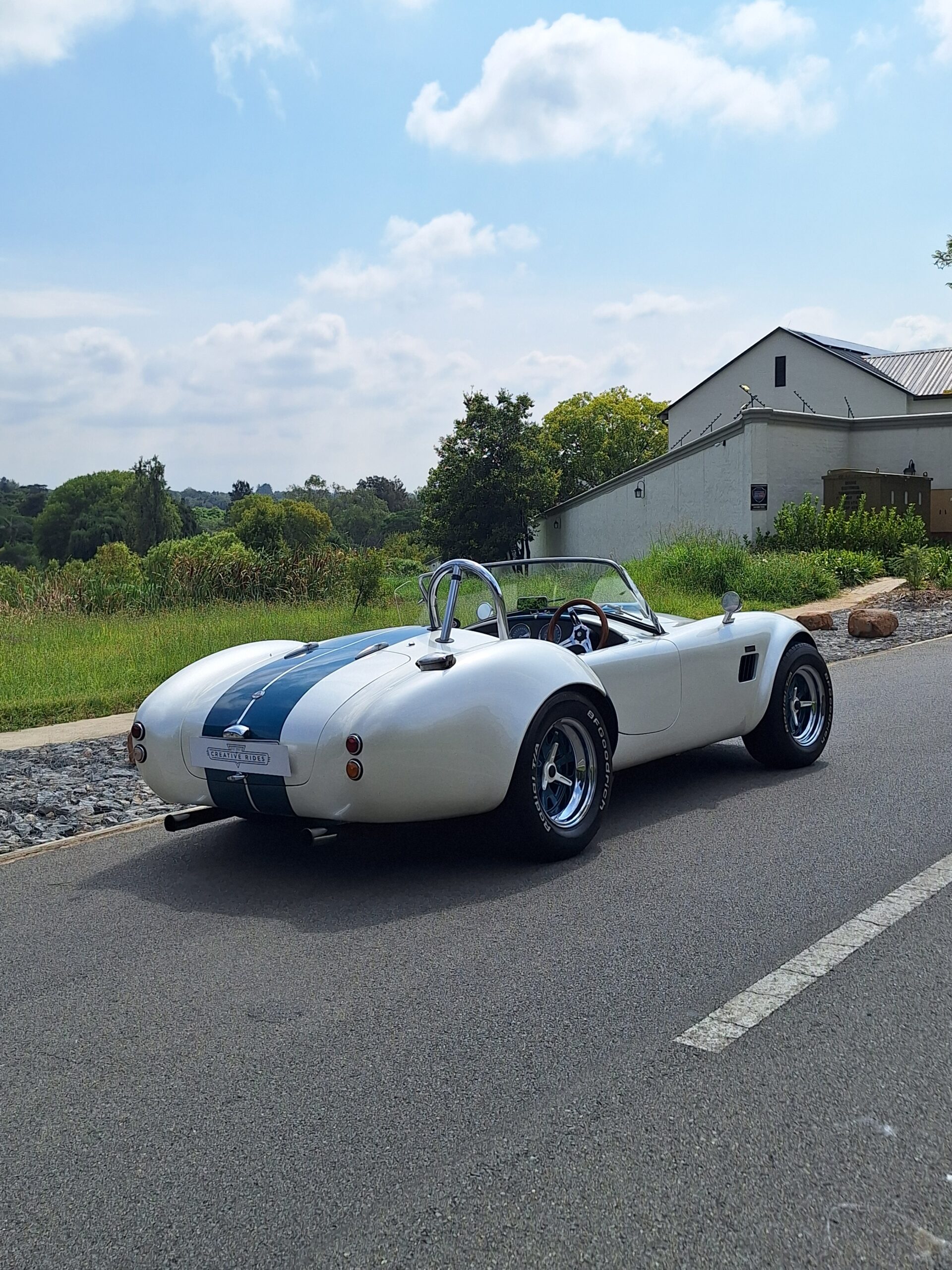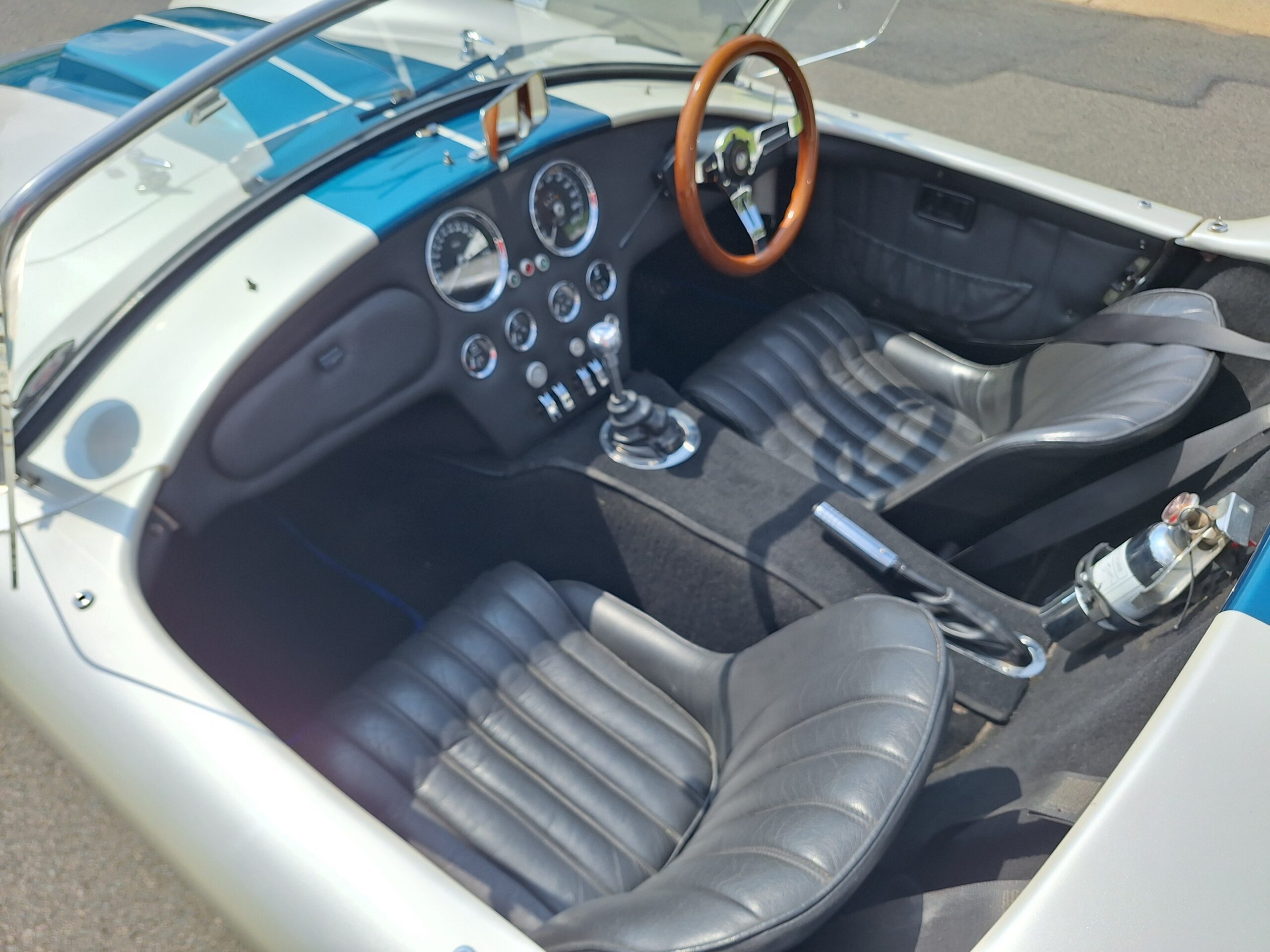 Cobra Replica (KCC 219) – Chev 350 V8, Jaguar Suspension, Pearl White with Blue Stripes