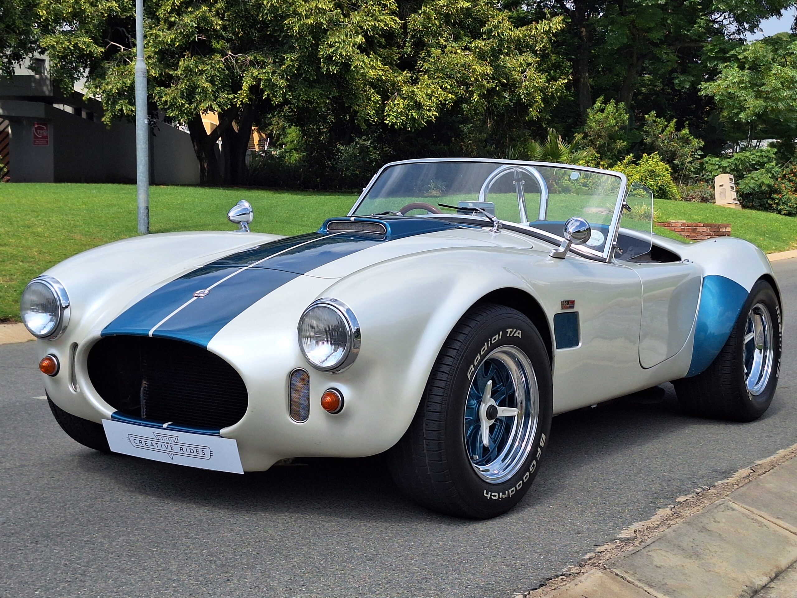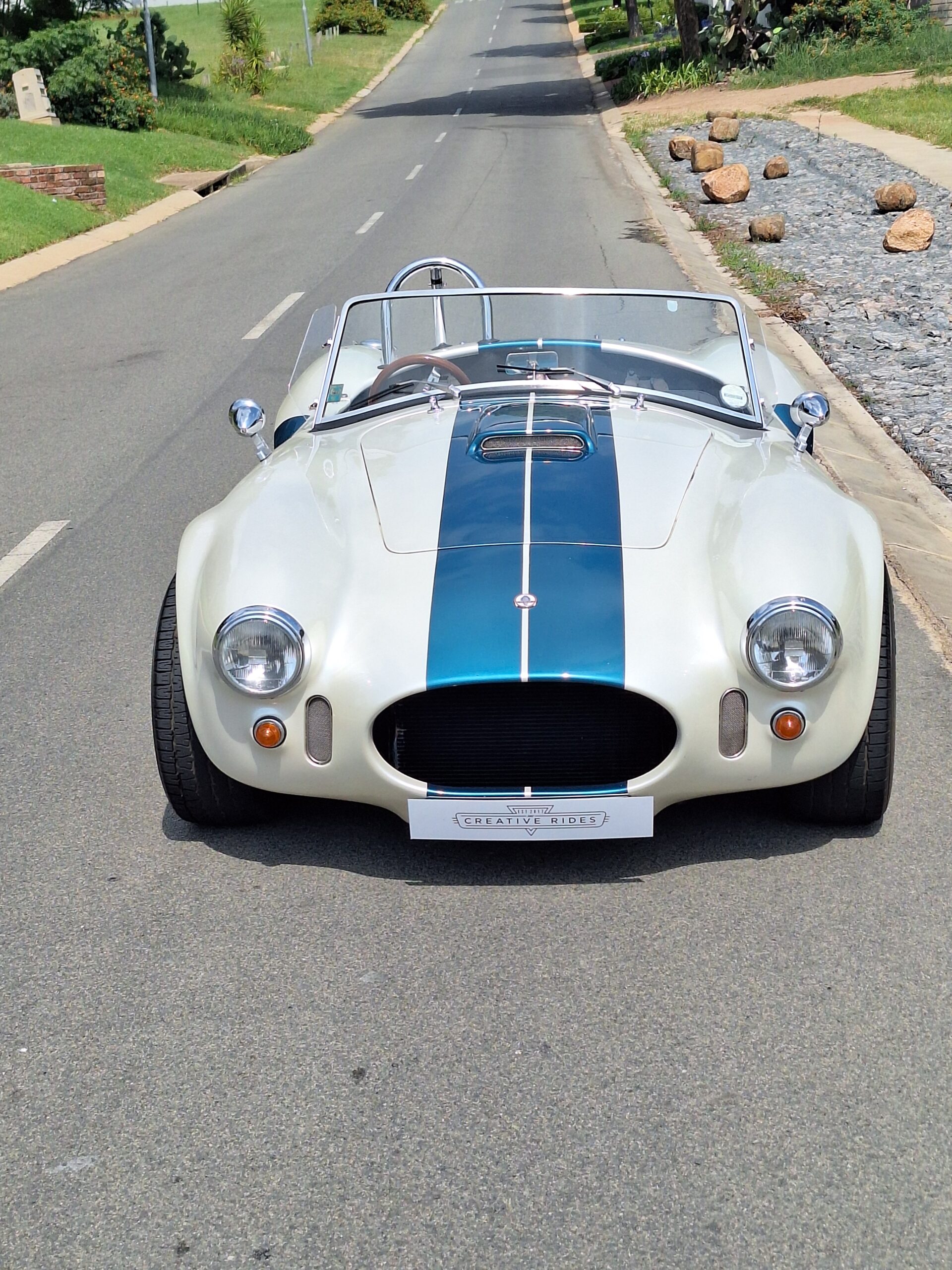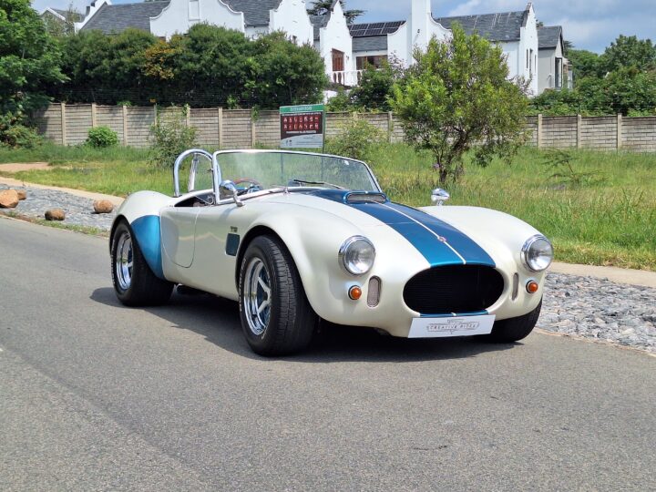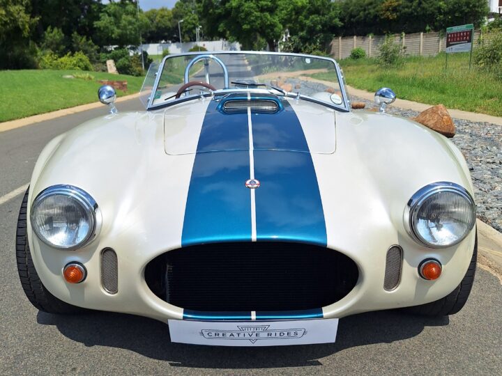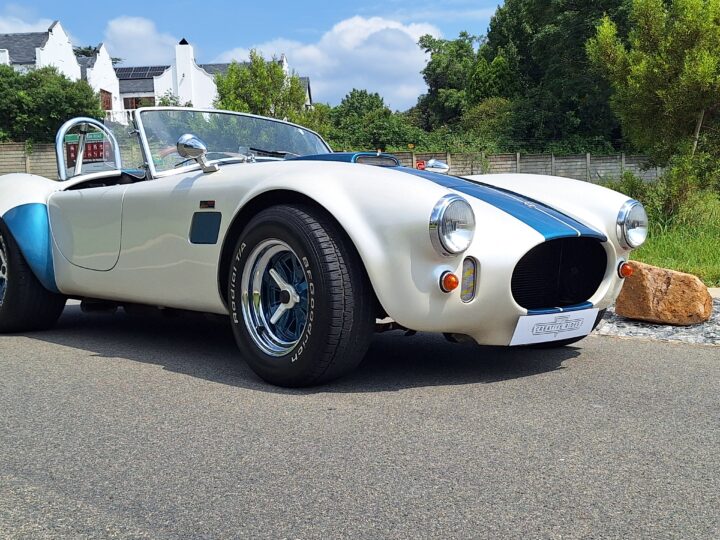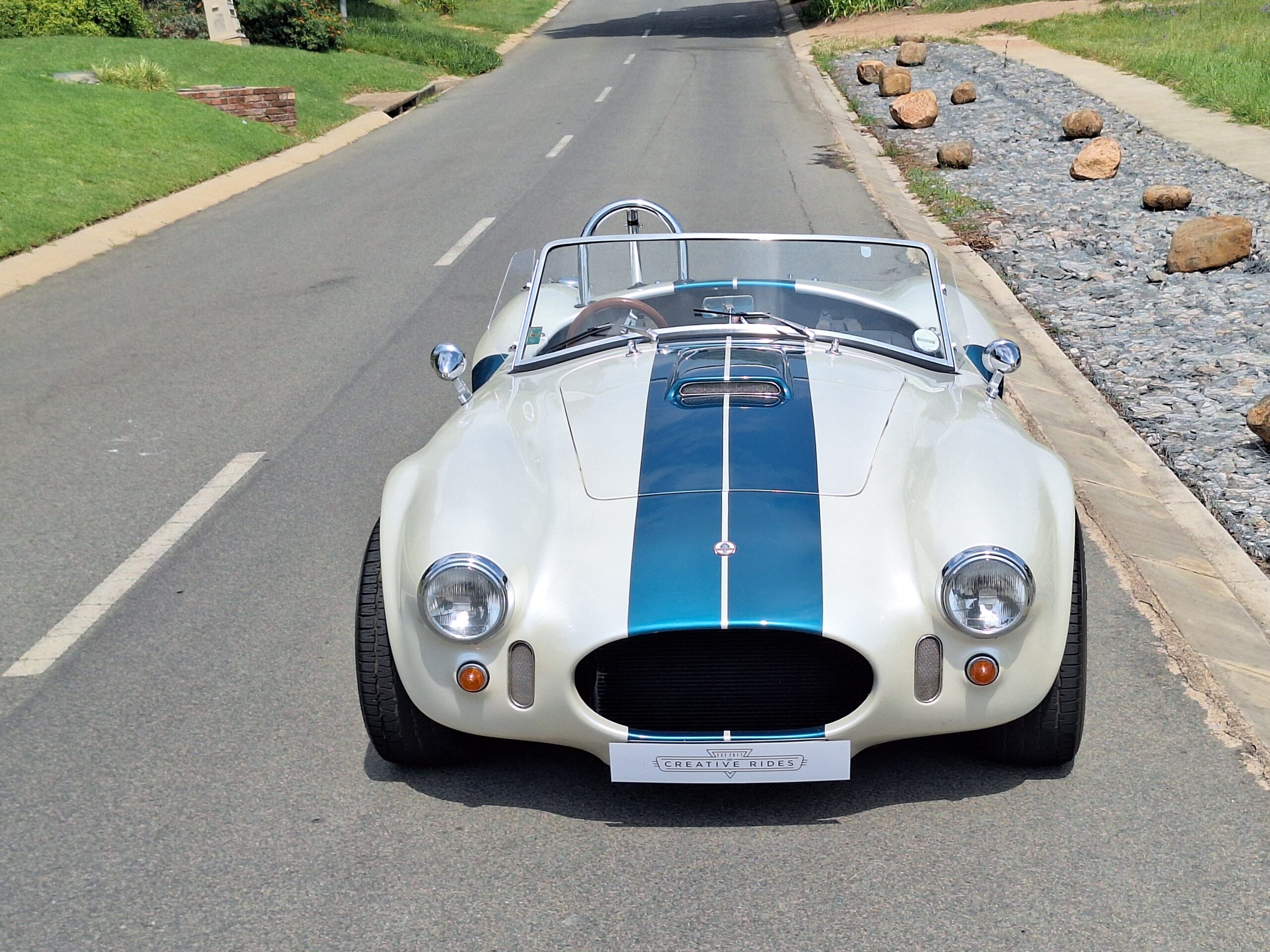 Cobra Replica (KCC 219) – Chev 350 V8, Jaguar Suspension, Pearl White with Blue Stripes