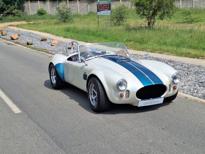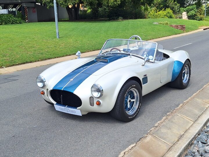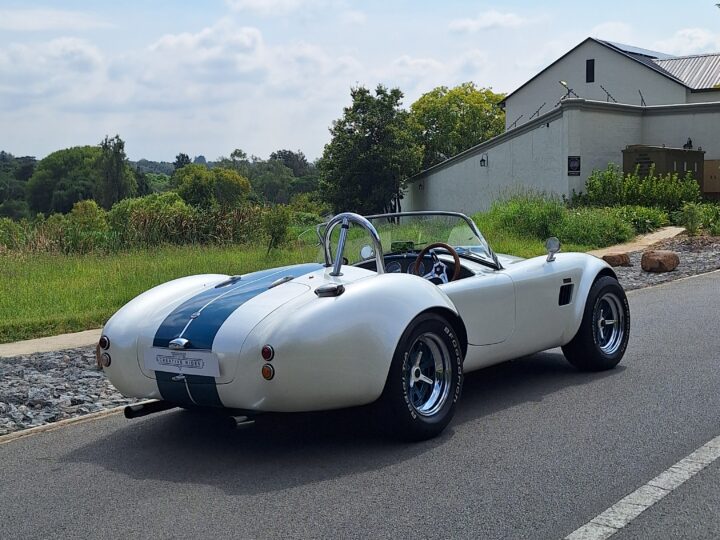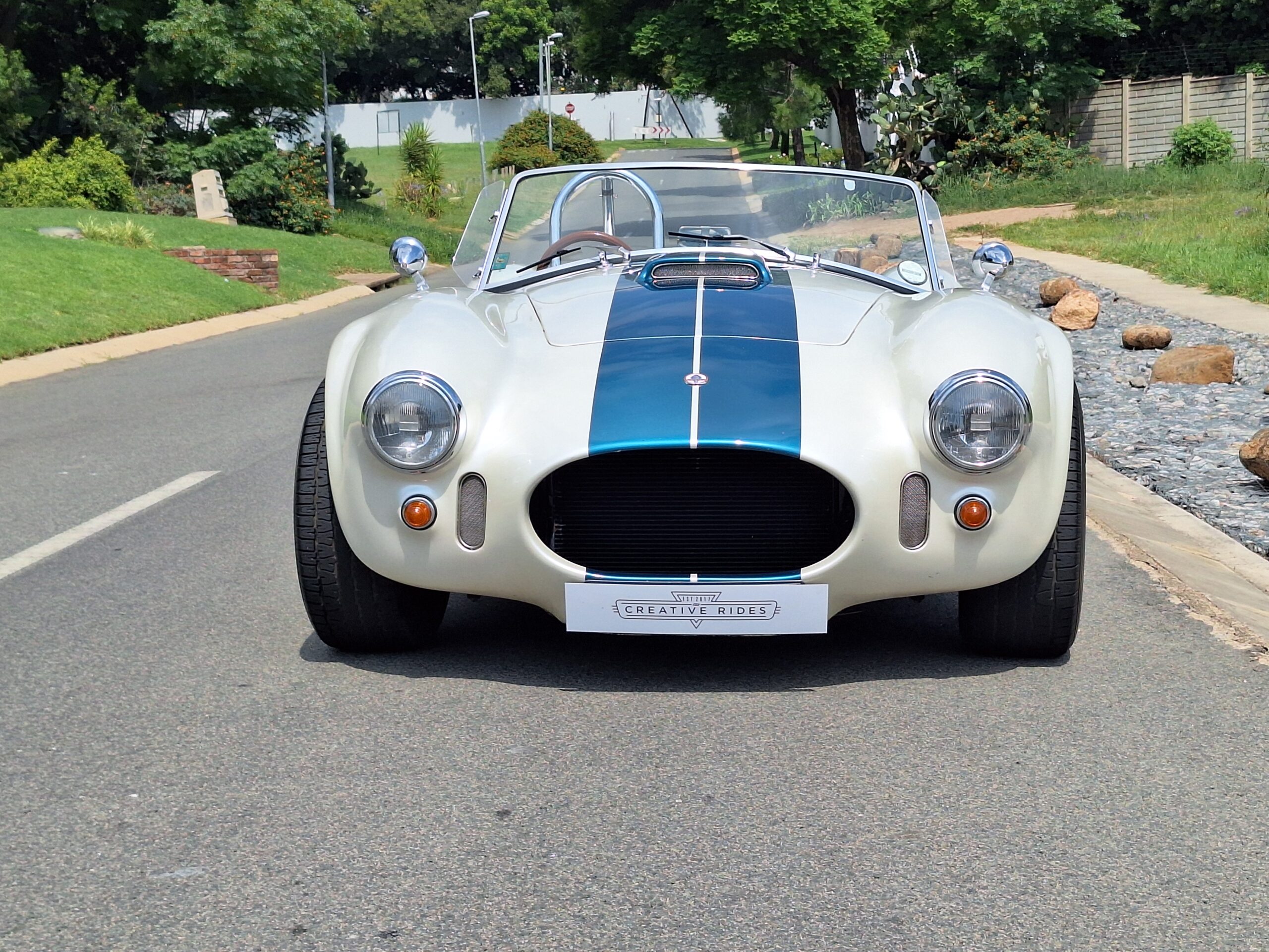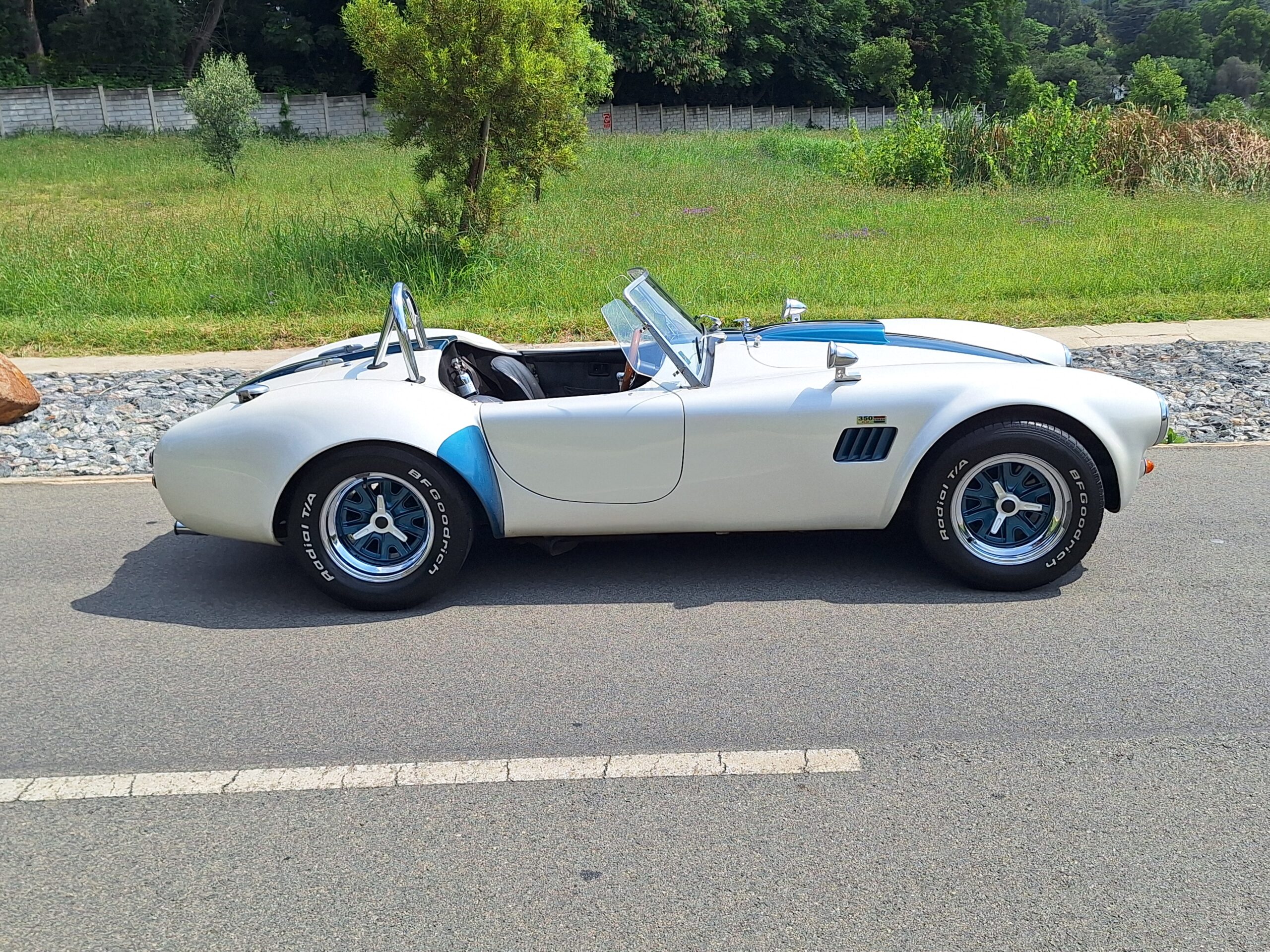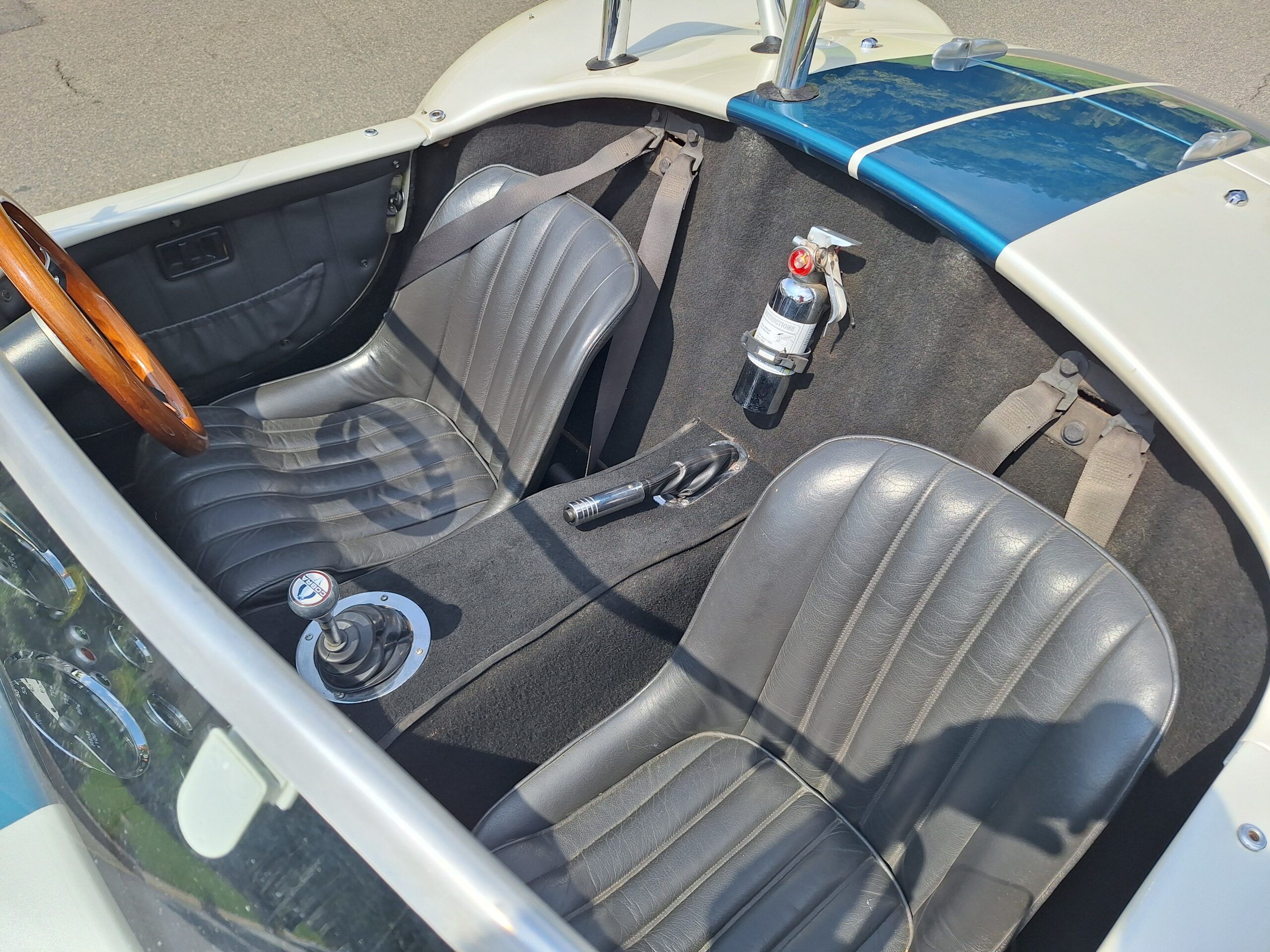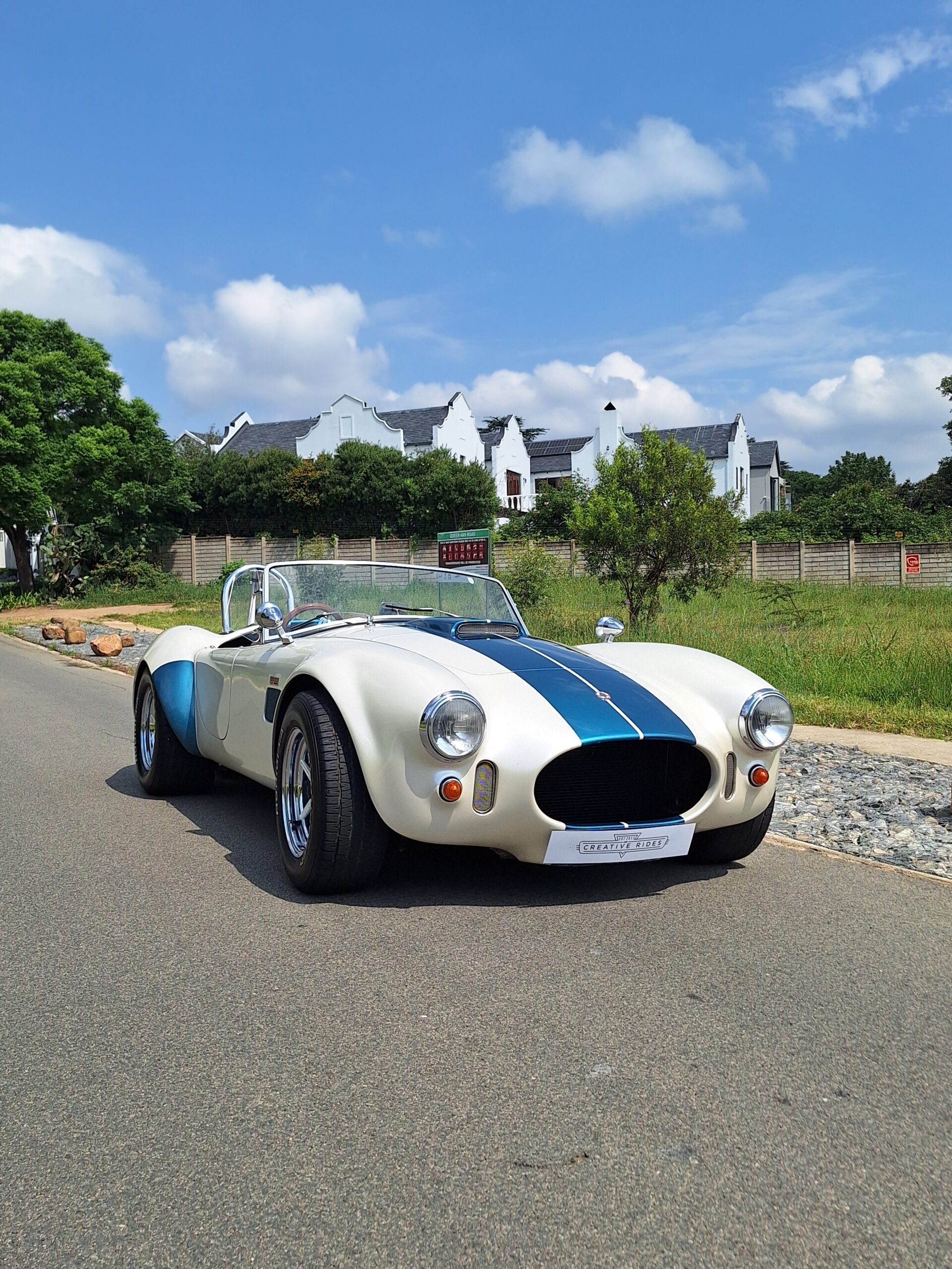 Cobra Replica (KCC 219) – Chev 350 V8, Jaguar Suspension, Pearl White with Blue Stripes