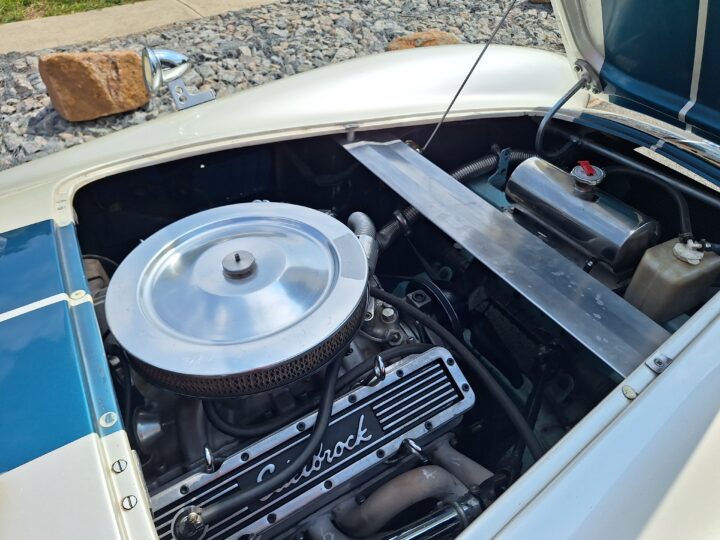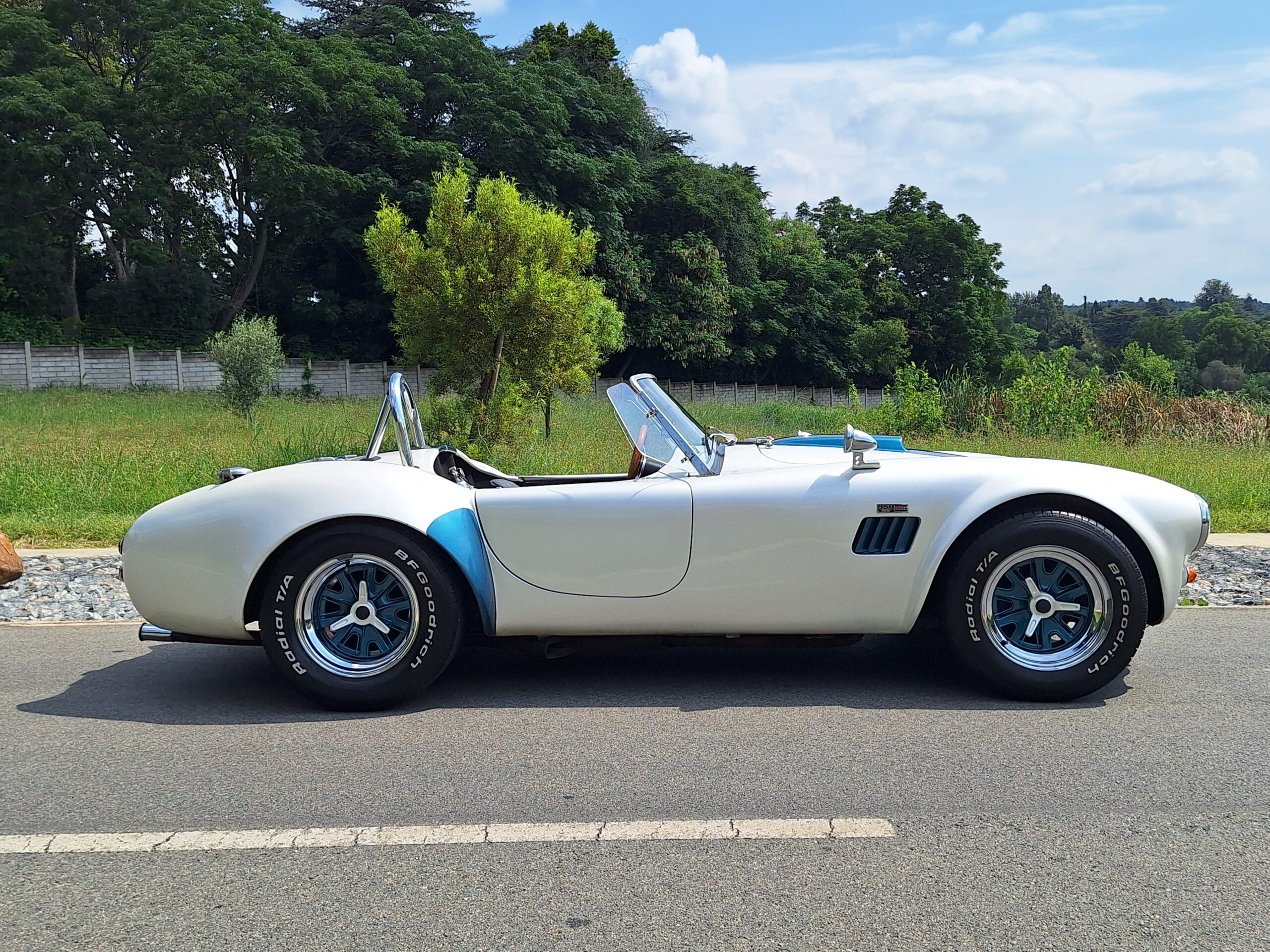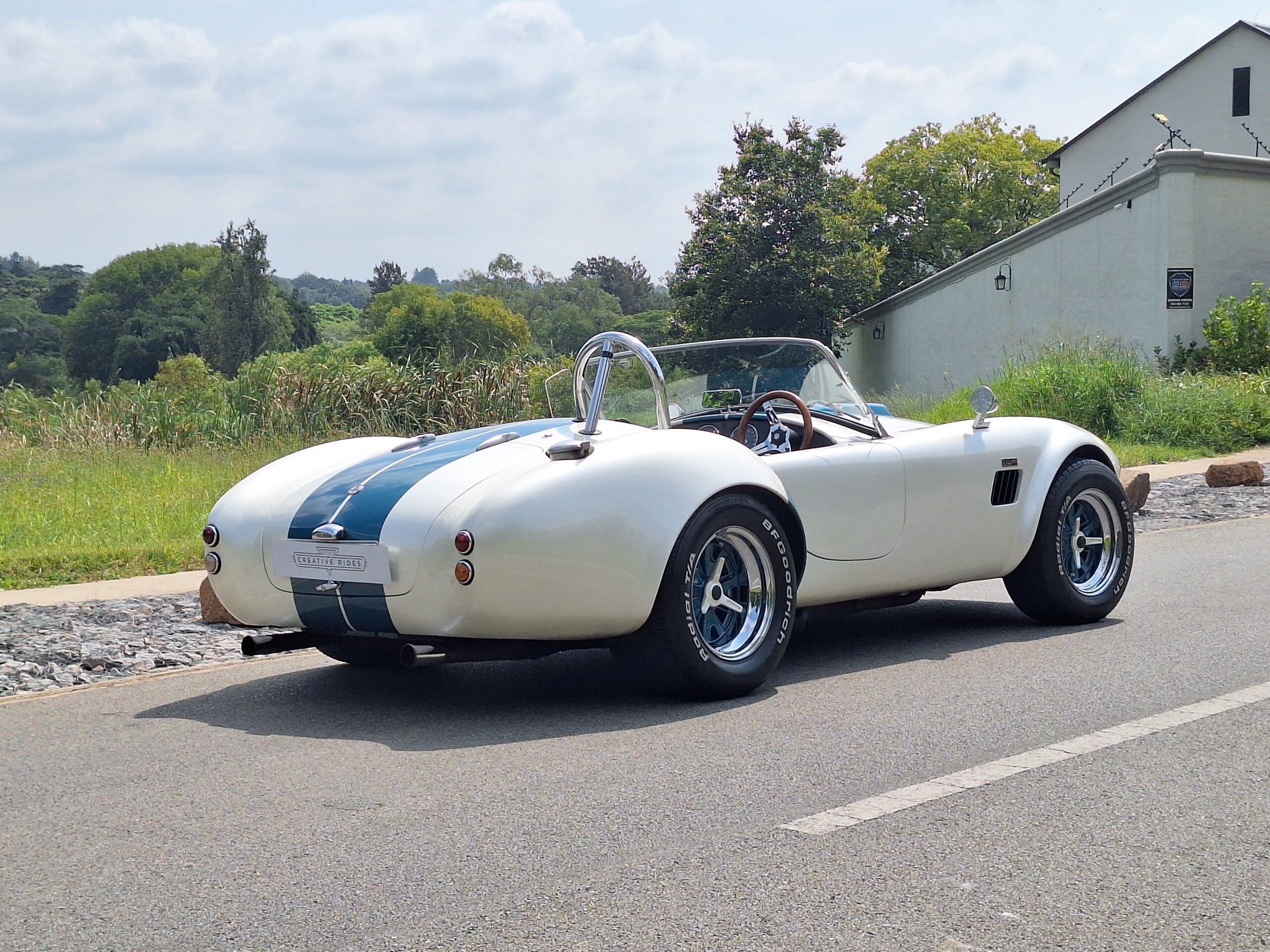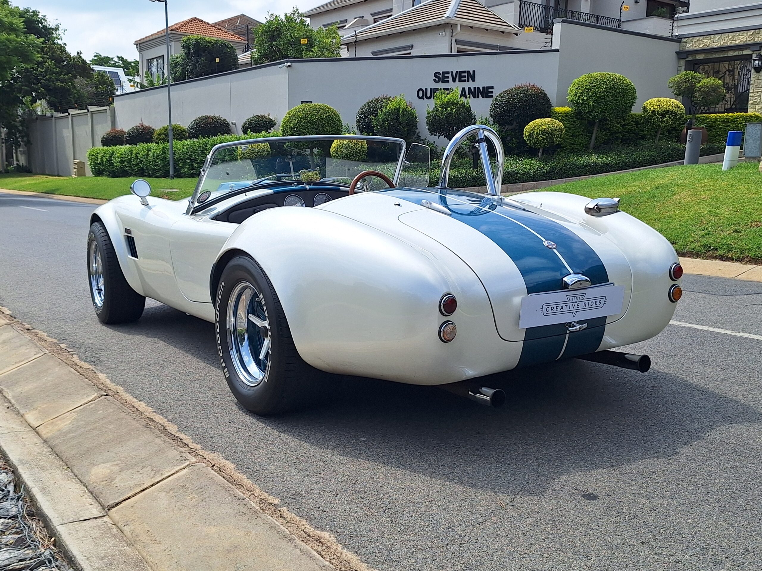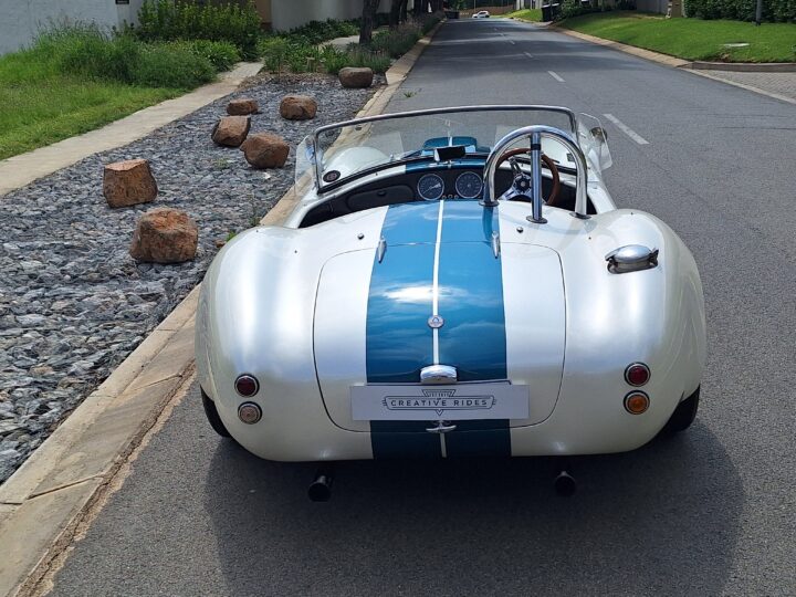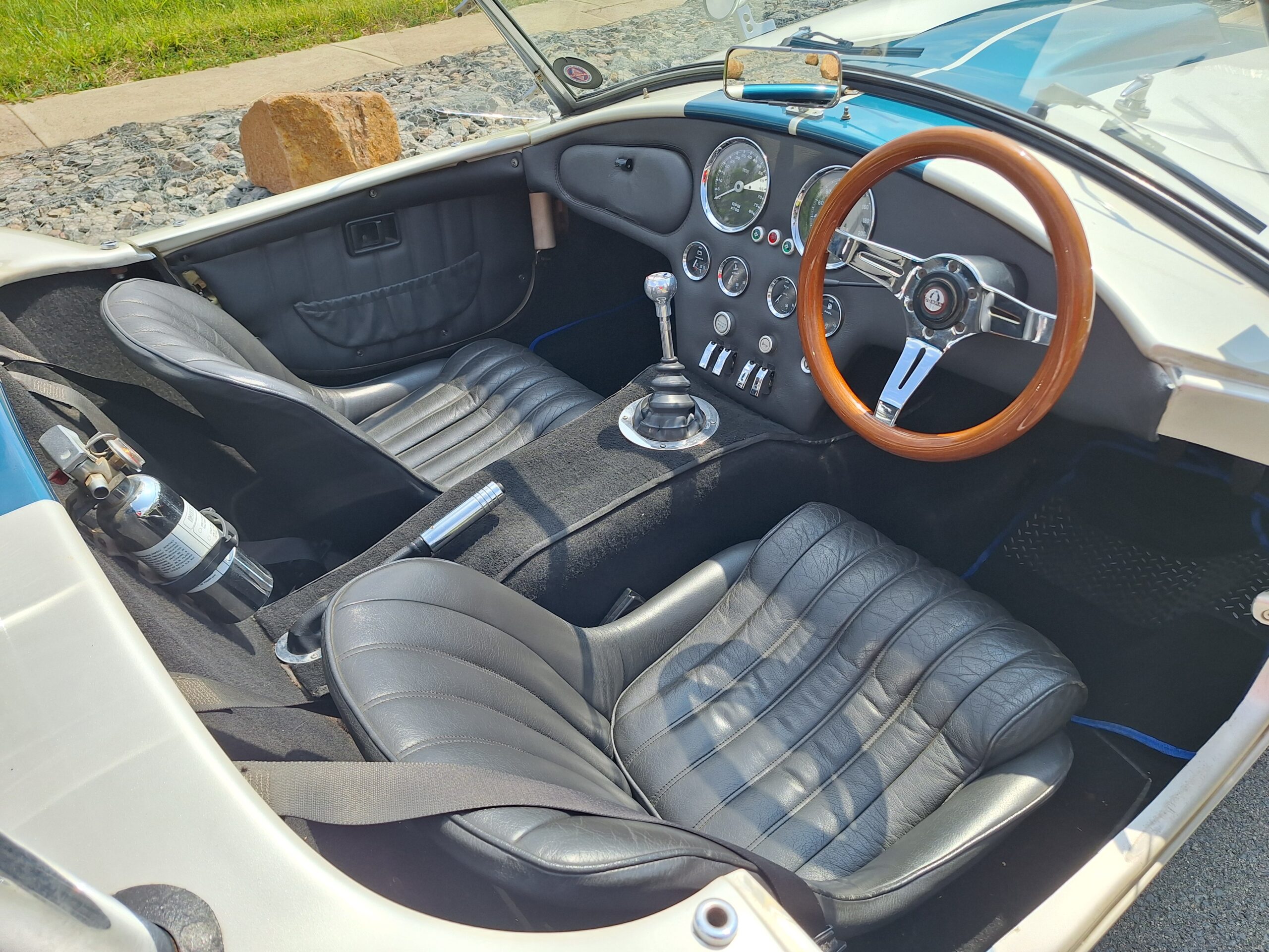 Cobra Replica (KCC 219) – Chev 350 V8, Jaguar Suspension, Pearl White with Blue Stripes