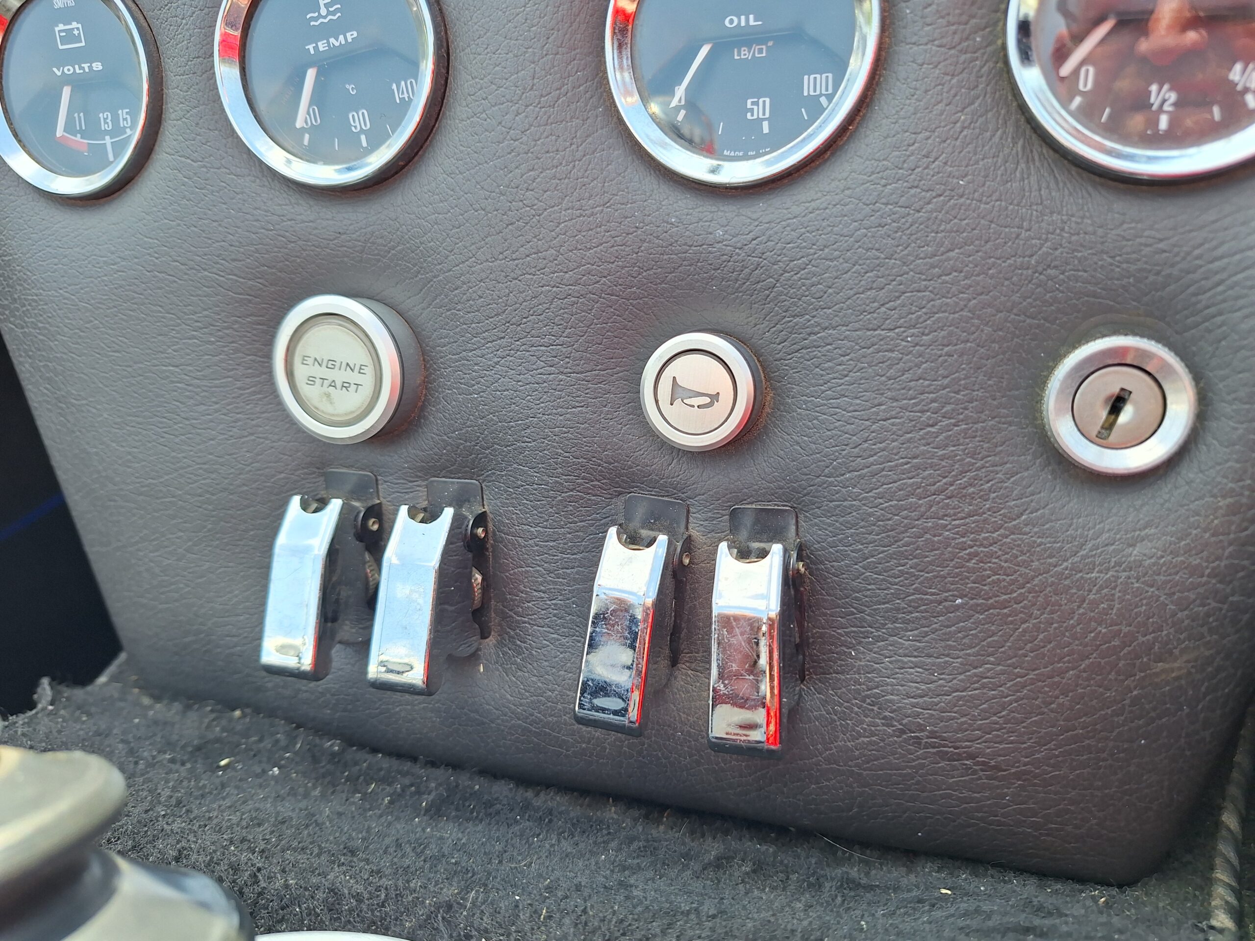 Power comes from a Chevrolet 350 V8, paired with Jaguar suspension for a drive that’s both lively and surprisingly composed when the road gets bumpy. The exhaust exits out the rear, ensuring it sounds every bit as bold as it looks.