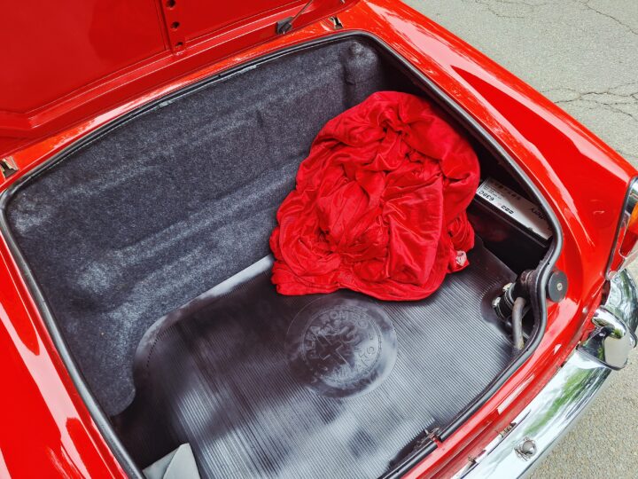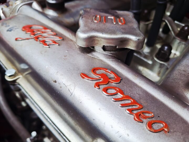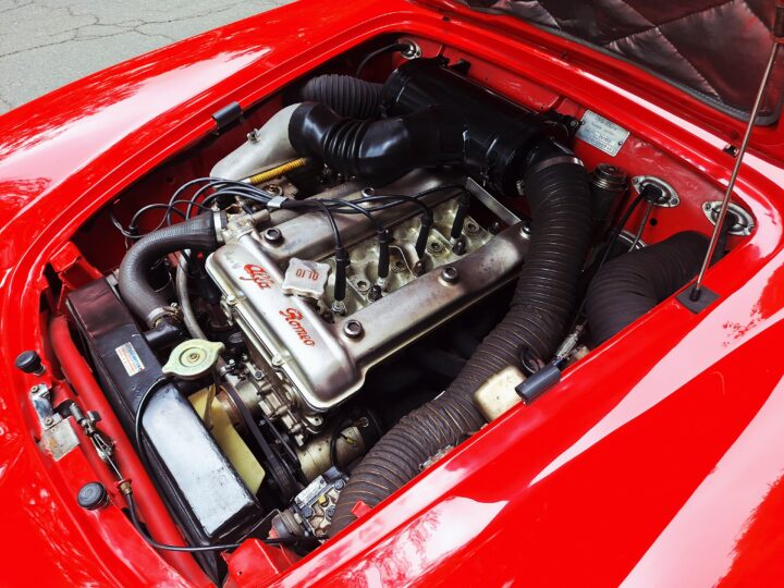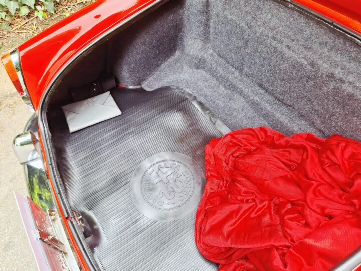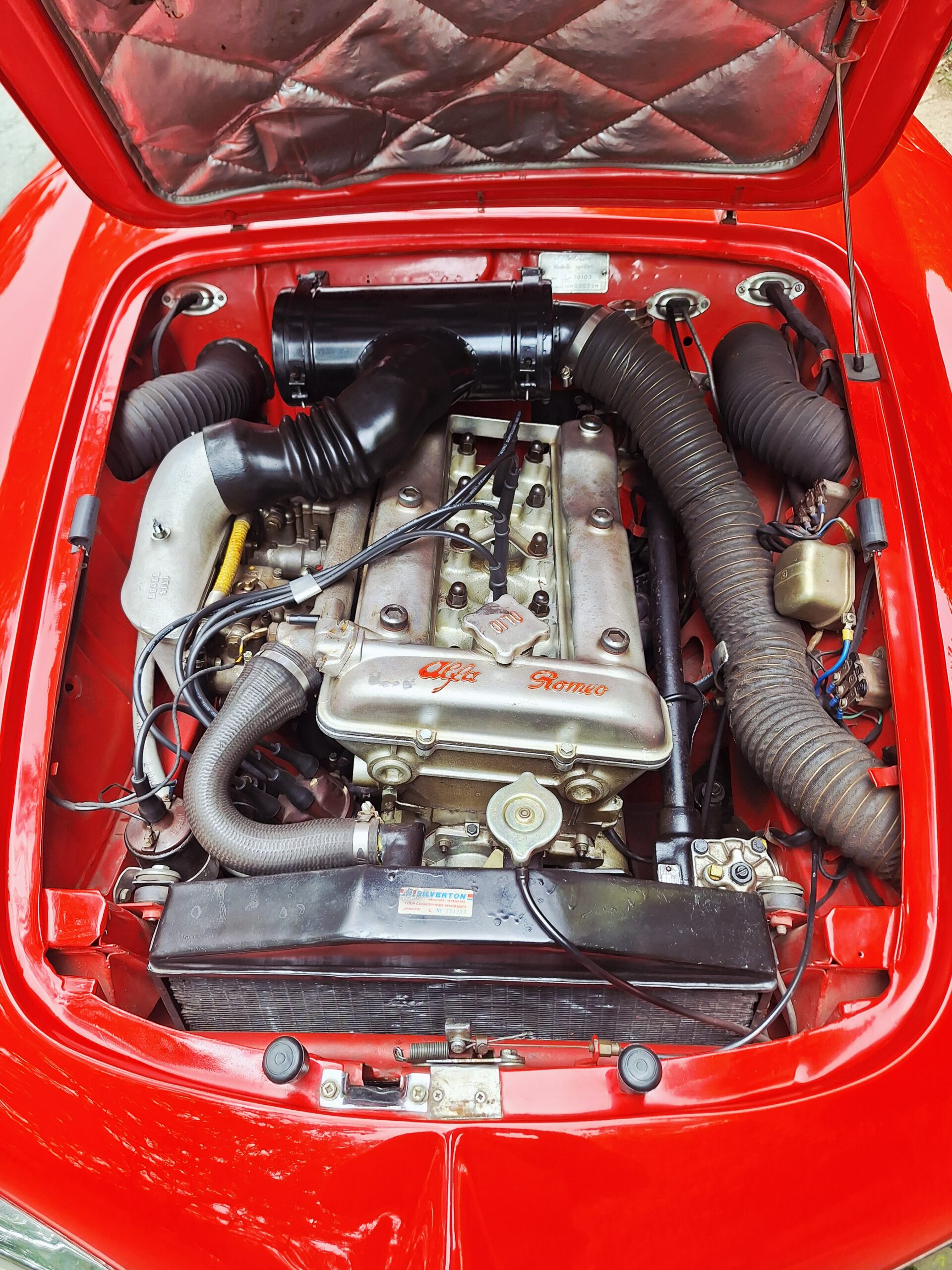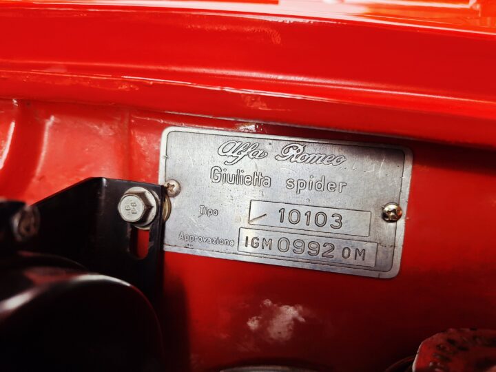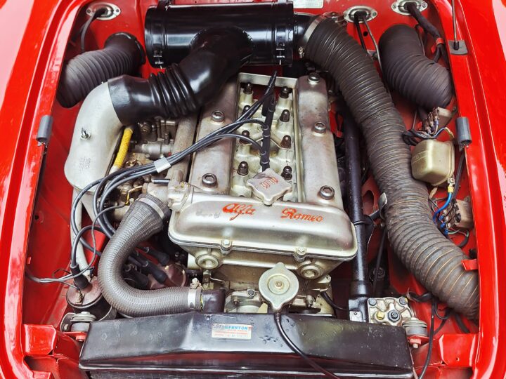 Today, this Giulietta Spider is powered by a sweet-singing 1600cc twin-cam engine, paired with a 4-speed manual gearbox that suits the character of the car perfectly. Importantly, the original 1300cc engine is included with the sale, adding an extra layer of appeal for enthusiasts who value originality and provenance.