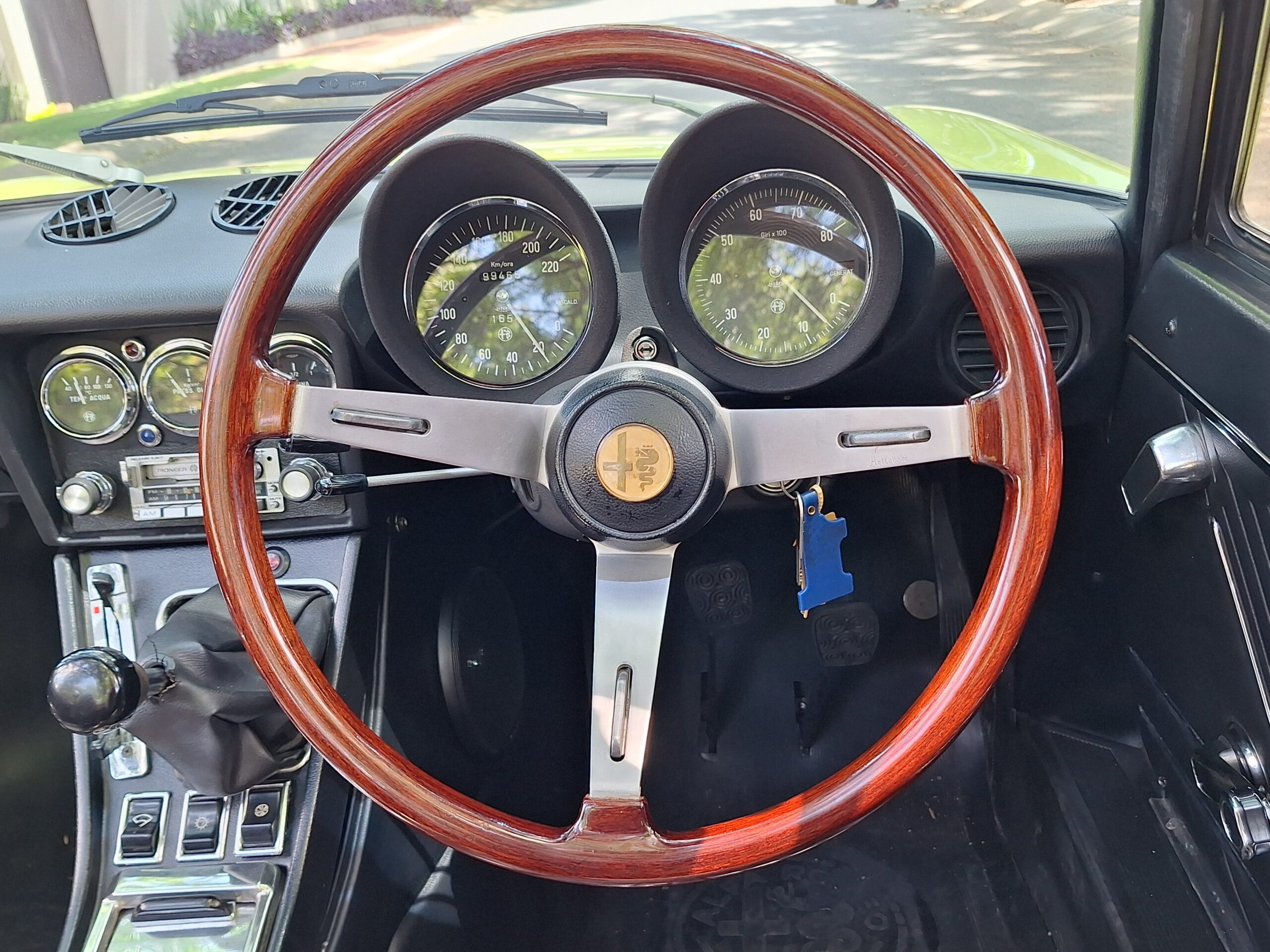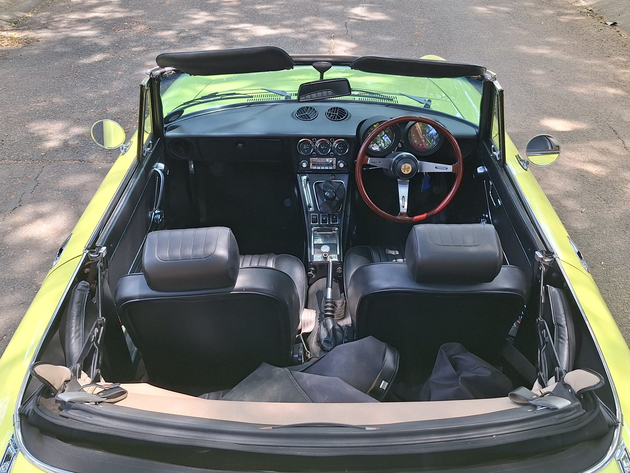 Under the bonnet sits Alfa’s legendary 2.0-litre inline-four, a long-running staple in the brand’s golden era. It’s torquey, eager, and paired to a 5-speed manual that makes this Spider exactly what it should be: light on its feet, engaging, and full of character without being a drama queen.