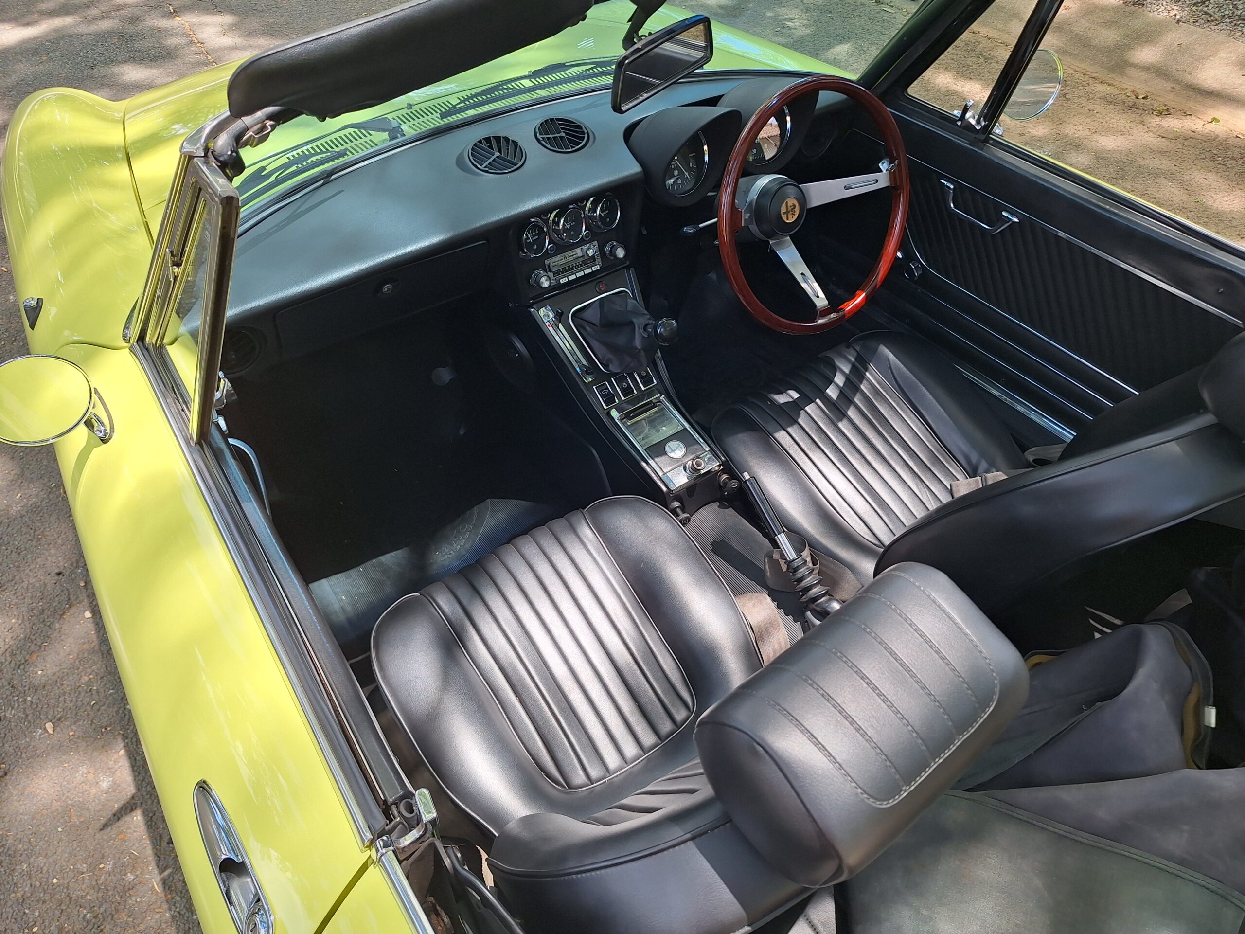 The soft top is new, so going from closed-up to open-air motoring takes seconds, no wrestling, no excuses. Inside, the driver’s seat is the best seat in the house: everything feels where it should be, with a period-correct vibe right down to the classic Pioneer Corporation radio that completes the look.
