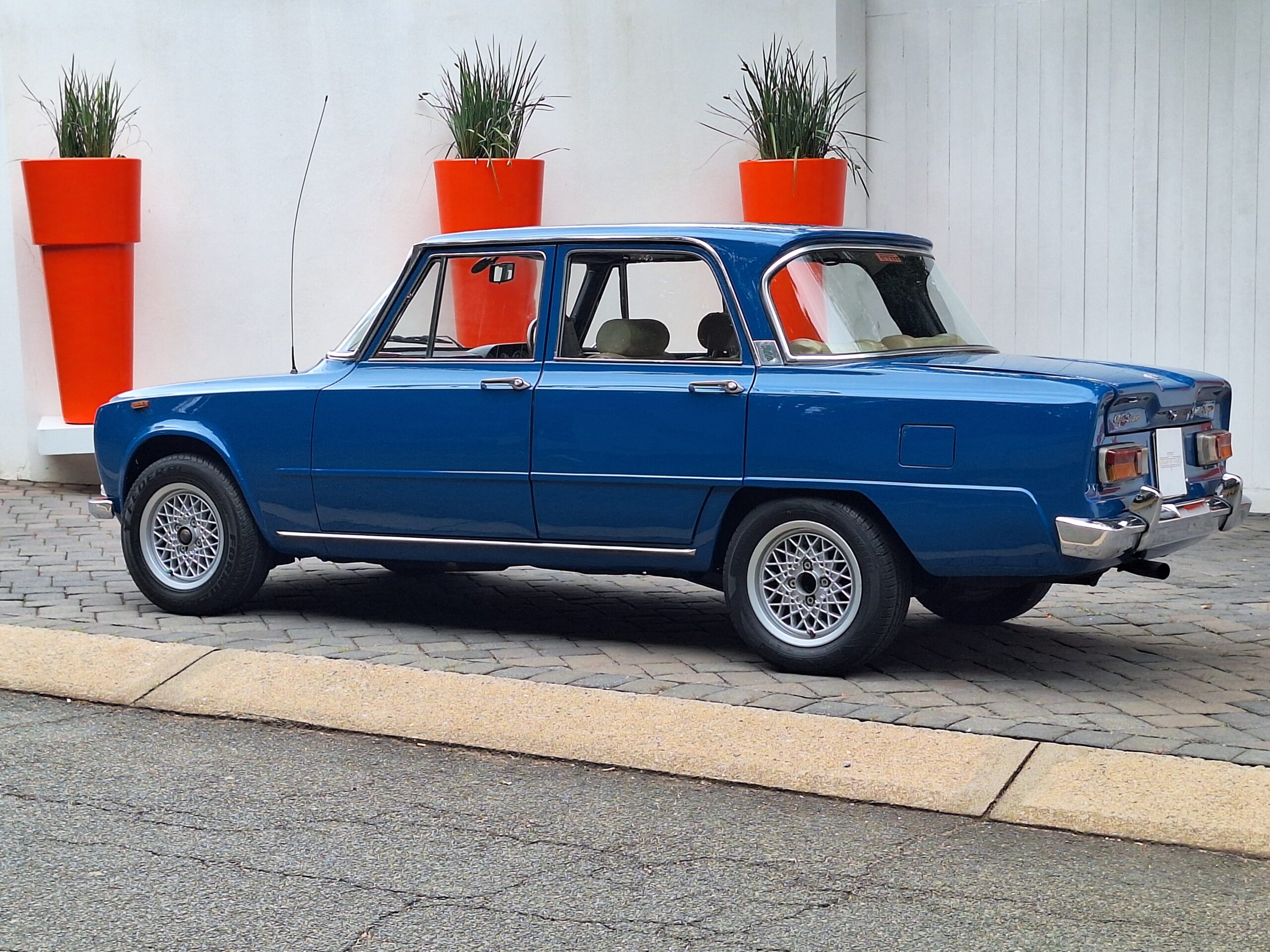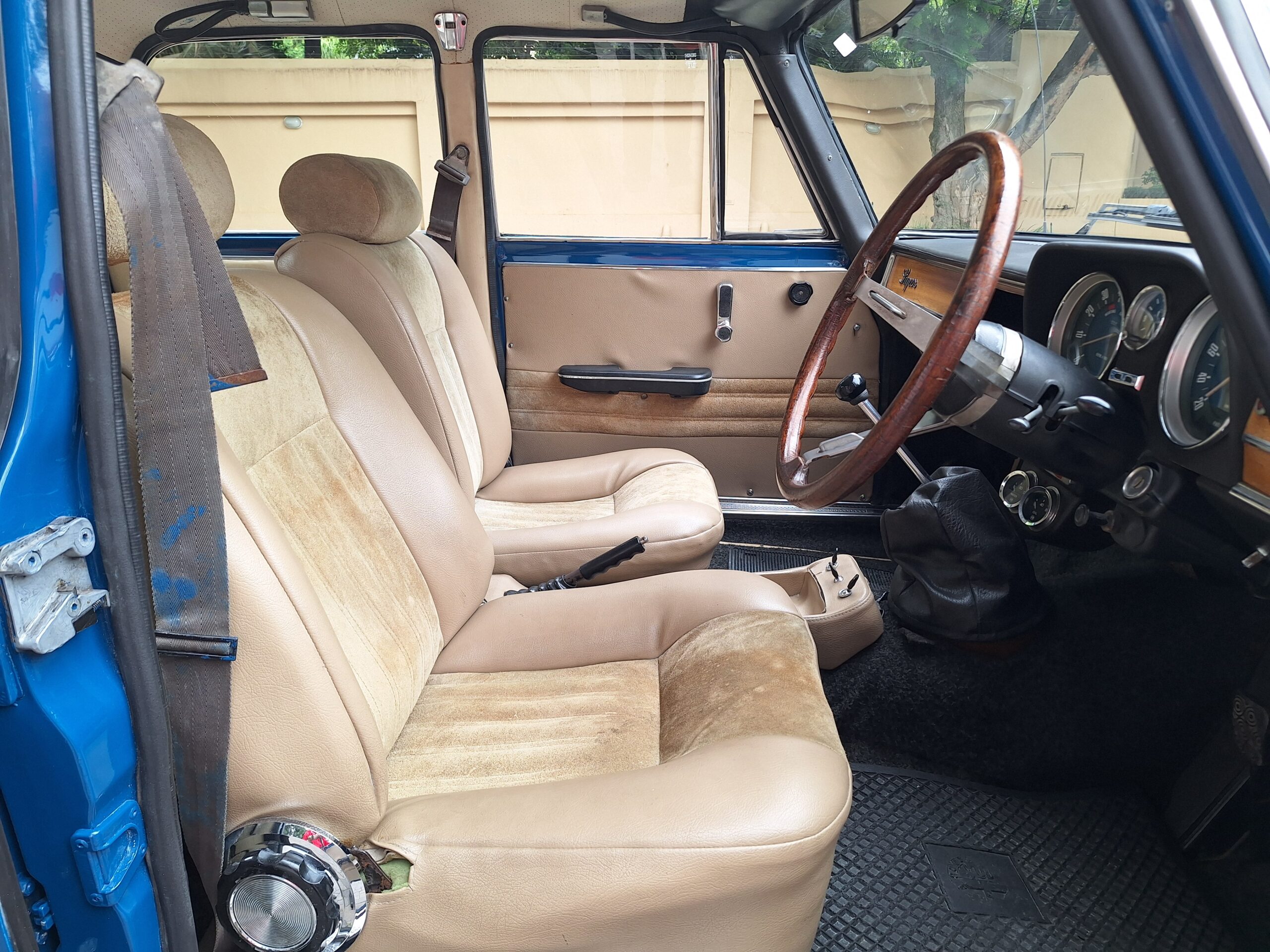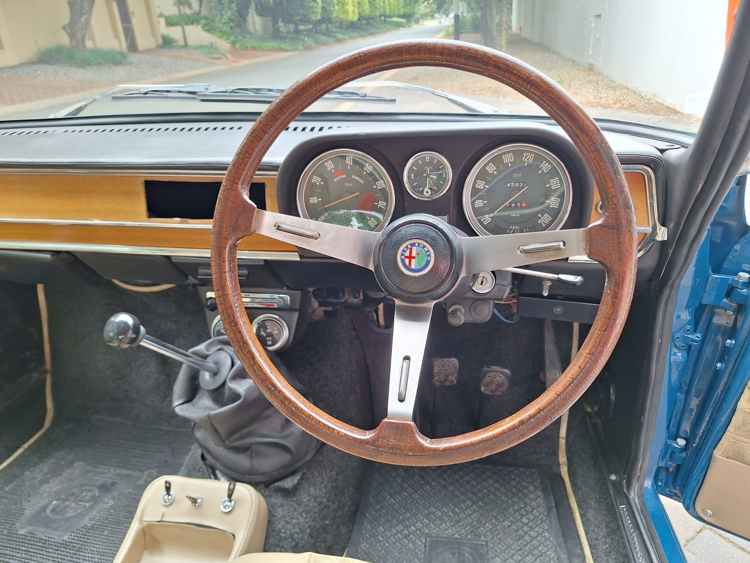 The exterior was resprayed approximately three months ago in a vibrant blue that really suits the sharp Giulia lines, while the brightwork and classic alloys complete the period look. Inside, the cabin is largely unrestored and honest, with tan seats featuring Alcantara centres that show age but still carry plenty of patina and charm. The radio is currently missing, leaving a blank canvas for the next owner to fit their preferred unit.
