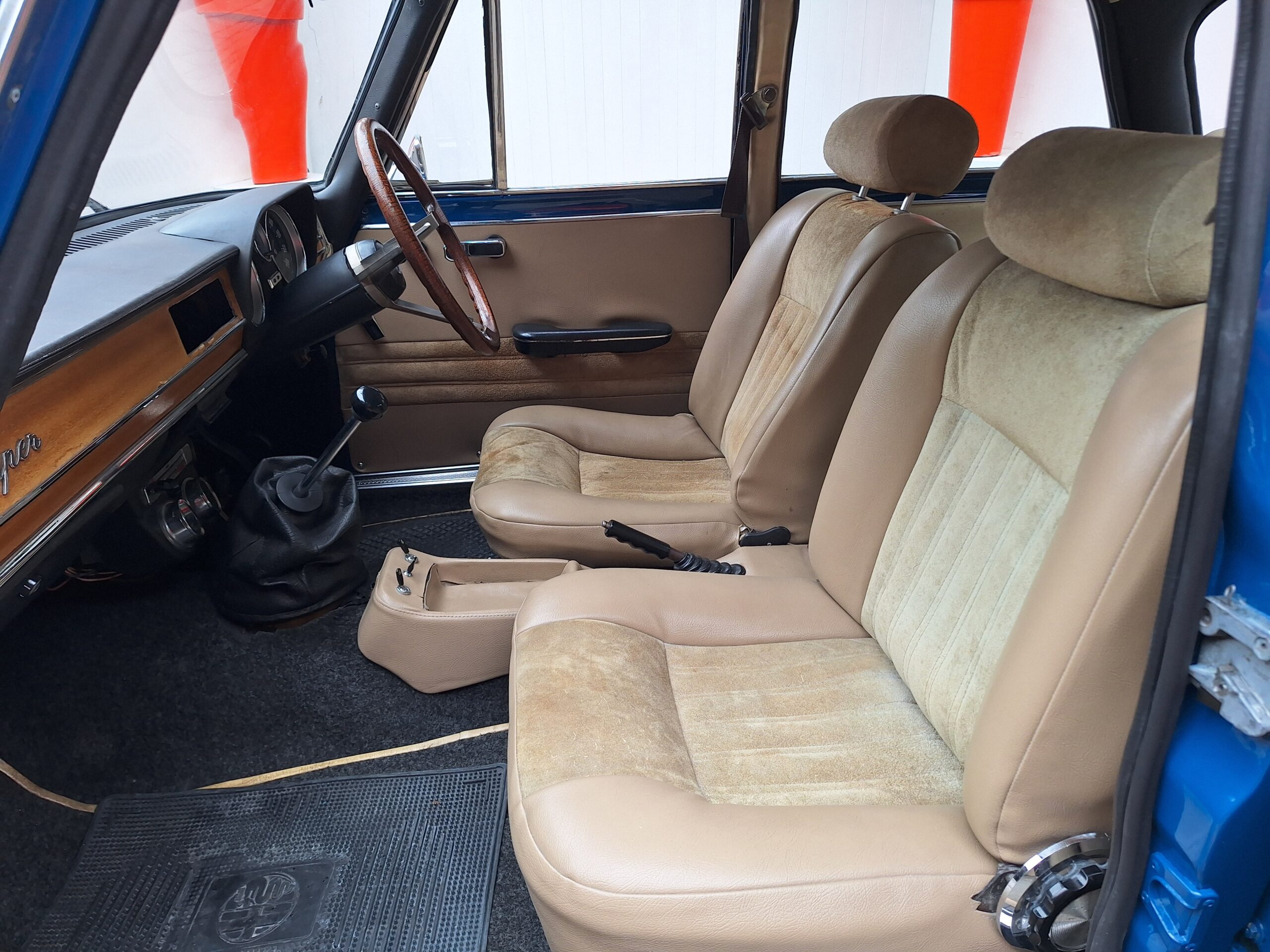 The exterior was resprayed approximately three months ago in a vibrant blue that really suits the sharp Giulia lines, while the brightwork and classic alloys complete the period look. Inside, the cabin is largely unrestored and honest, with tan seats featuring Alcantara centres that show age but still carry plenty of patina and charm. The radio is currently missing, leaving a blank canvas for the next owner to fit their preferred unit.