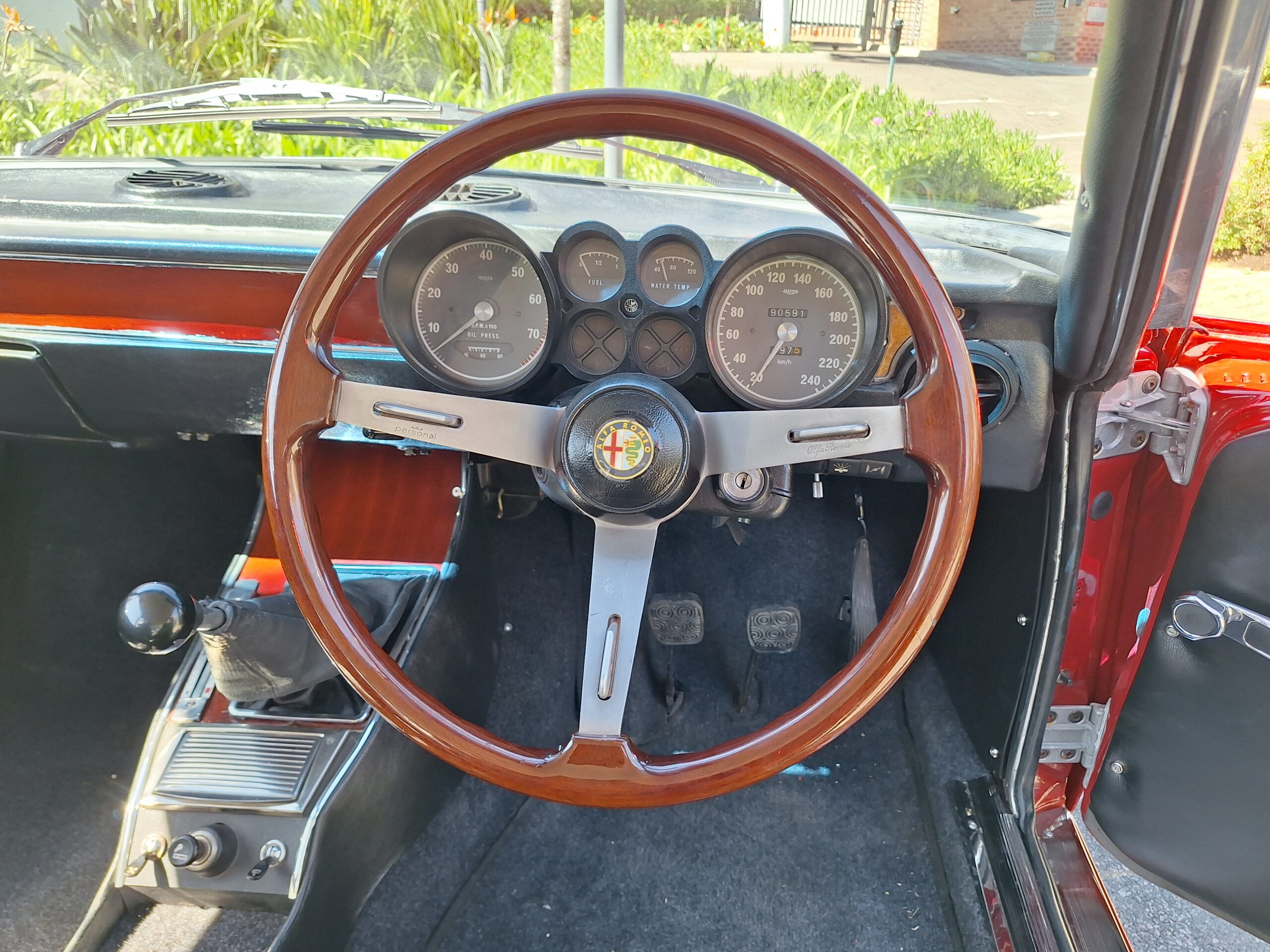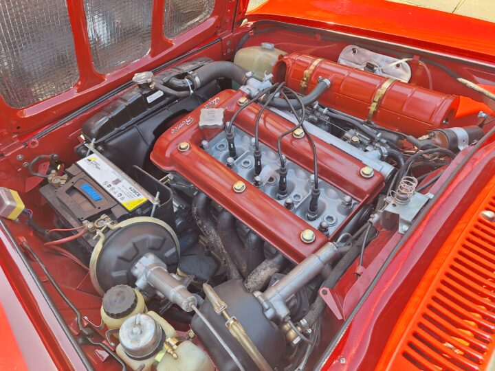 Finished in the perfect shade of Rosso Alfa, this GTV is all about the joy of the drive. Slip into the driver-focused cockpit with its wood-rimmed wheel and classic Jaeger dials, and you’re instantly transported back to an era where every journey felt special.