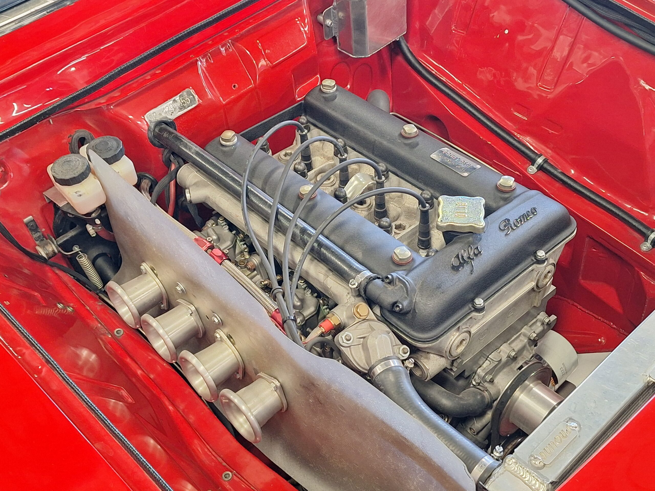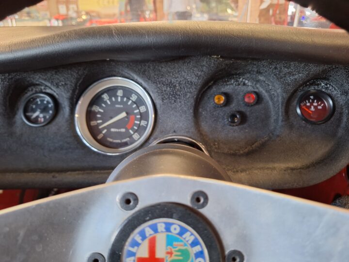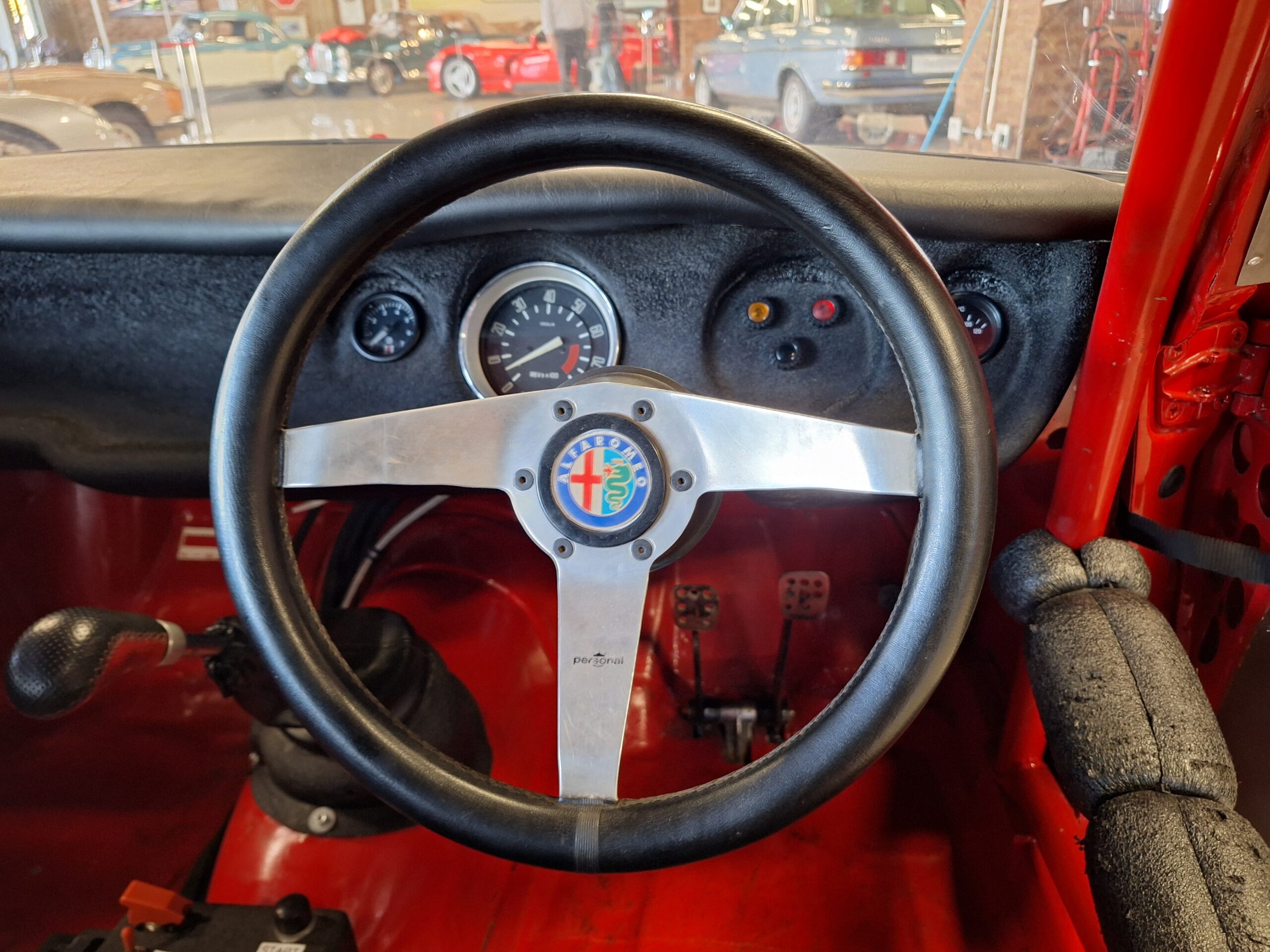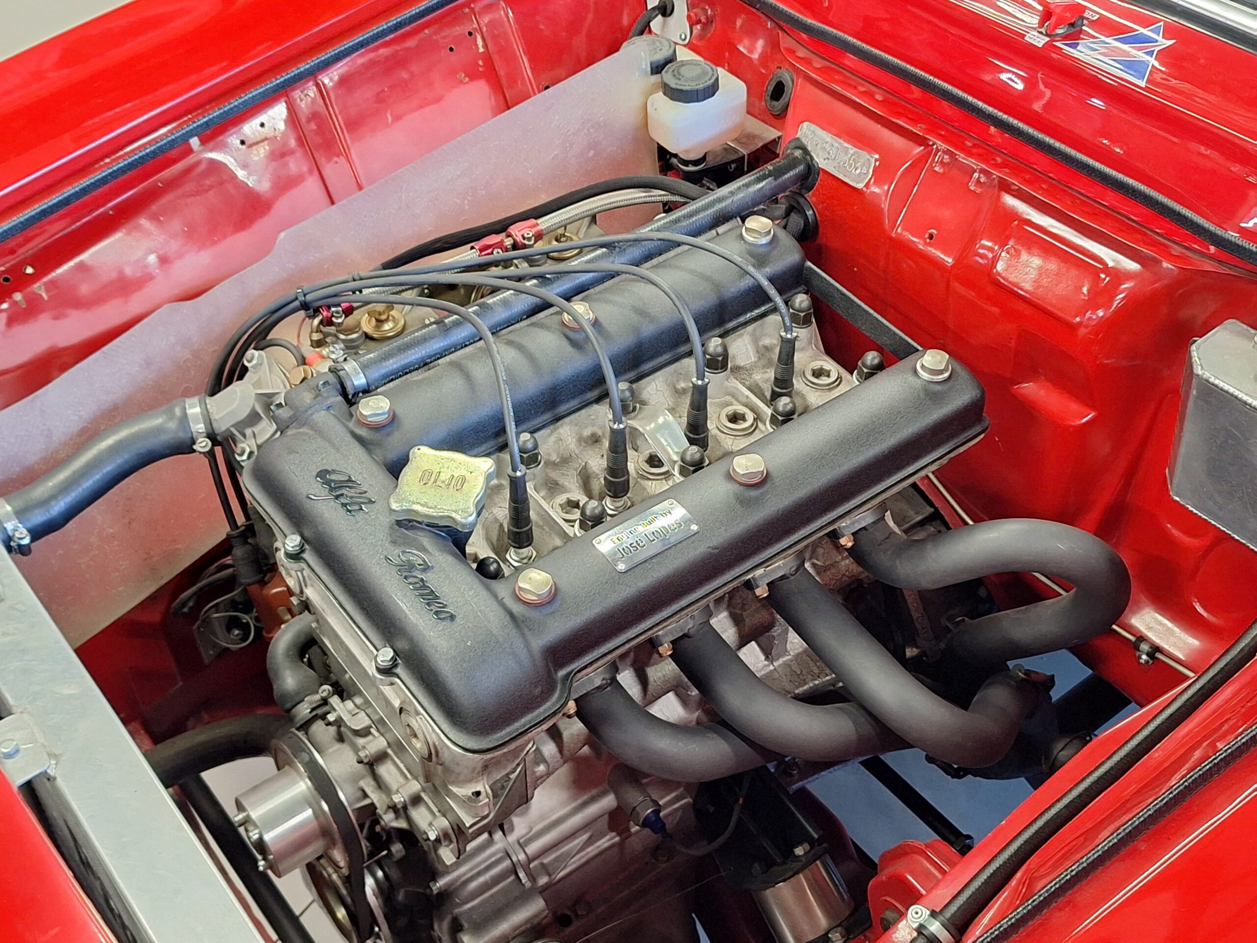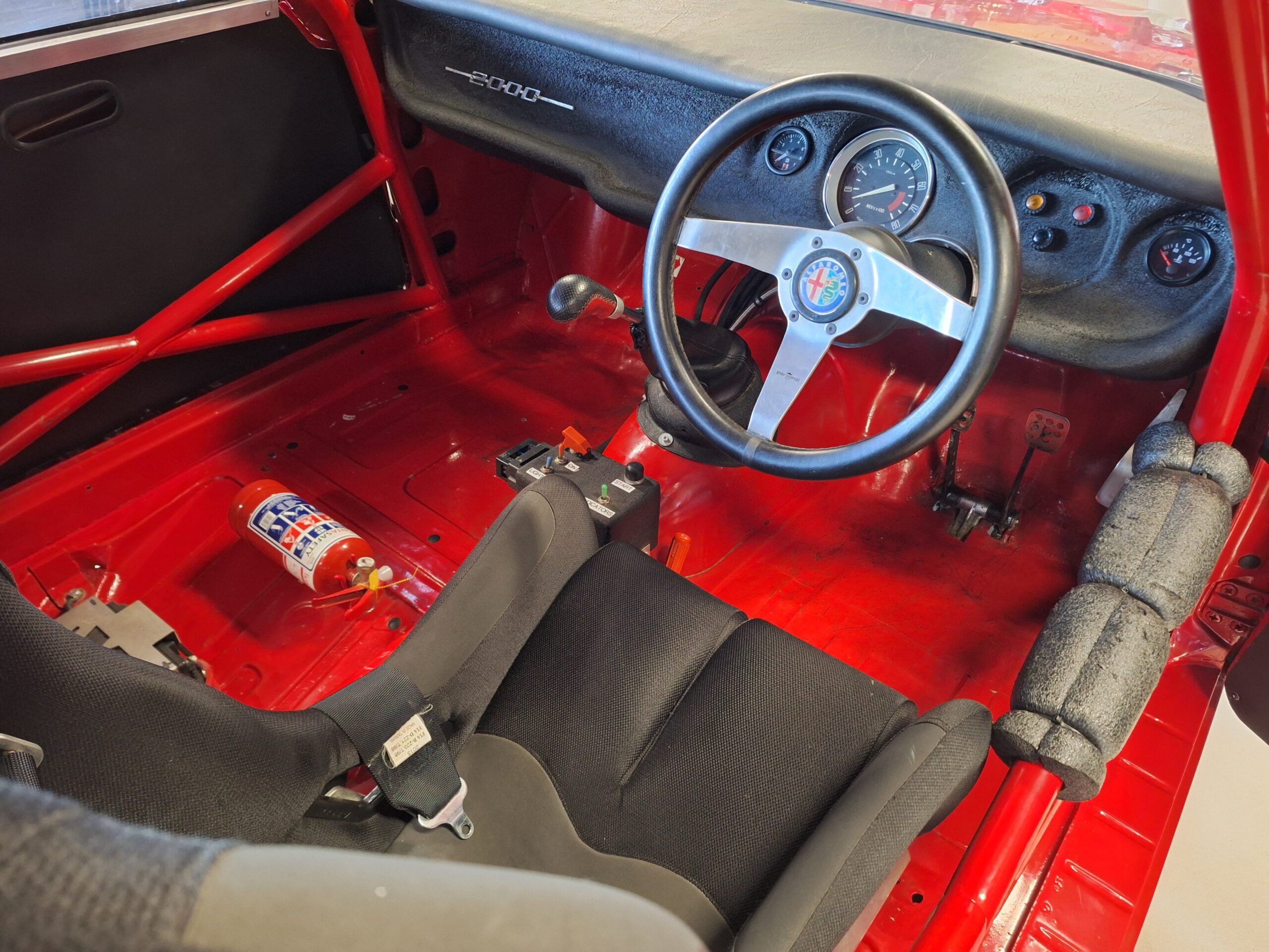 Constructed by master engineer José Lopes, the car has been meticulously prepared with no expense spared. Many of the specialist performance parts were sourced directly from Alfaholics UK, ensuring race-ready quality. Power comes from a fully built 2.0-litre twin-cam engine with side-draught carburettors, breathing through a hand-crafted exhaust manifold and delivering the raw Alfa soundtrack that defined an era.