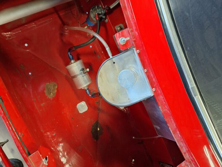 Weight-saving was a priority: the doors, bonnet and boot lid are fiberglass, and all the glass, including the windscreen has been replaced with lightweight Perspex. Even better, the bonnet carries the autograph of Arnold Chatz himself, making this car a genuine collector’s piece.