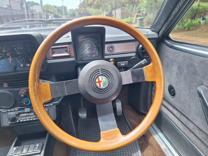 Under the bonnet lies the legendary 2.5-litre all-aluminium V6 engine with Bosch L-Jetronic fuel injection, producing around 118 kW (160 hp). Power is delivered through a rear-mounted 5-speed transaxle gearbox, giving the GTV6 near-perfect 50/50 weight distribution and the sharp, communicative handling that made it a driver’s favourite.