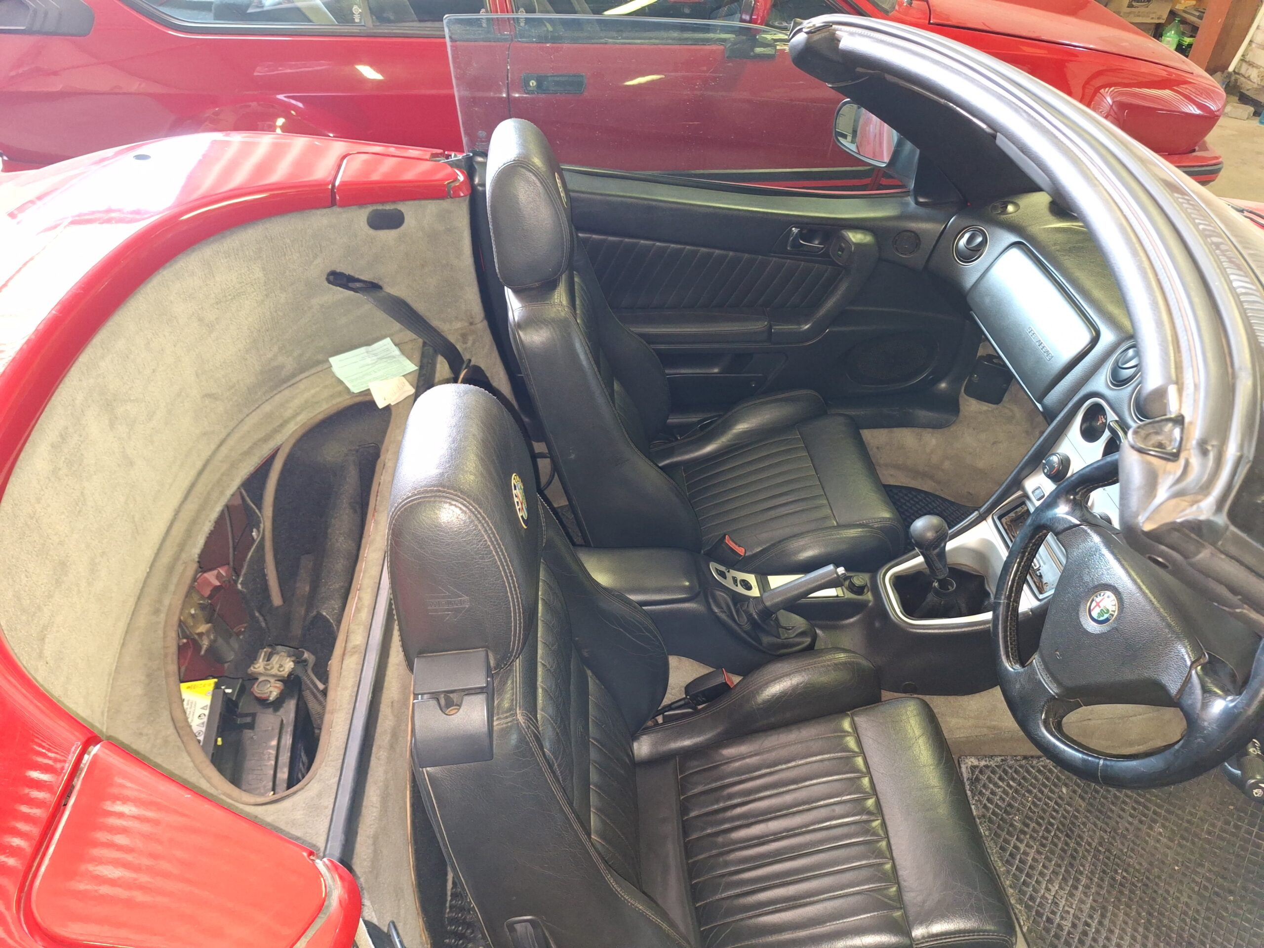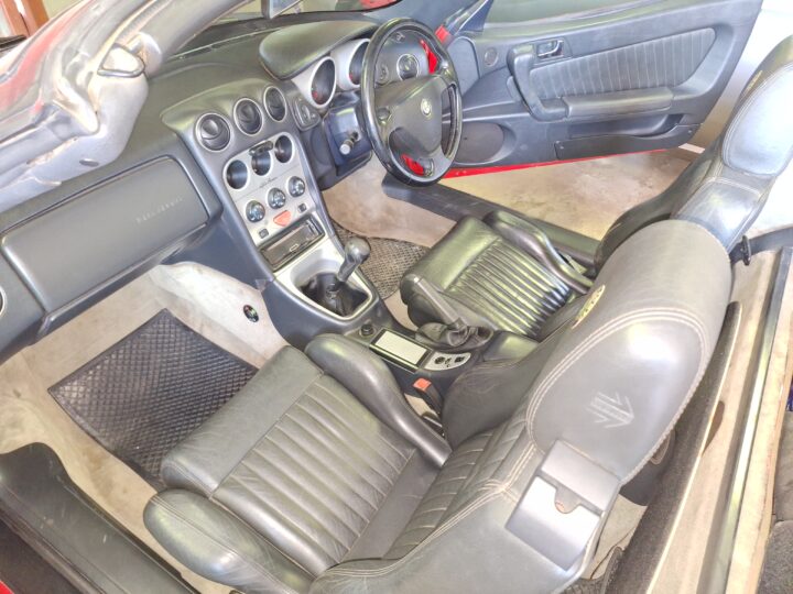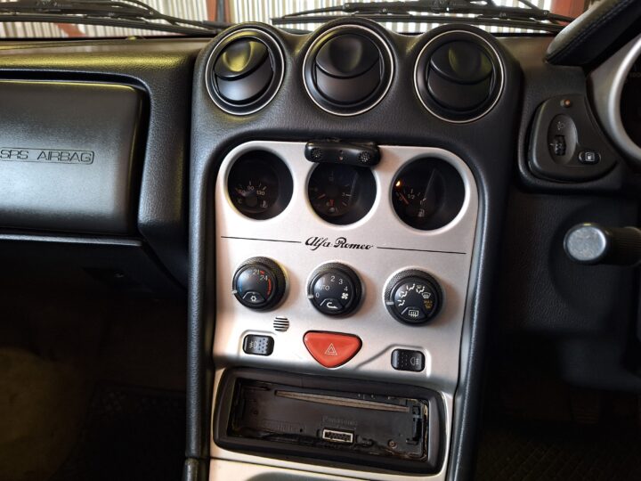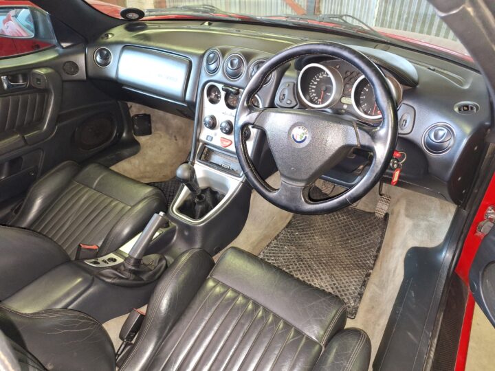 Presented as an honest and largely original car, the Spider currently sits on aftermarket alloy wheels, and we are told that there is an original set of wheels for the car as well. The engine has been swapped at some point in the car’s life, and there are no service books with the vehicle. The black leather interior remains tidy for its age, and the soft top is in working order, making this an appealing open-top Alfa for weekend drives and summer cruising.