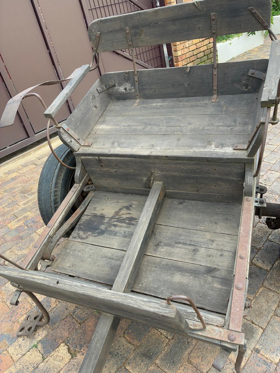 A beautifully crafted antique/vintage donkey cart, featuring impressive steel mongery and traditional leaf spring suspension. Built in the classic rural style, this cart shows strong old-world workmanship and makes a striking display or restoration piece.