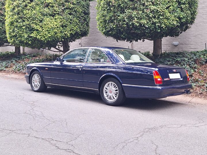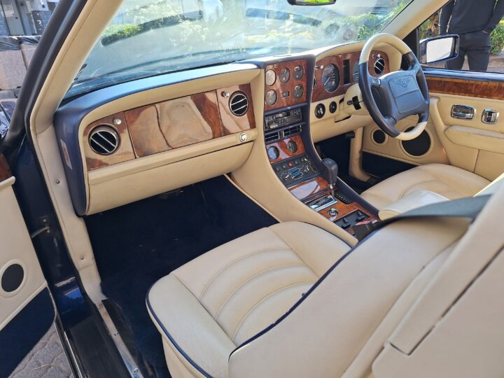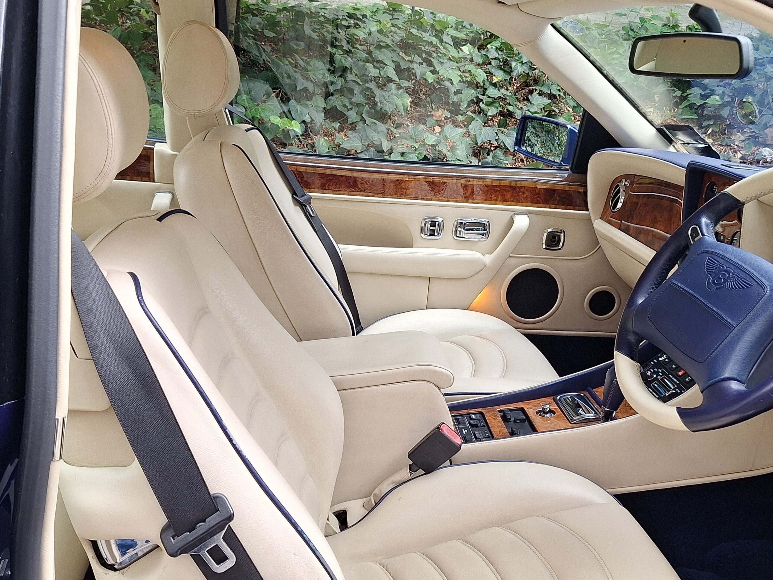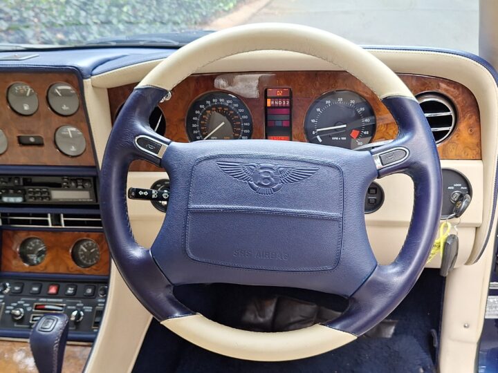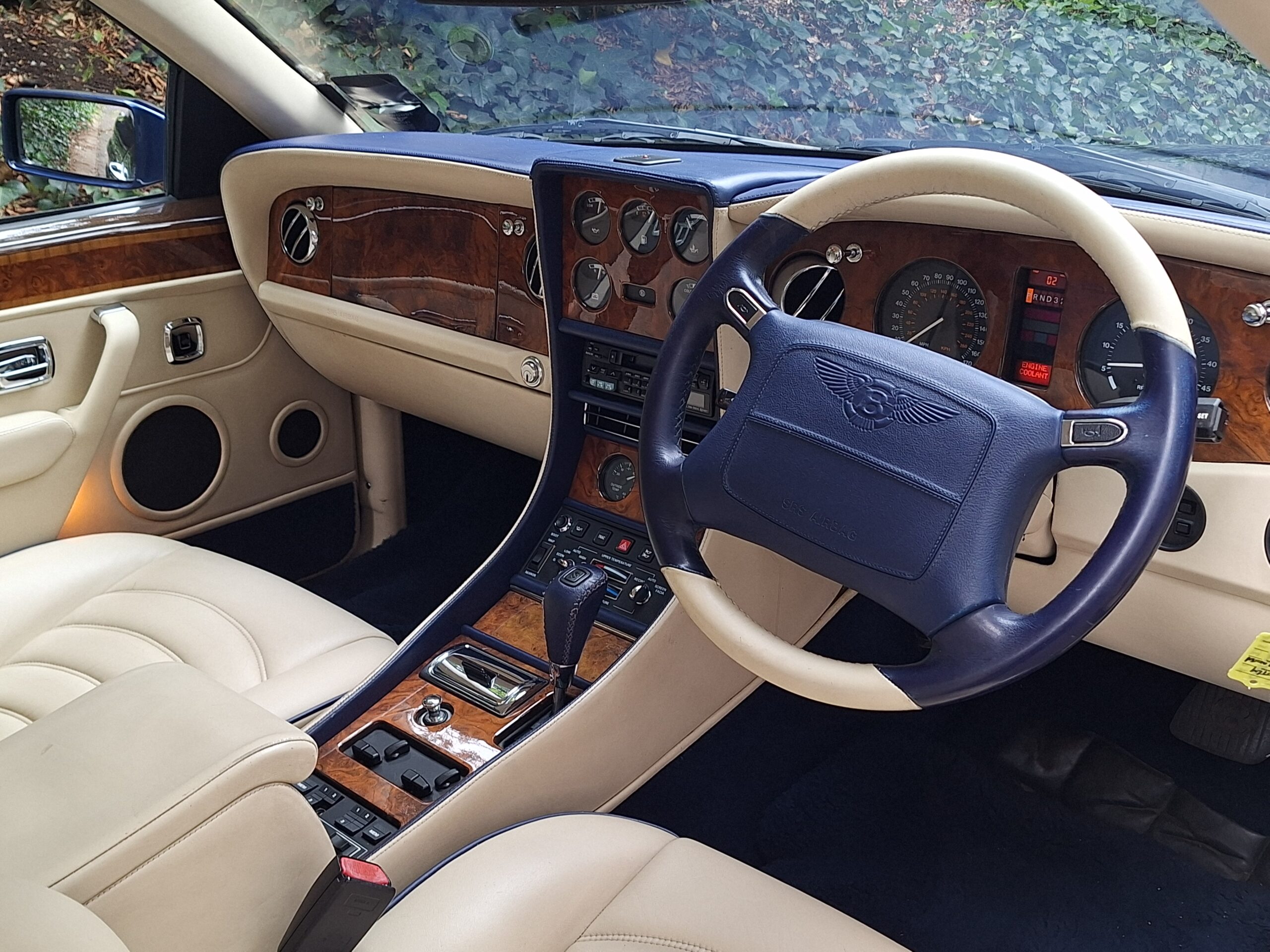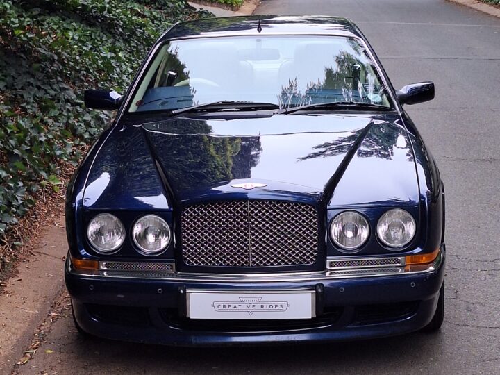 This 1998 example epitomises the discreet grandeur that defined the model. Finished in elegant Metallic Blue, it presents beautifully with gleaming brightwork, factory alloy wheels, and the unmistakable Bentley mesh grille.