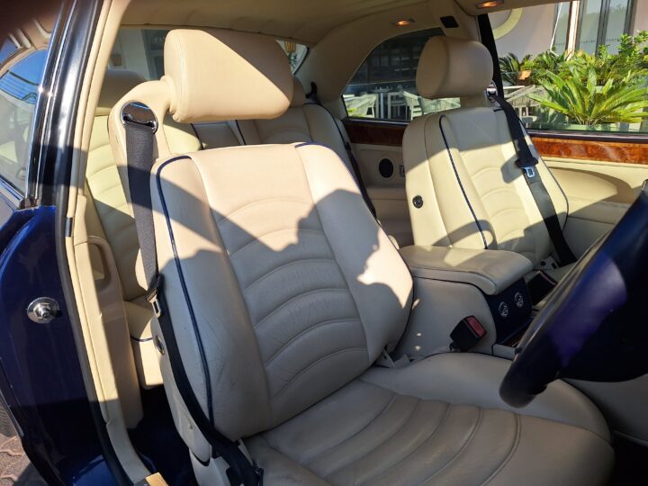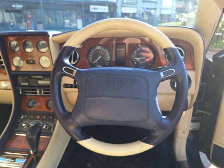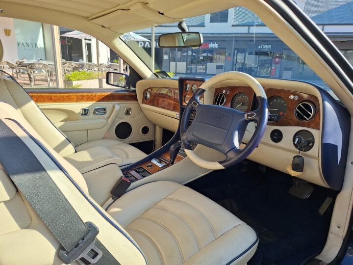 This 1998 example epitomises the discreet grandeur that defined the model. Finished in elegant Metallic Blue, it presents beautifully with gleaming brightwork, factory alloy wheels, and the unmistakable Bentley mesh grille.