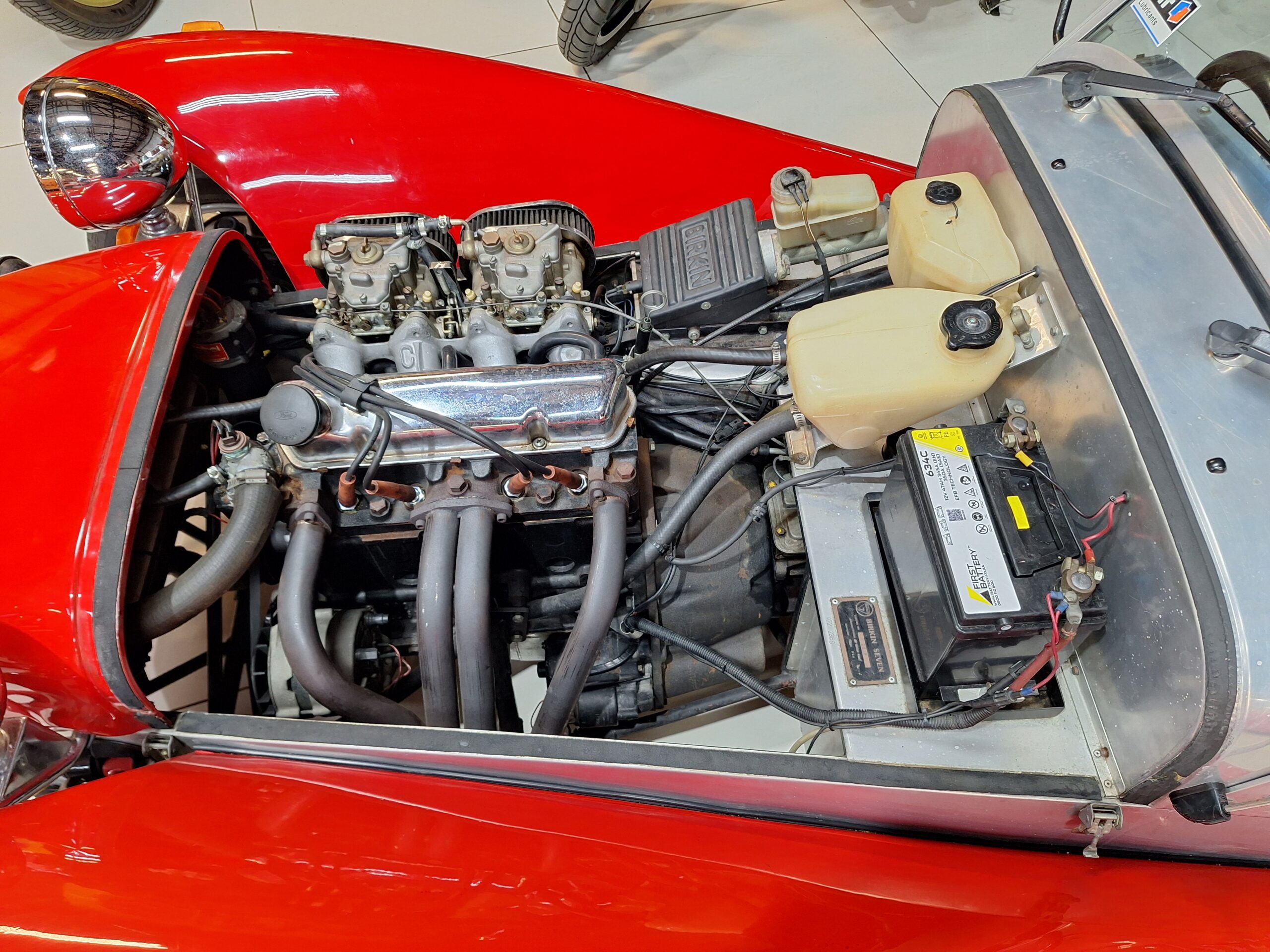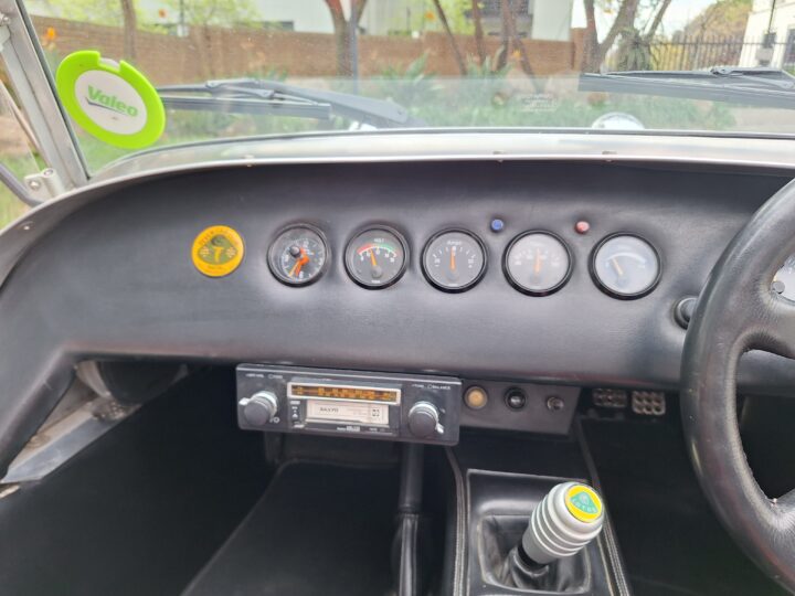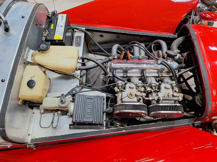 This particular example captures the authentic spirit of the original Lotus S2 Super 7, featuring full front fenders, alloy panels throughout (apart from the nose cone and fenders), and classic Minilite-style wheels including the spare. Practical additions include a tonneau cover, side screens, and even a period radio cassette player, making it as usable as it is enjoyable.