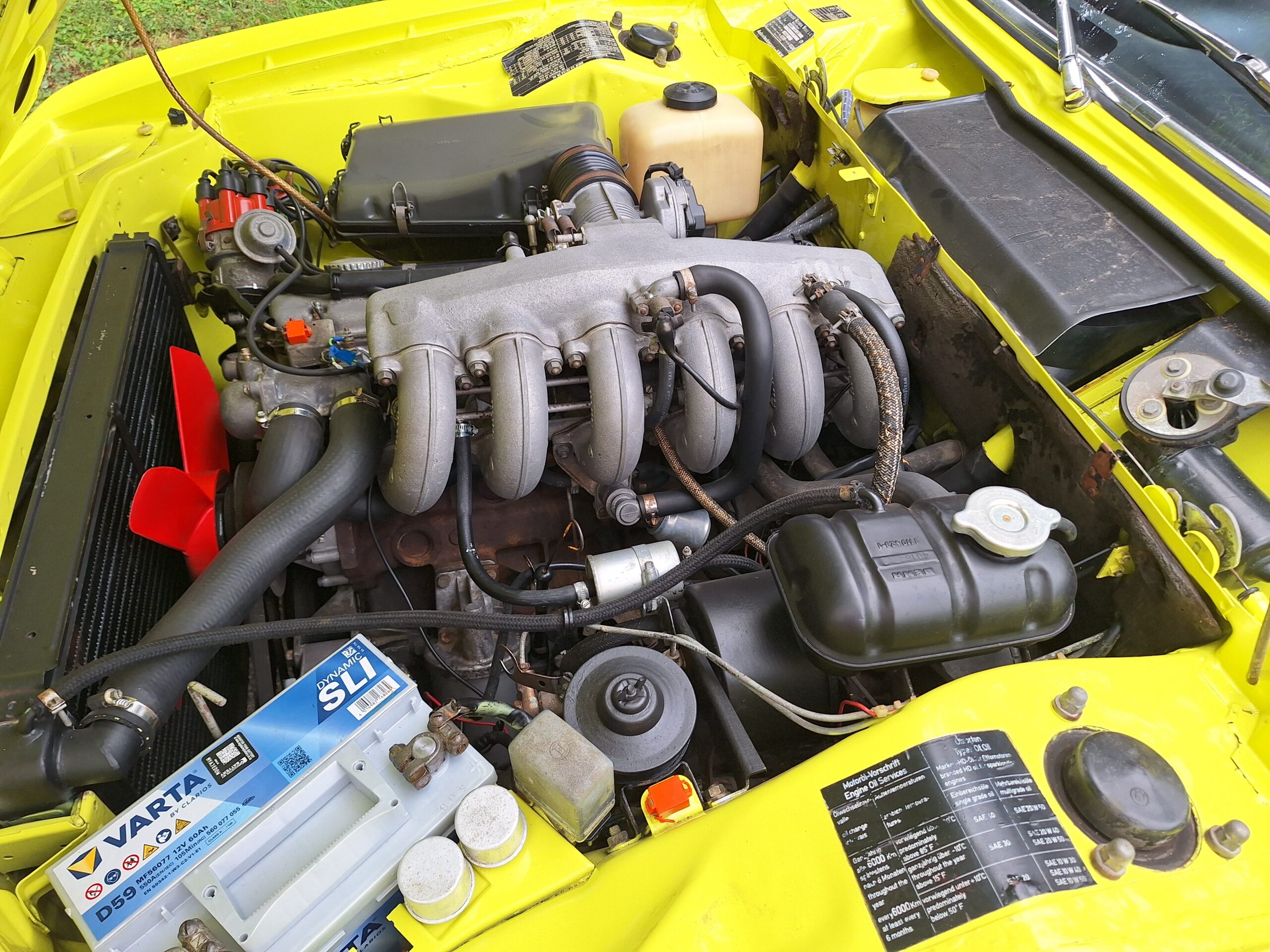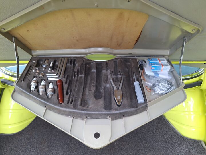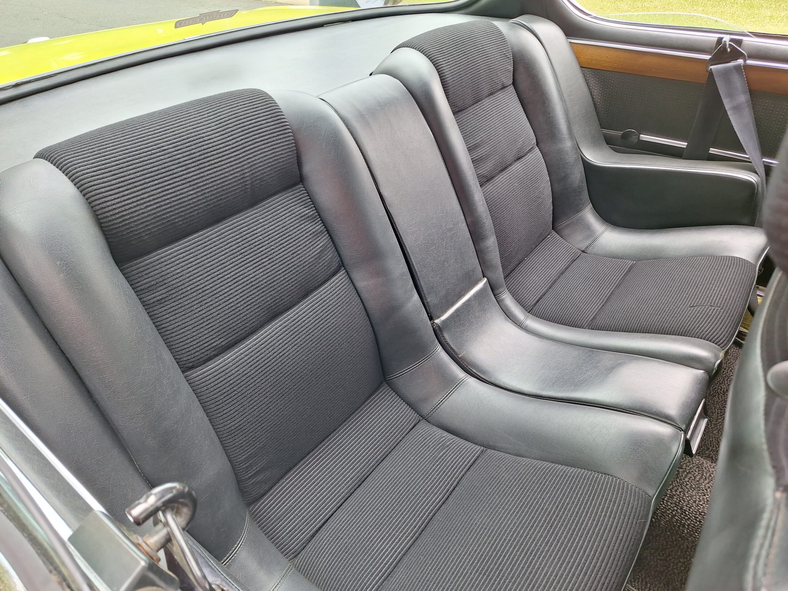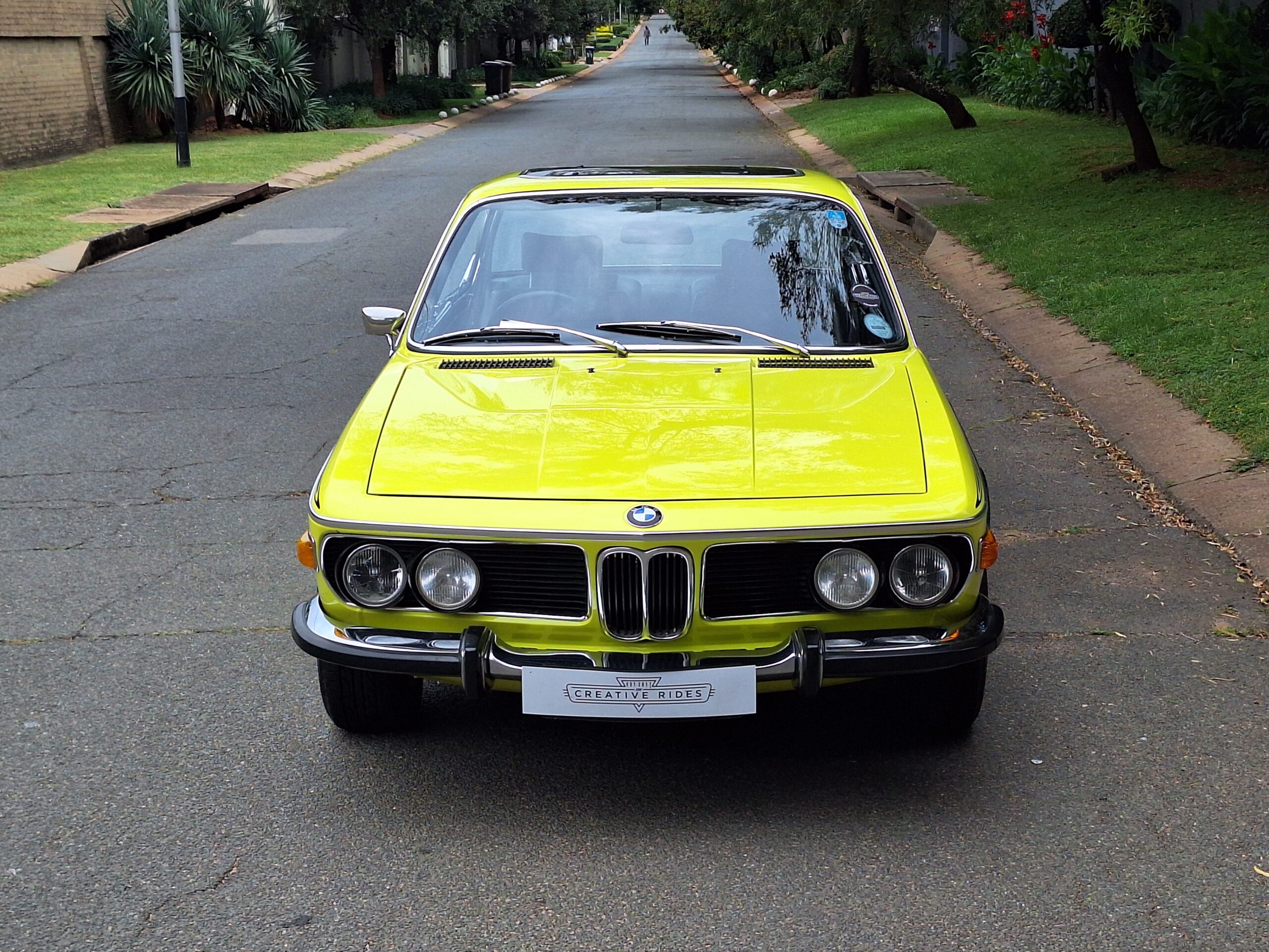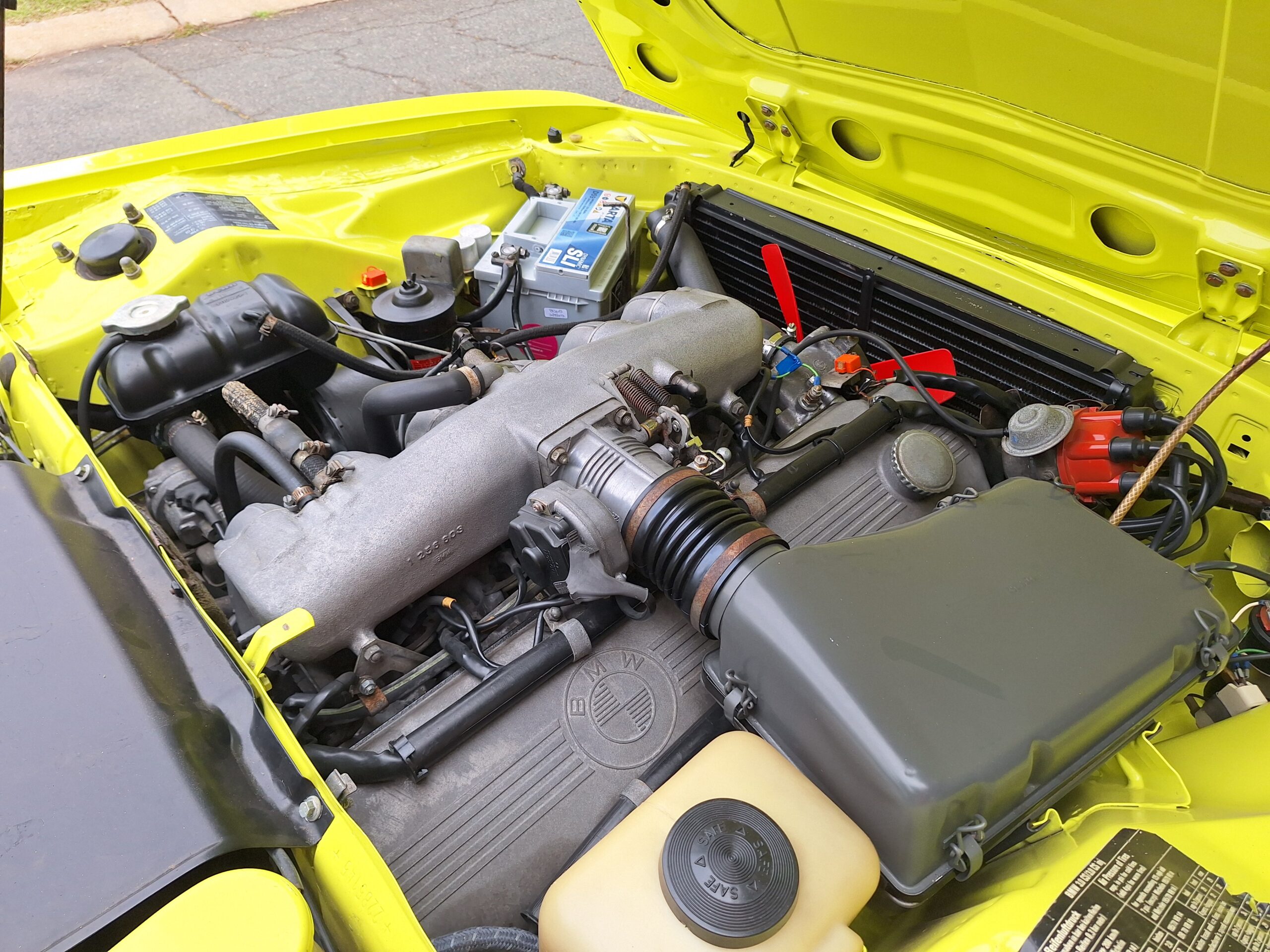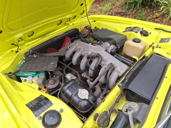 This example is finished in its factory Golf Yellow with the signature CSL black side stripes, riding on Alpina 14-inch alloy wheels. Inside you’ll find genuine Scheel bucket seats, a Mountney 3-spoke steering wheel, and classic woodgrain trim that keeps the grand touring vibe intact.