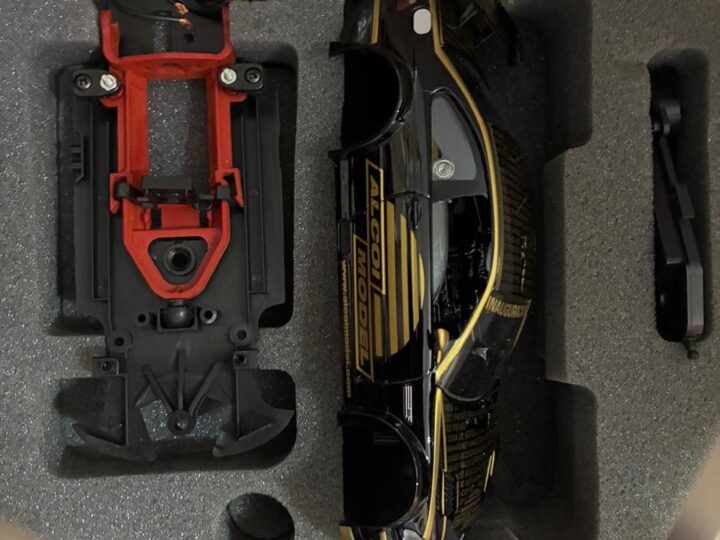 A sleek and collectible Fly slot car kit of the BMW GTR, finished in black. Ref 99079 includes unassembled components, allowing enthusiasts to build, detail, and personalise the model to their own standard.