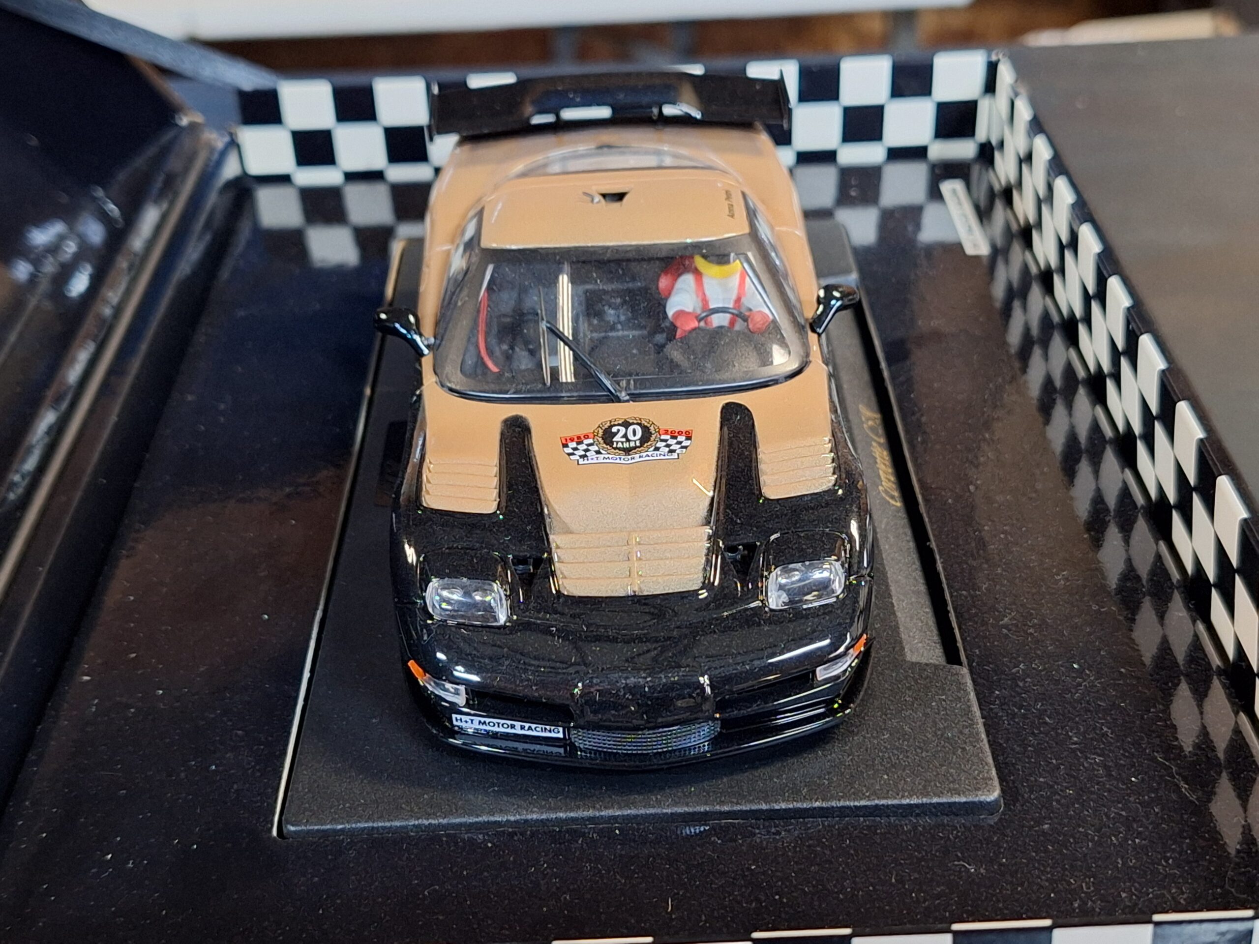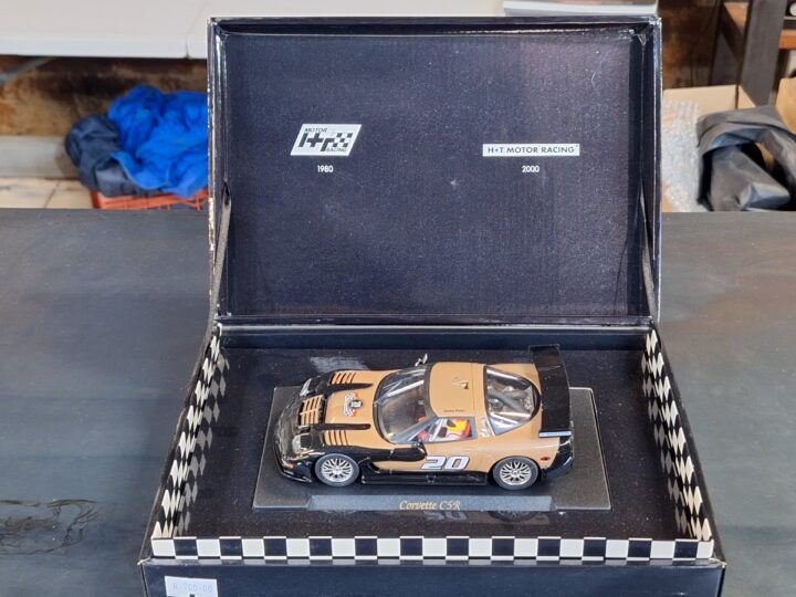 A detailed Fly slot car of the Corvette C5 in full H+T Motor Racing livery. Presented brand new and still in its original box, this model showcases Fly’s high-quality detailing, sharp graphics and strong track performance.