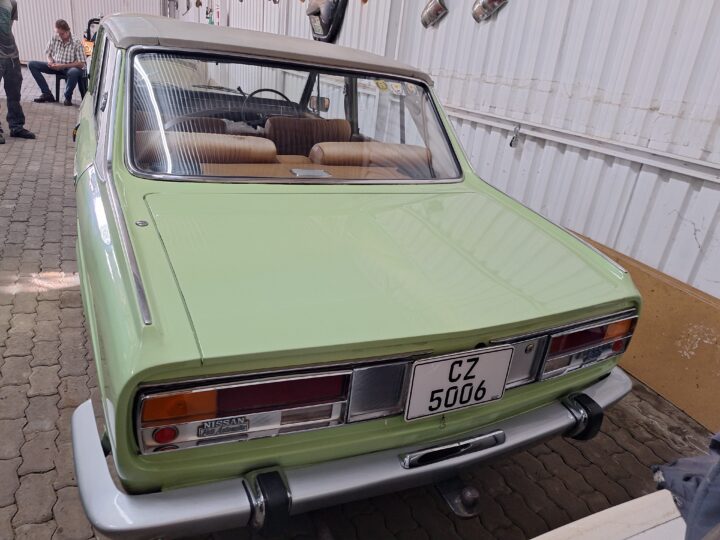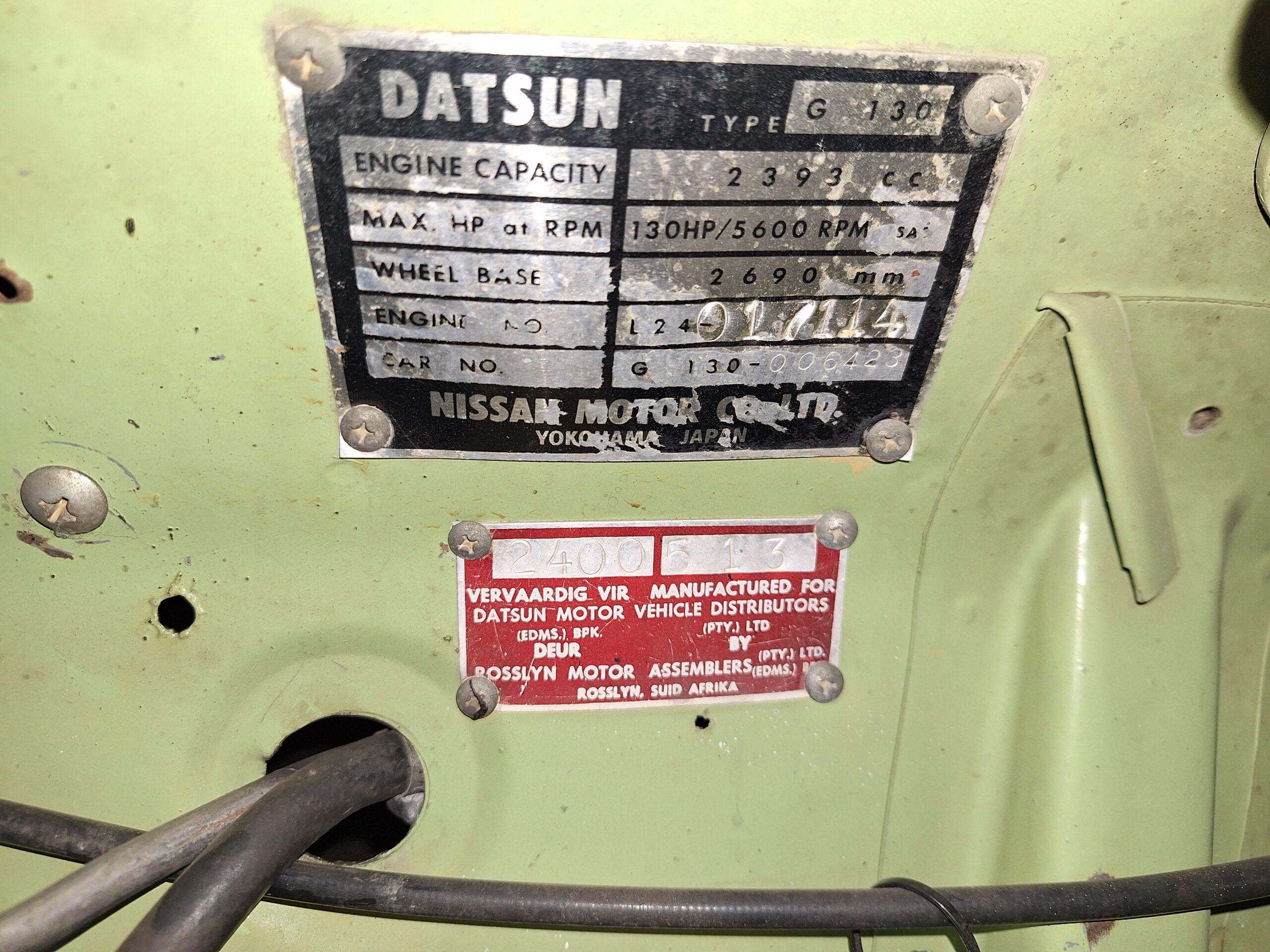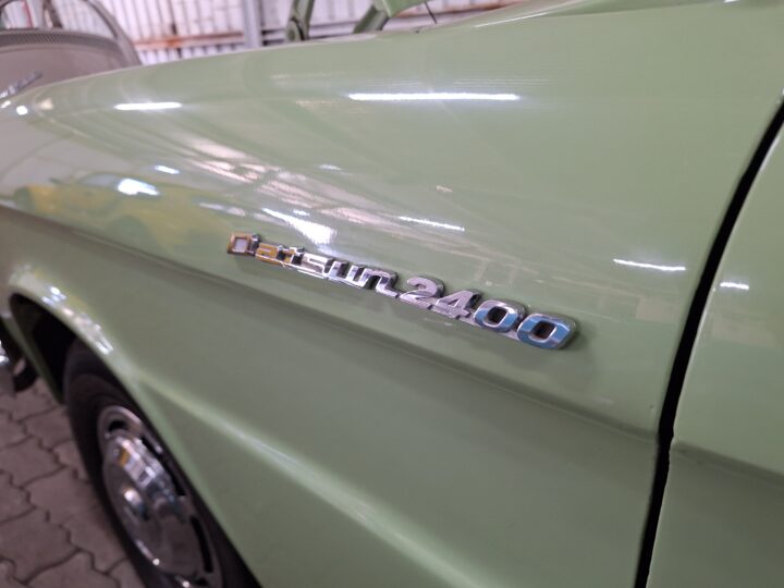 This 1972 Datsun 2400 Super Six is a rare survivor of Nissan’s big six-cylinder saloon era in South Africa. Finished in period green with a contrasting grey vinyl roof, it carries all the right 1970s details, from the slim chrome bumpers and hubcaps to the “Datsun 2400” and “Nissan Full Automatic” badging on the tail – a neat reminder of the brand transition of the time.