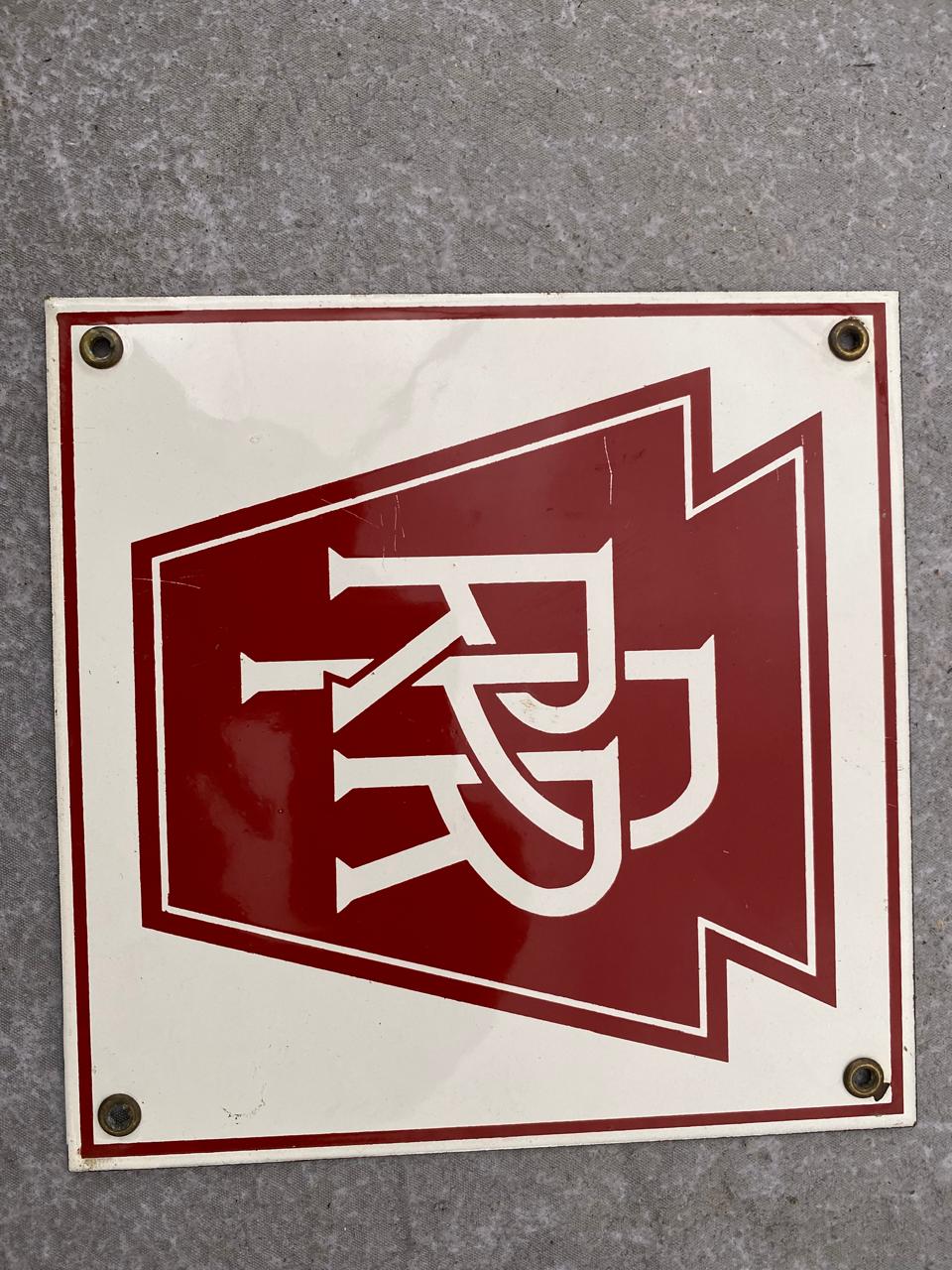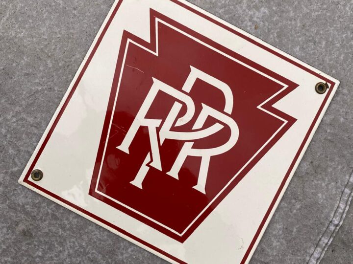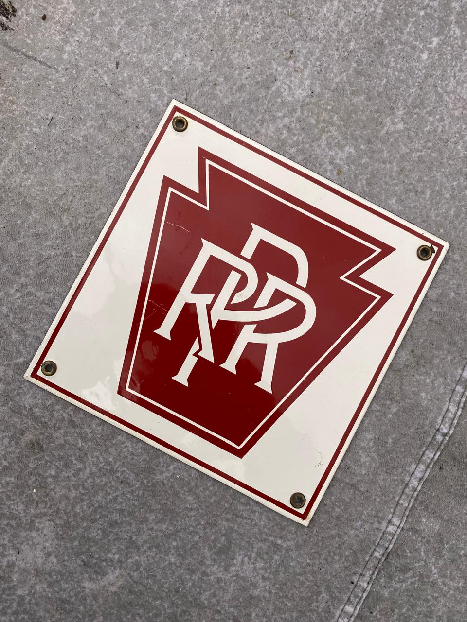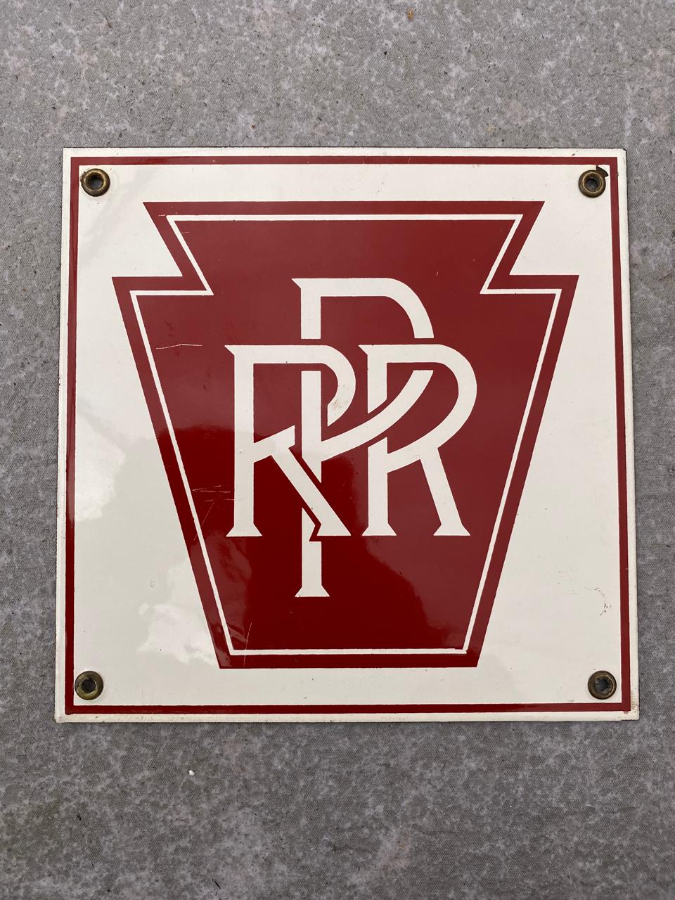 A vintage “Pennsylvania Rail Road” enamel sign, featuring bold period lettering and classic American railway styling. The enamel finish gives it authentic character and durability, making it an excellent display piece for train enthusiasts, collectors of transport memorabilia, or anyone wanting standout vintage décor with genuine U.S. railroad heritage.