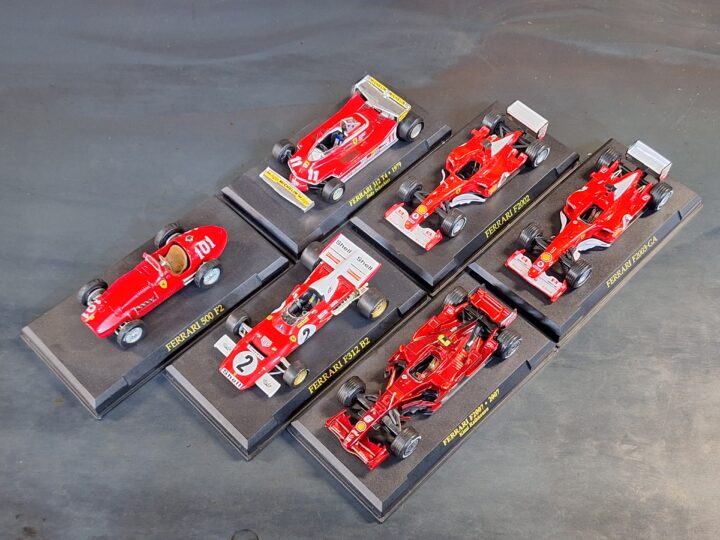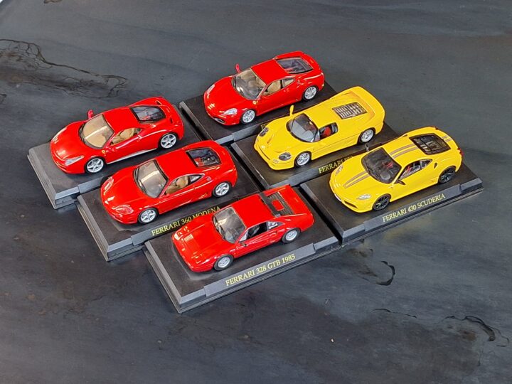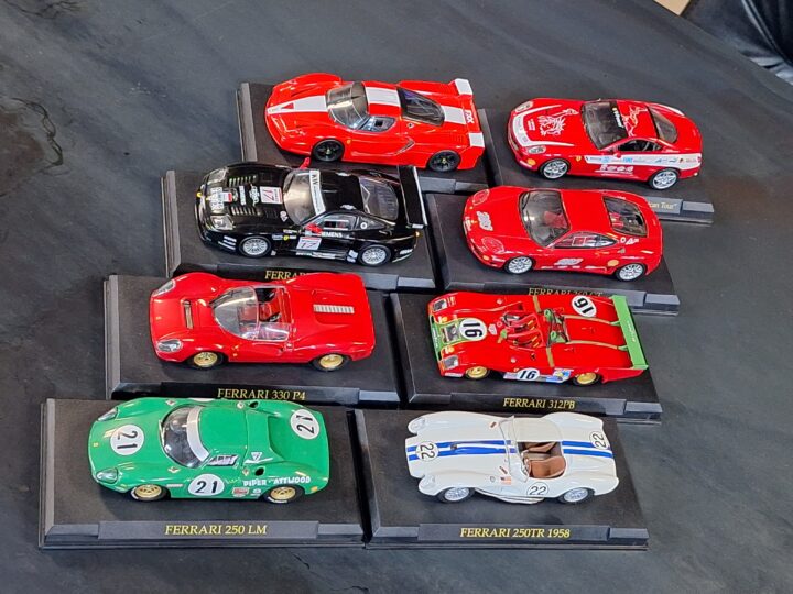 Offered here is a themed collection of 1:43 scale Ferrari models, covering an array of iconic road cars and historic competition machines from different eras of Maranello’s history. From classics like the 250 GTO, 275 GTB and 250 LM to modern heroes such as the 360 Modena, 430 Scuderia, 458 Italia and FXX, this collection delivers a ready-made display for the dedicated Ferrari enthusiast. Most models are presented on their original display bases, supplied without their clear tops.