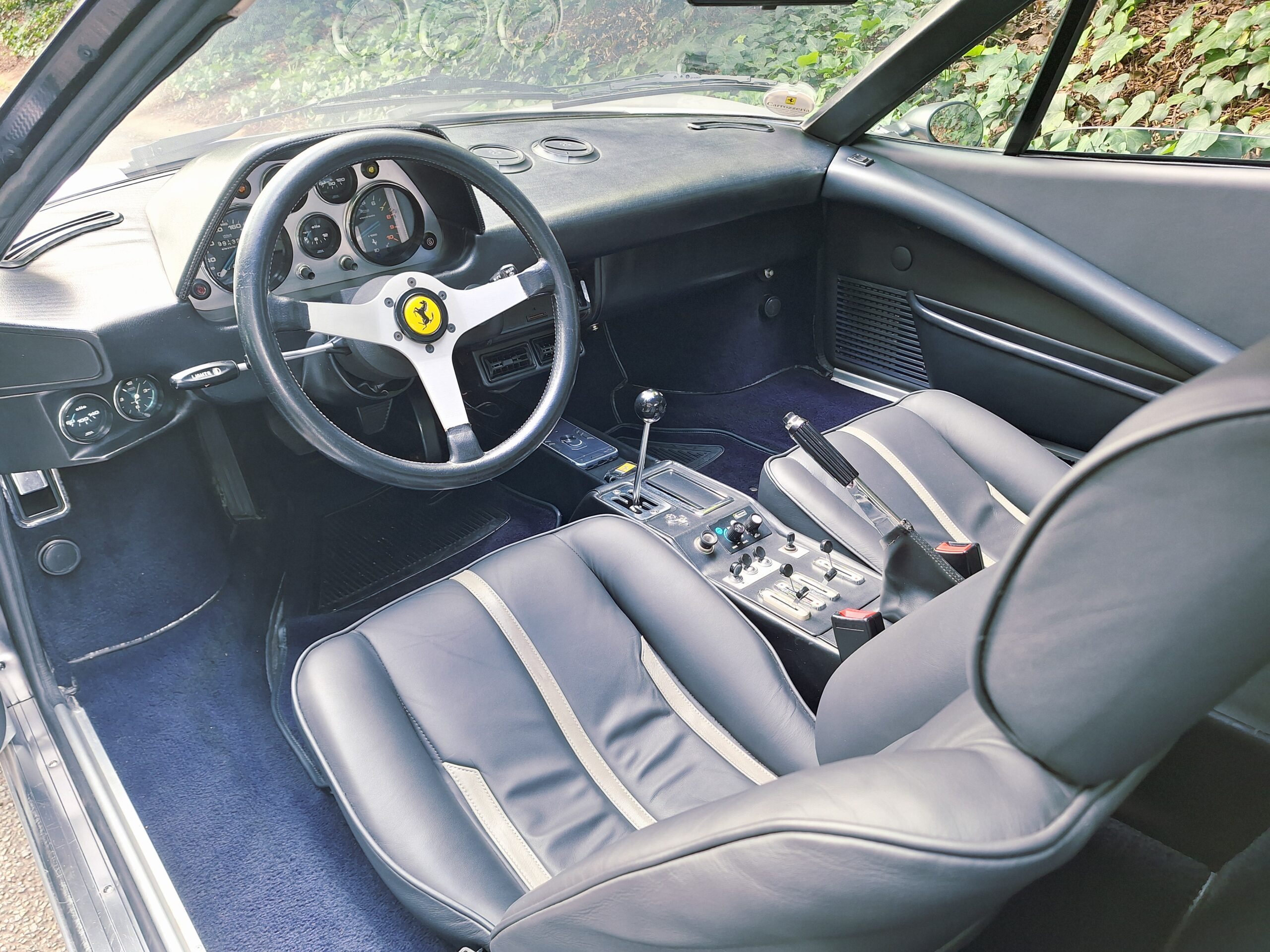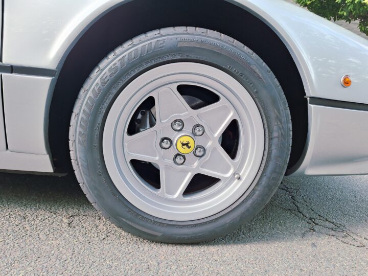 Finished in Argento Silver, this 308 GTB presents a striking alternative to the more commonly seen Rosso Red cars, giving it a subtle but undeniably elegant presence. Inside, the Black and Blue interior provides a distinctive and attractive contrast to the silver exterior.