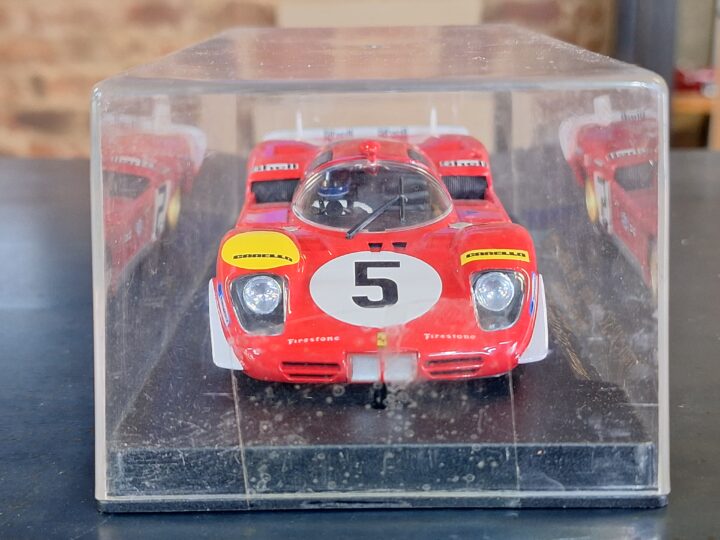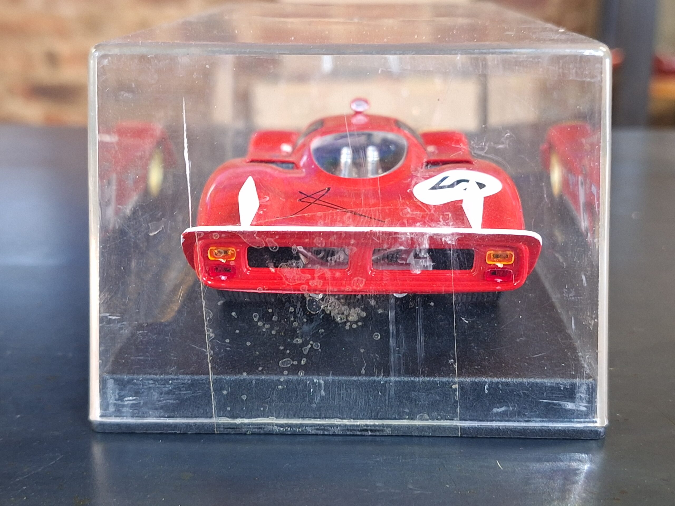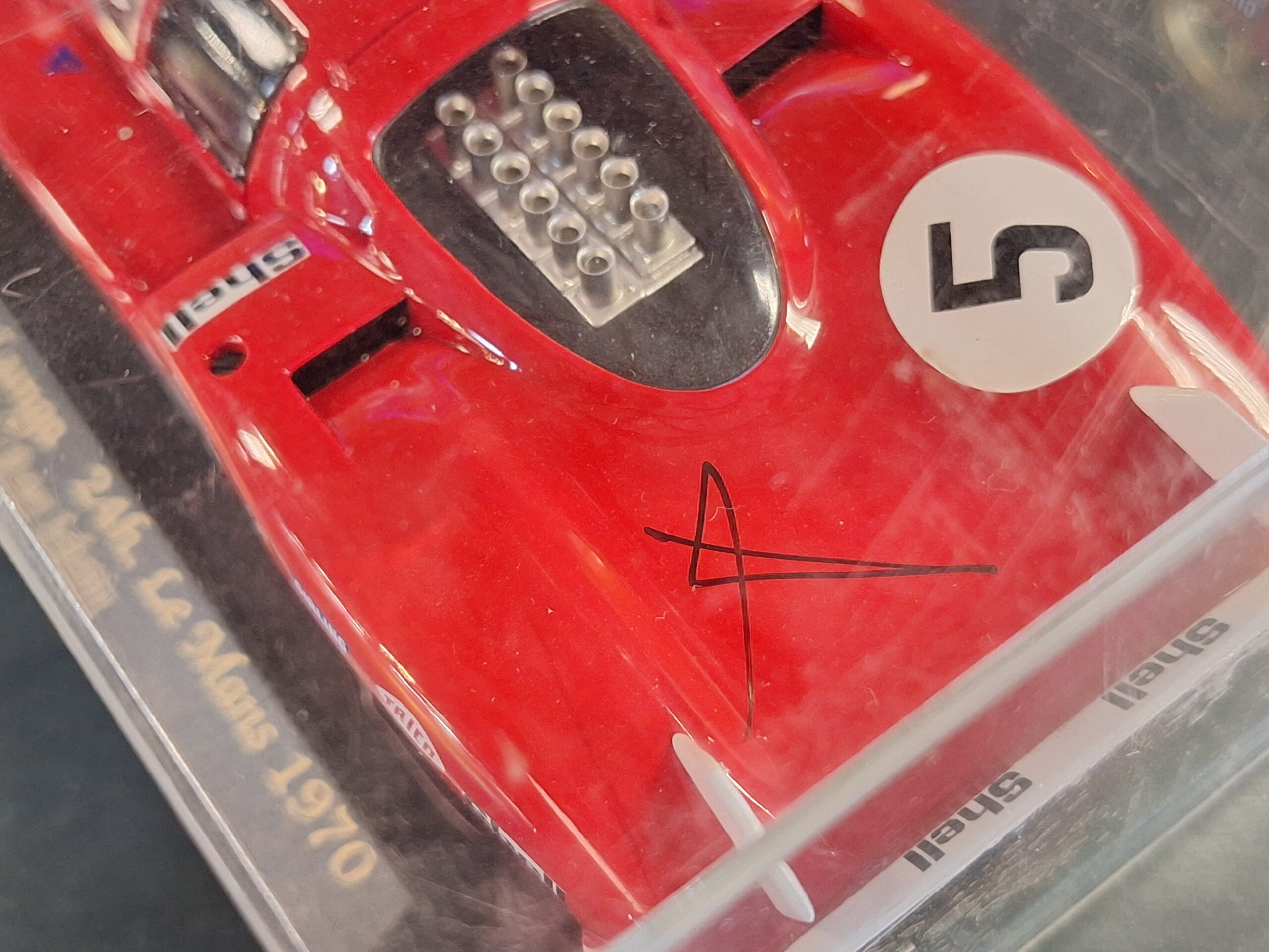 A collectible Fly slot car of the iconic Ferrari 512 S as raced at Le Mans in 1970. This model is brand new and made even more desirable with the authentic signature of racing driver Rafael Barrios on the case.