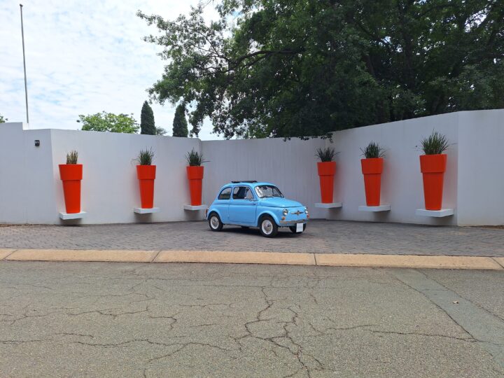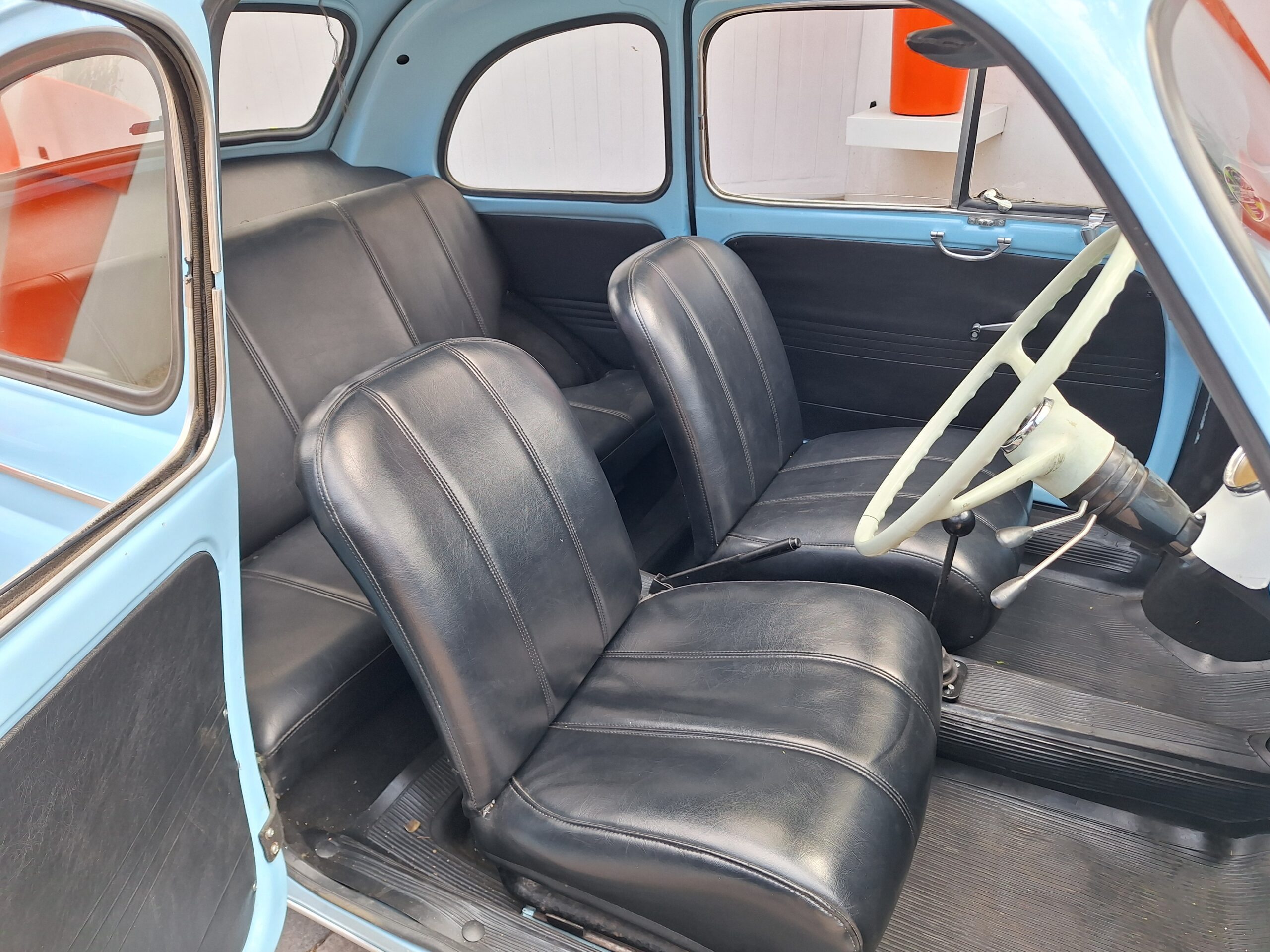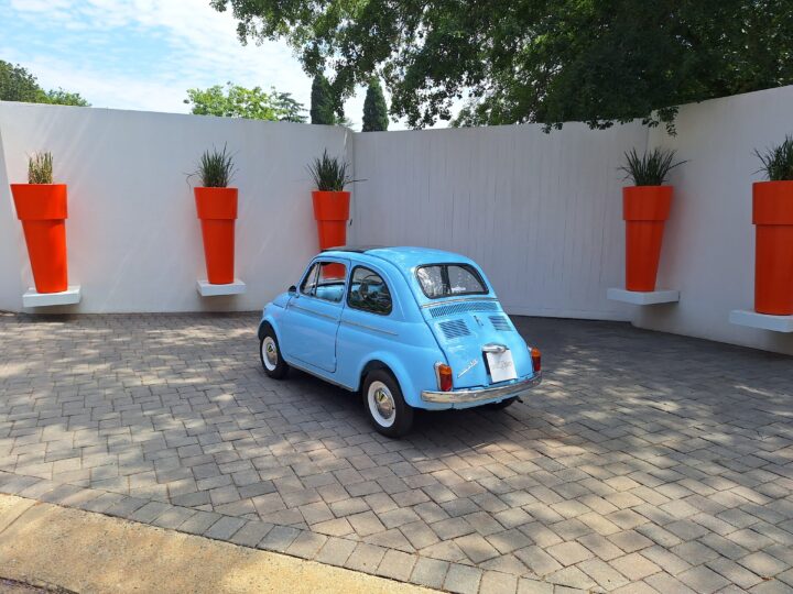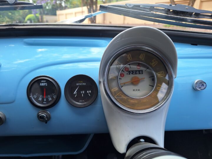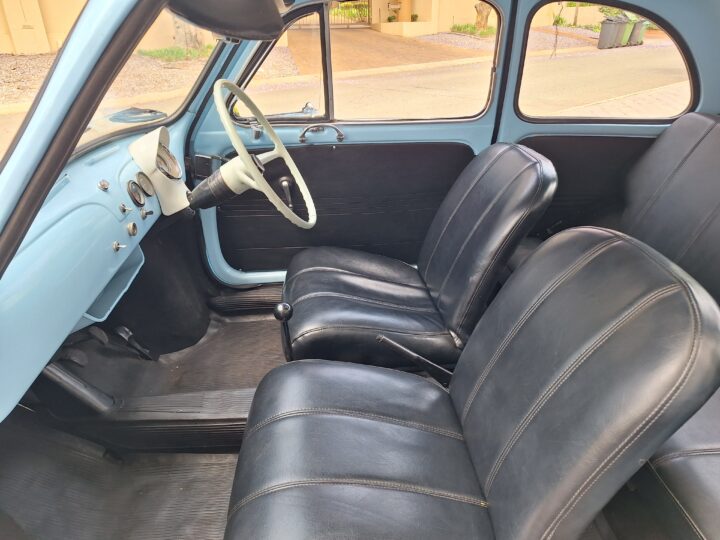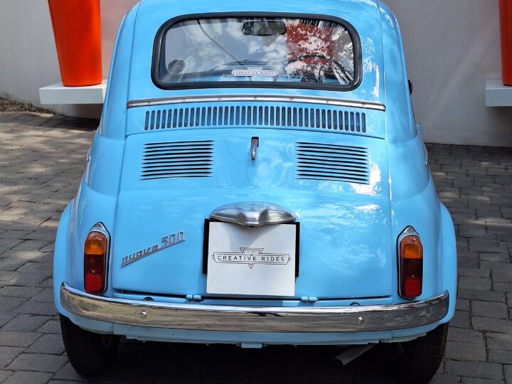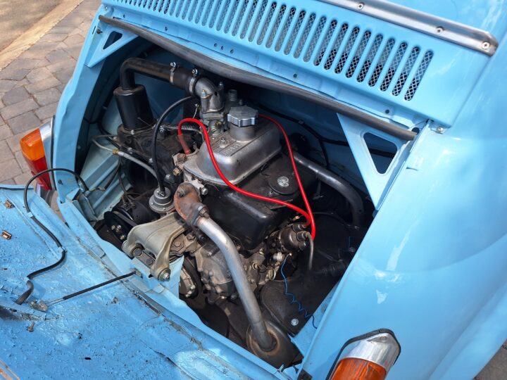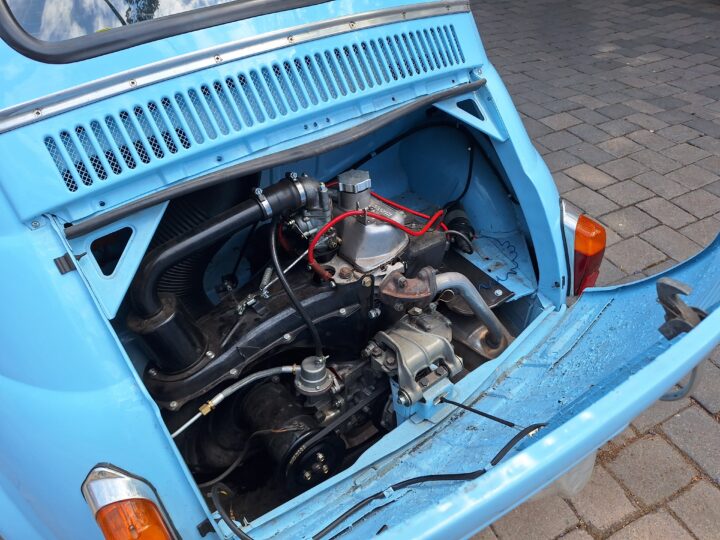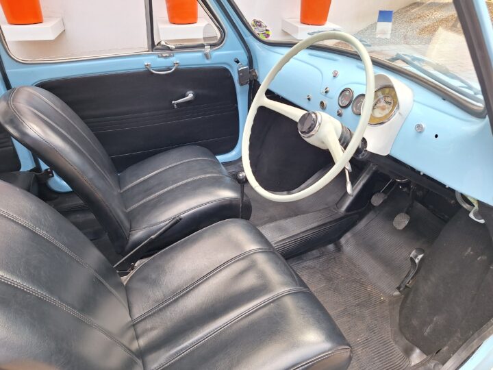 Under the rear engine cover sits Fiat’s charming 479cc twin-cylinder, air-cooled engine, paired to a 4-speed manual gearbox. While it wears an Abarth alloy rocker cover, this particular car is not a true Abarth model, though it certainly channels that same spirited attitude.