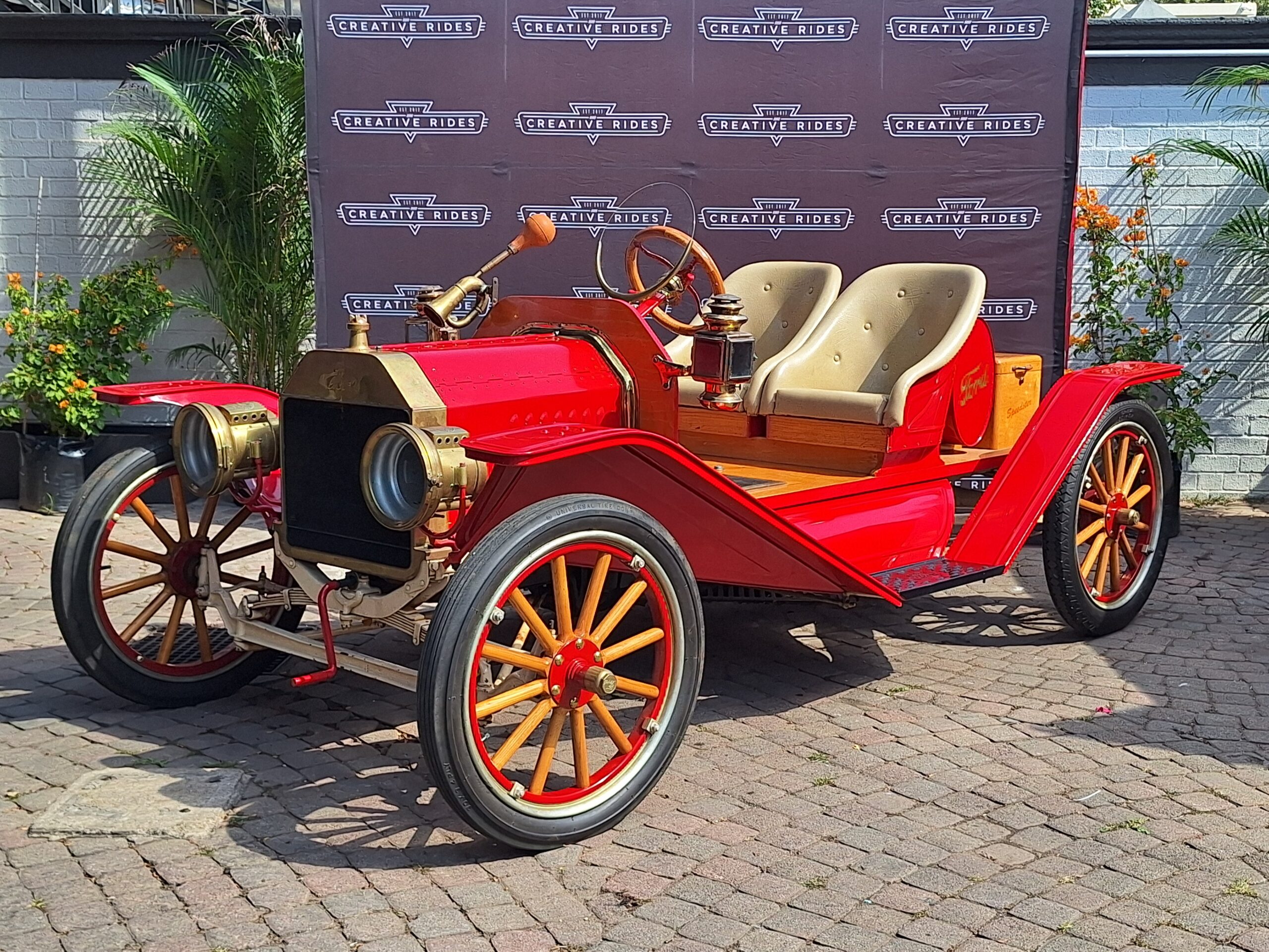 This 1917 Model T Speedster is a charming open-top two-seater, built from a fascinating combination of steel, wood and brass that perfectly captures the spirit of a bygone era. Finished in red with cream seats, it presents well and is reported to be in running and driving condition, although it would benefit from a service and general check-over before regular use.