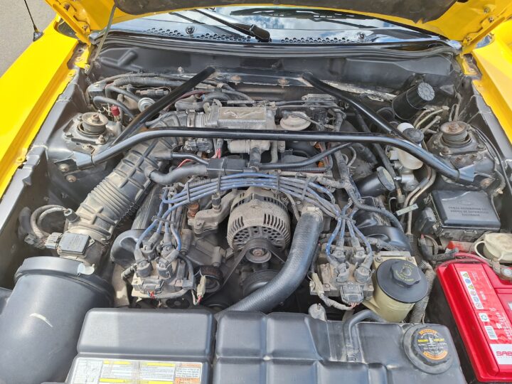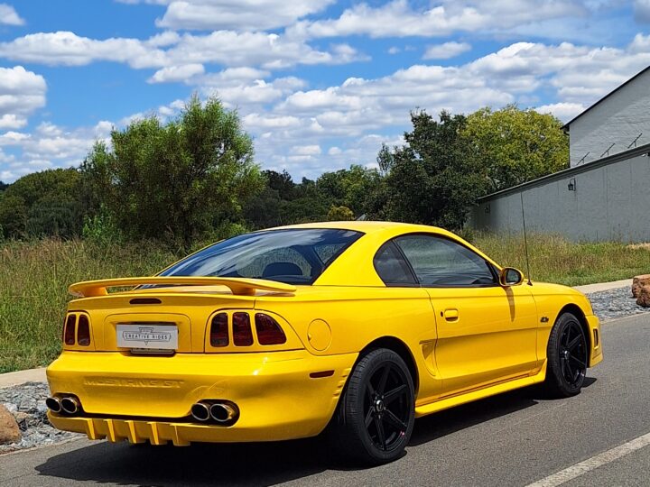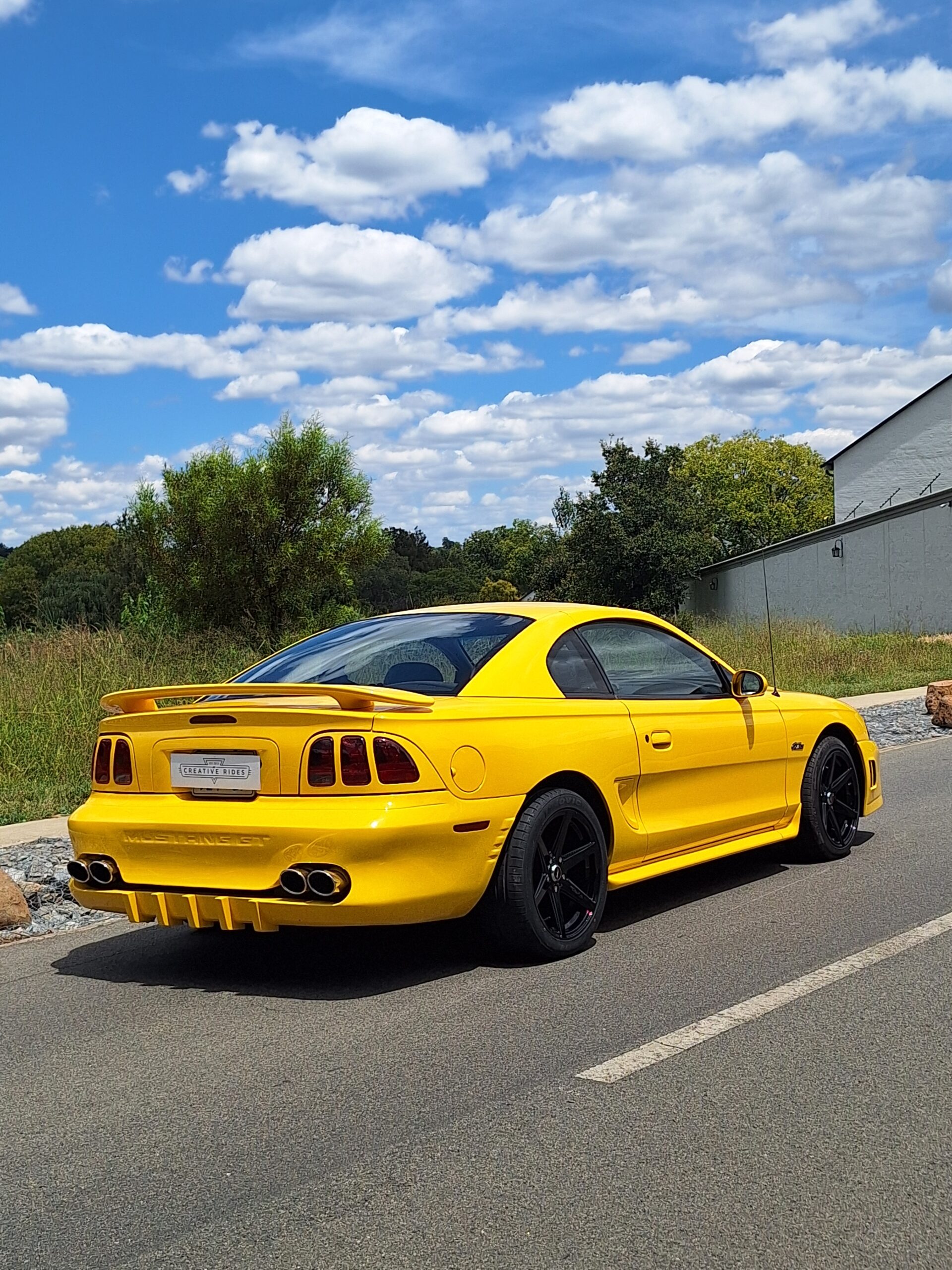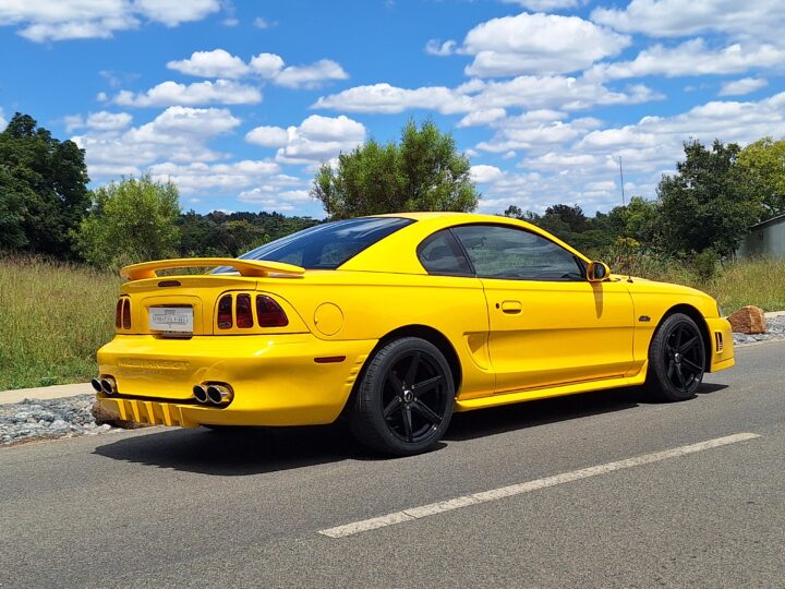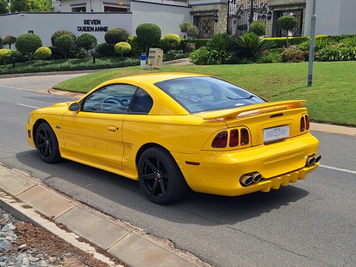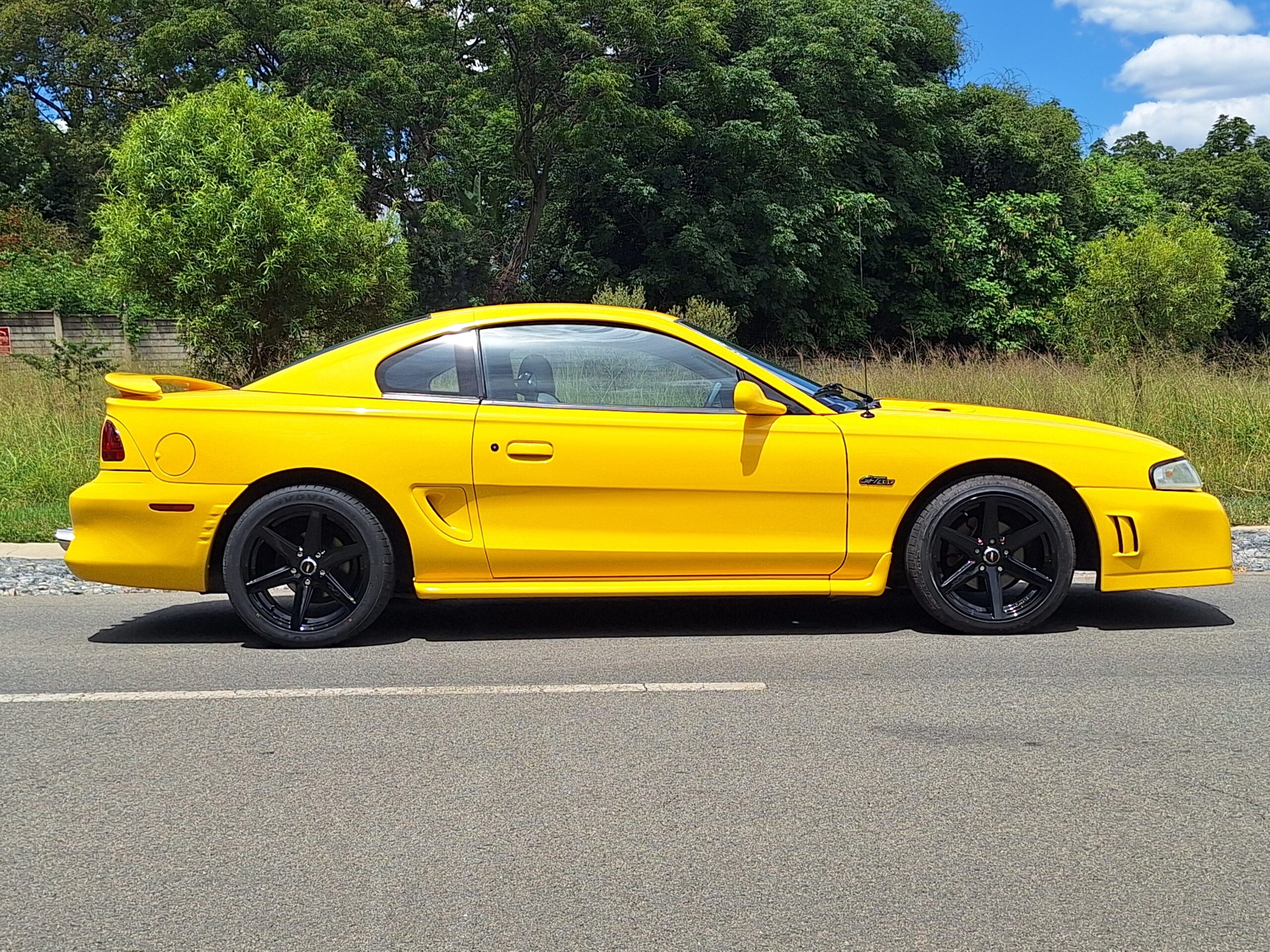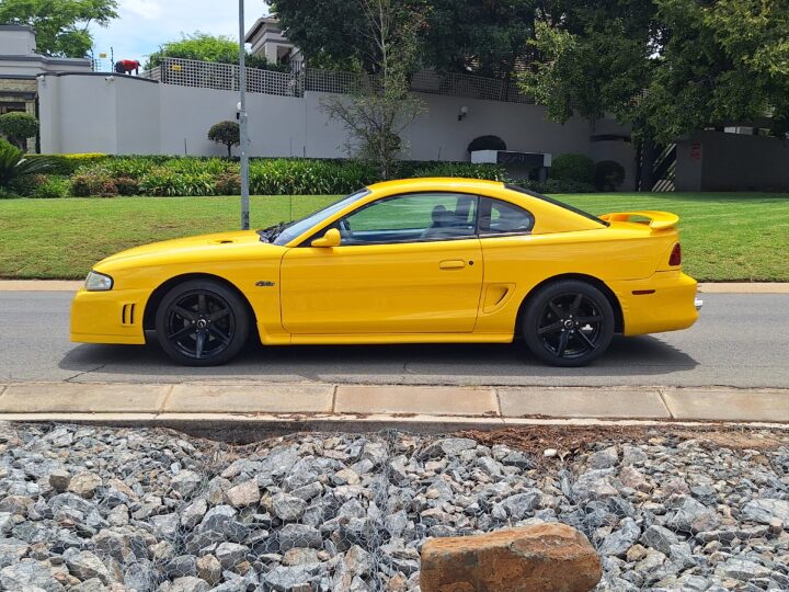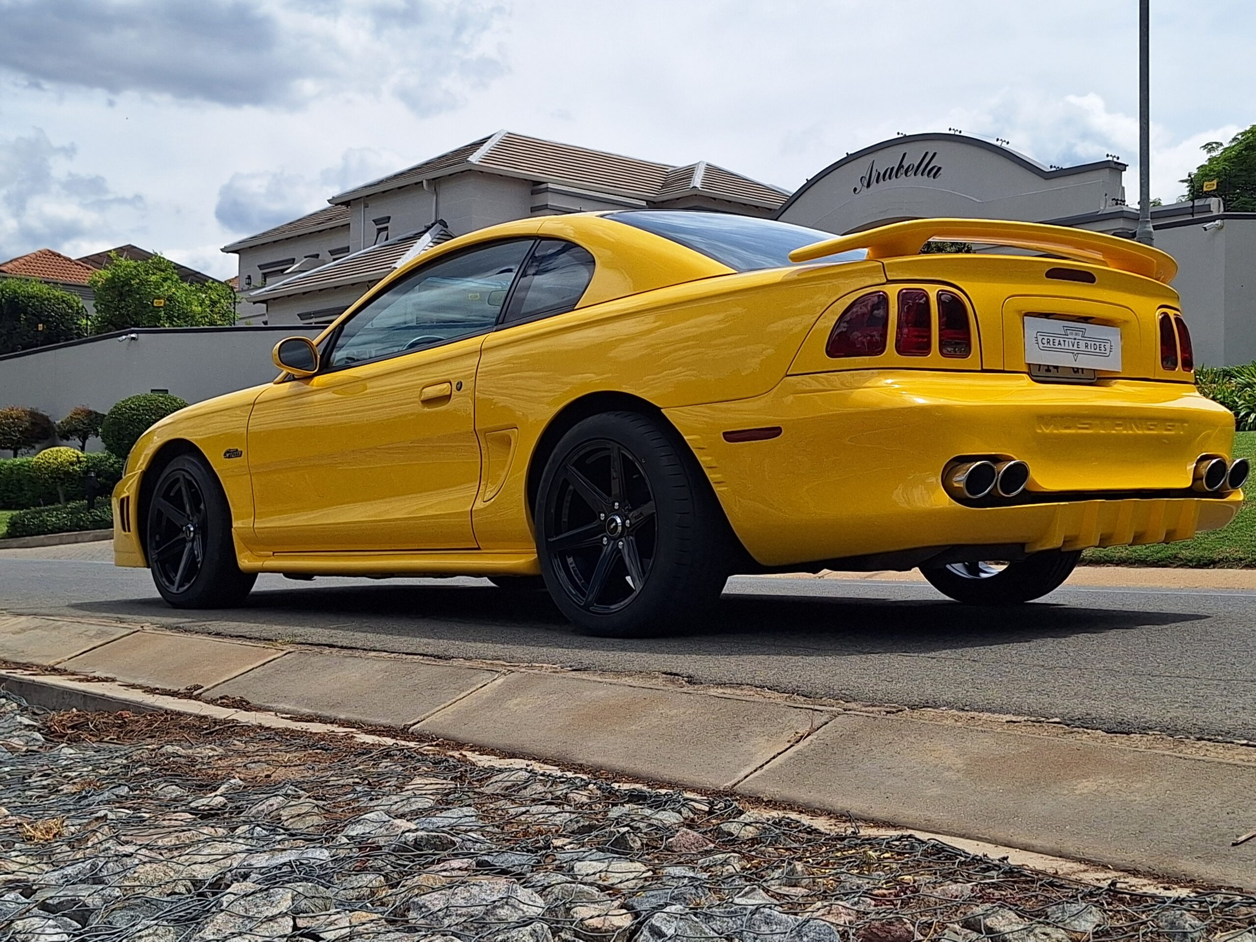This 1990s Ford Mustang GT is pure American muscle with a bit of street attitude thrown in for good measure. Finished in bright yellow and riding on gloss black aftermarket wheels, this is not a car for the shy or the subtle. It is bold, loud in its presence, and carries that unmistakable Mustang swagger wherever it goes.