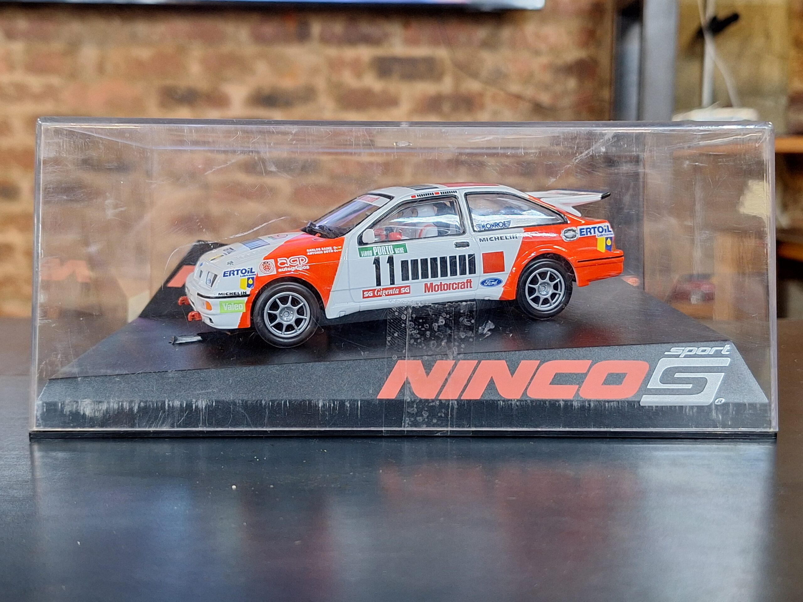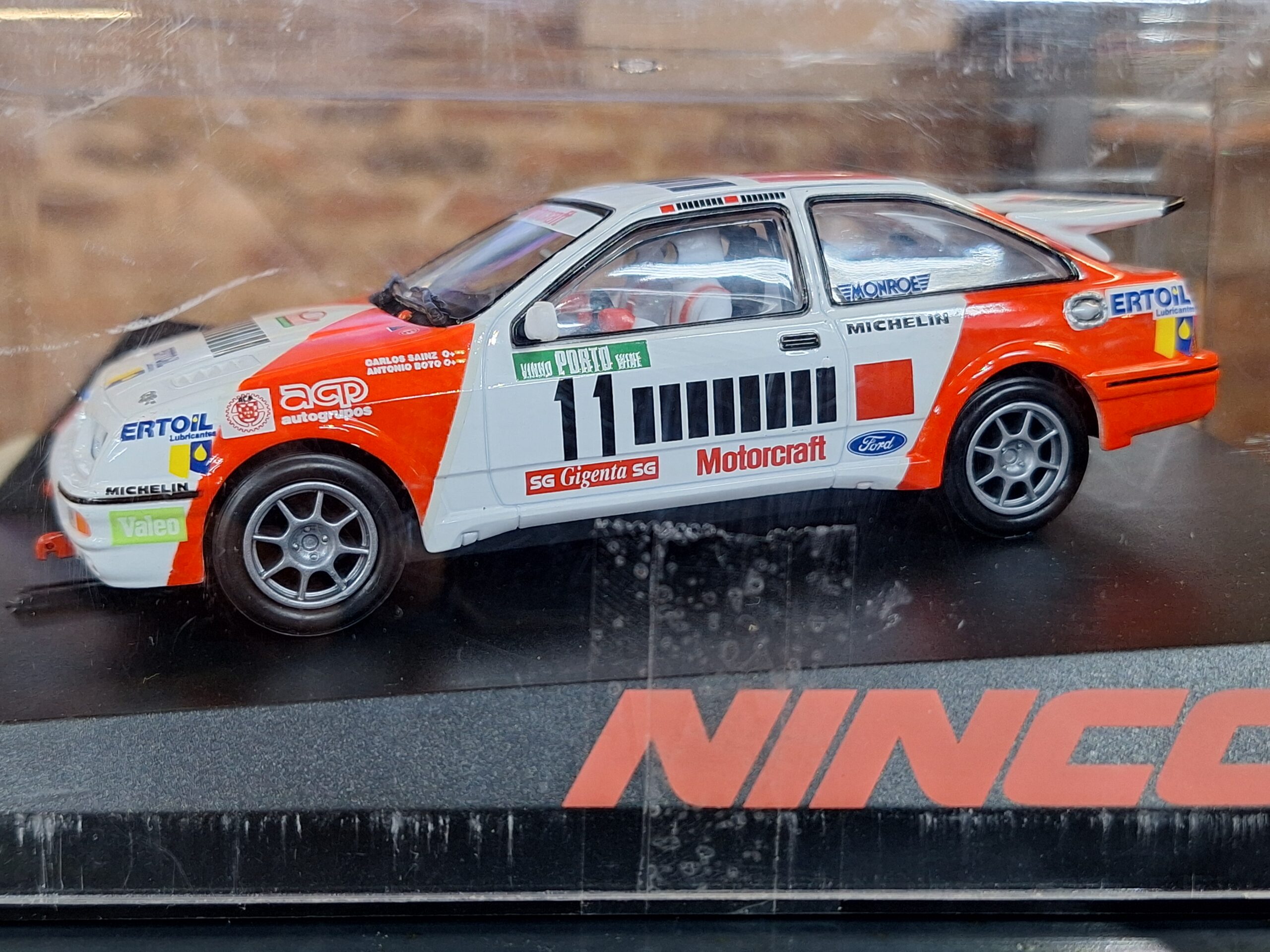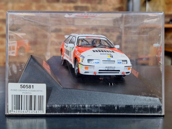 A brand new Ninco S1 Sport slot car of the iconic Ford Sierra Cosworth, Ref 50581. Known for its sharp detailing and strong track performance, this model is a must-have for touring car and Group A rally fans.