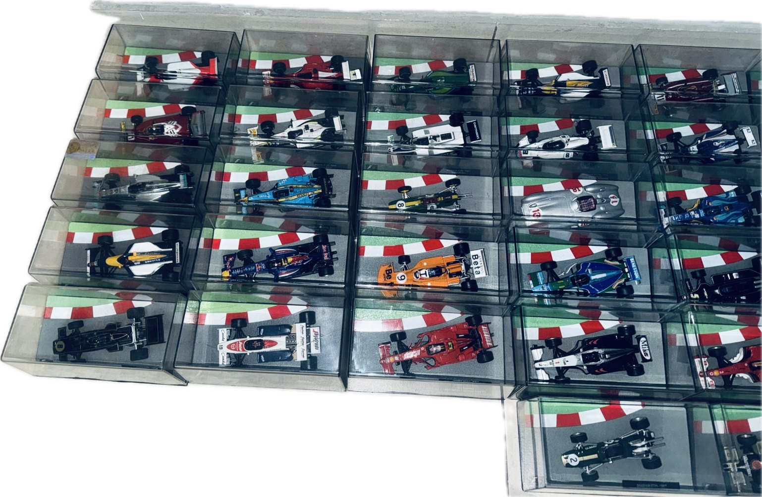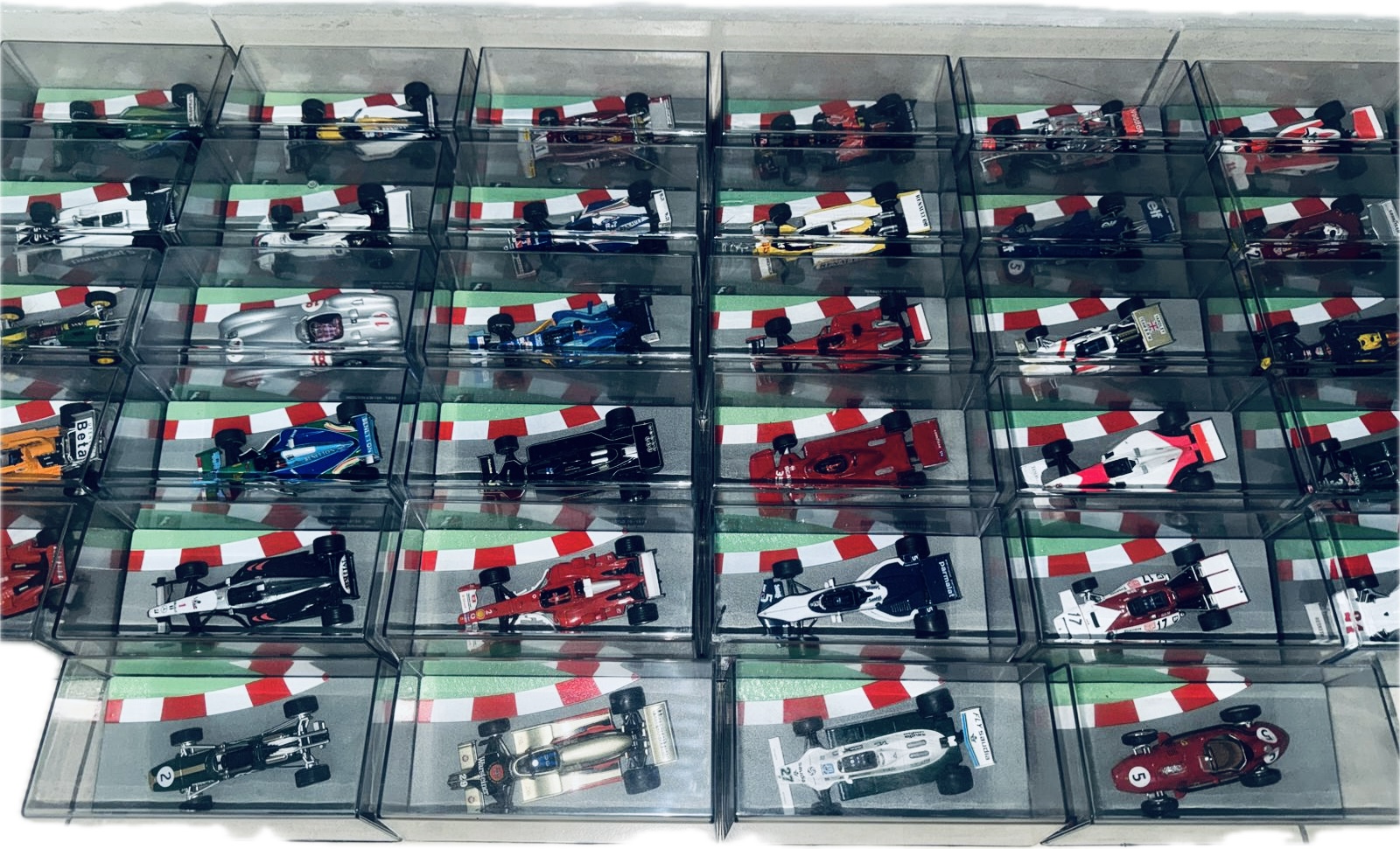 A fantastic collection for F1 enthusiasts, model collectors, or anyone wanting a comprehensive and educational display of iconic Formula 1 machinery.