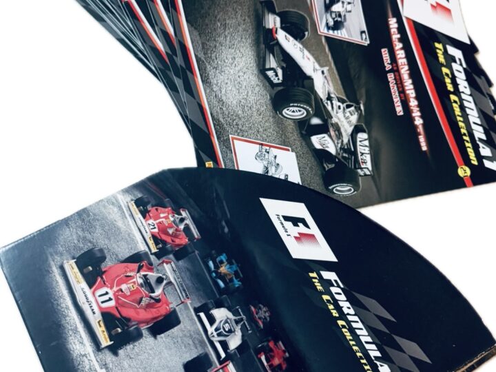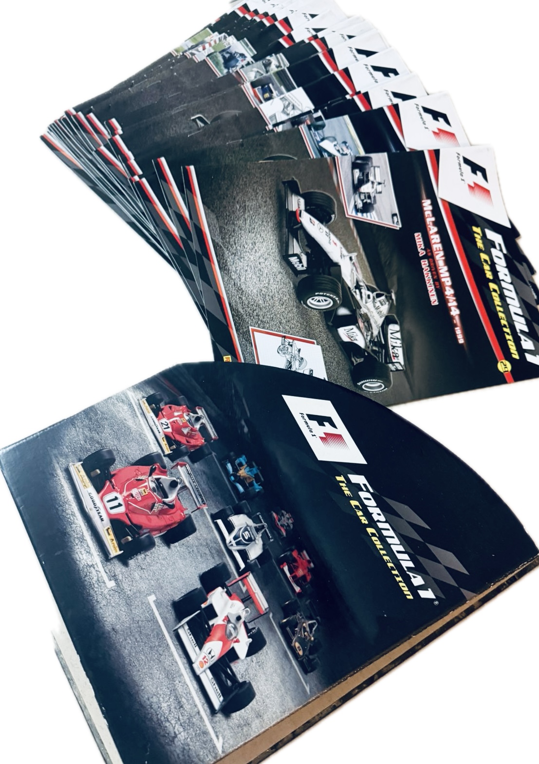 An extensive Panini/Ixo Formula 1 model collection, comprising almost a full set of detailed F1 cars. Each model comes with its original magazine, providing background information on the car, driver, team, and racing history.