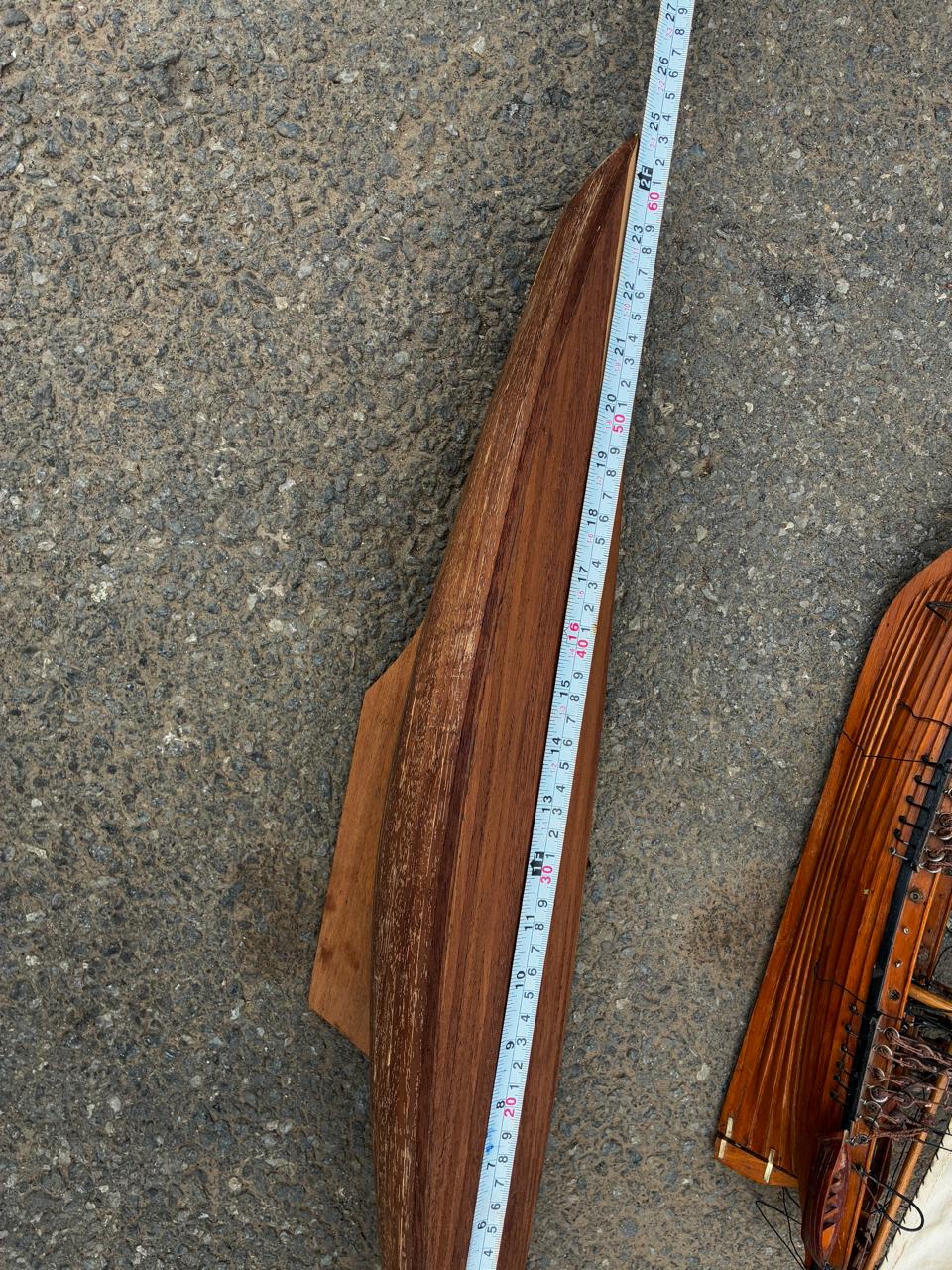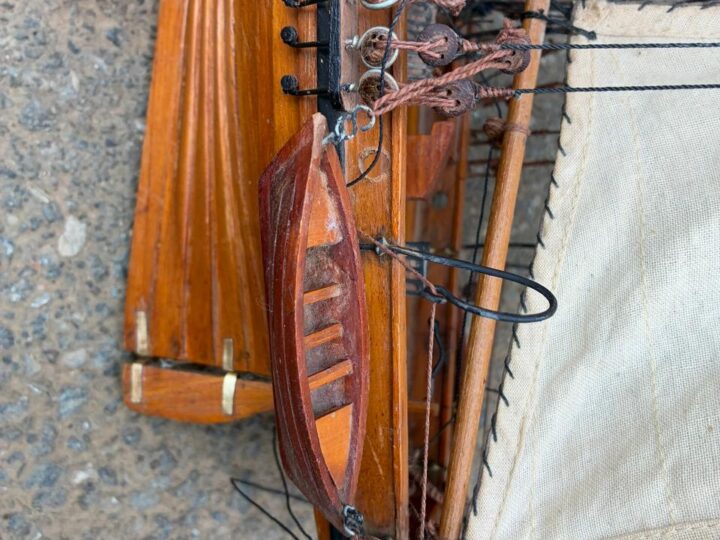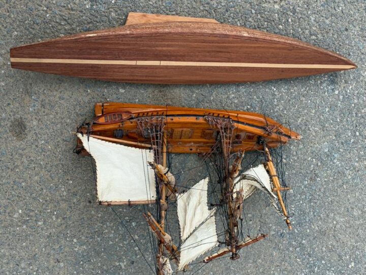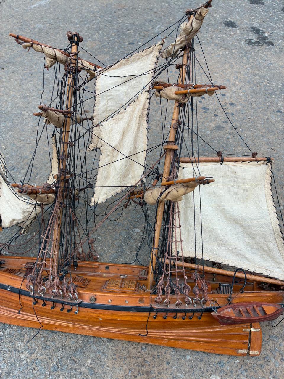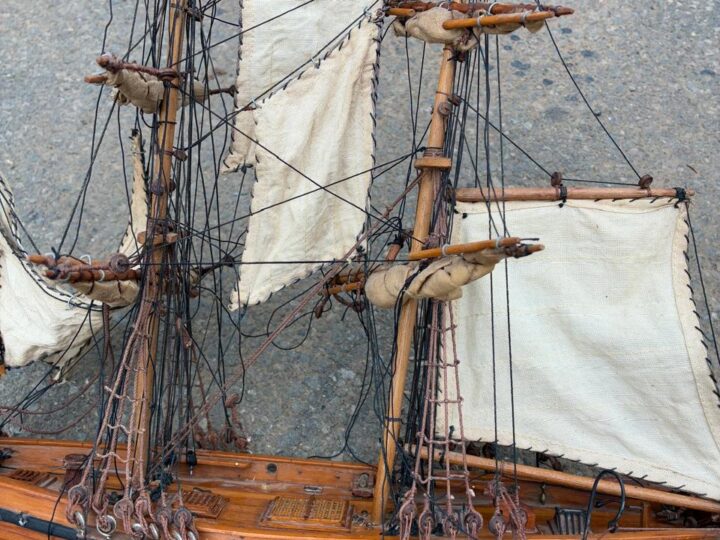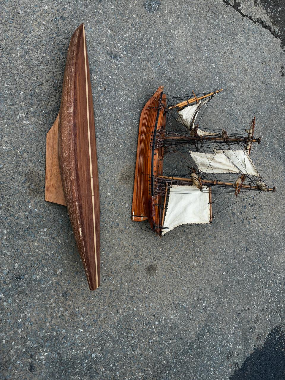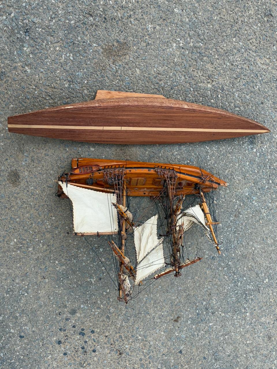Pair of hand-built wooden sailing boats from a deceased estate, nicely crafted and ideal as decorative display pieces. Perfect for a study, office, bar or nautical-themed room, and a charming addition for anyone who appreciates traditional model boat craftsmanship.
