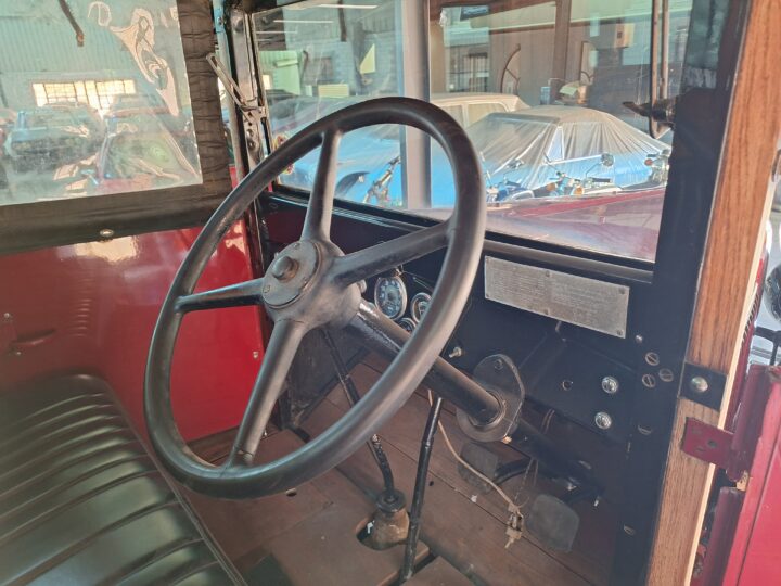Finished in bright red with black guards, red artillery wheels and a stained timber load bed, it has loads of presence and would look at home in a museum, collection, or in front of a period-style business as rolling signage. After more than 70 years it is still running, with its character and patina intact.