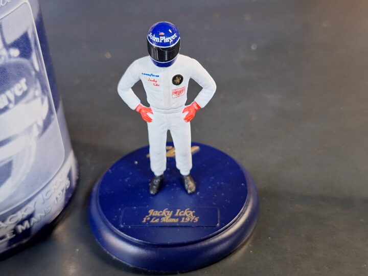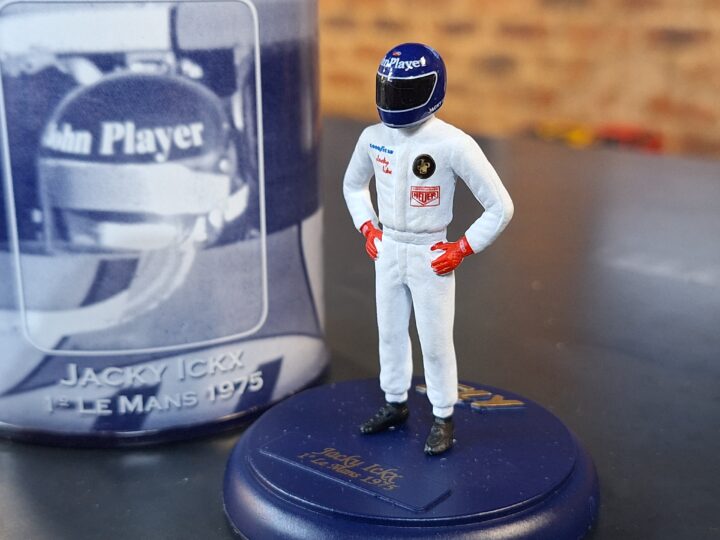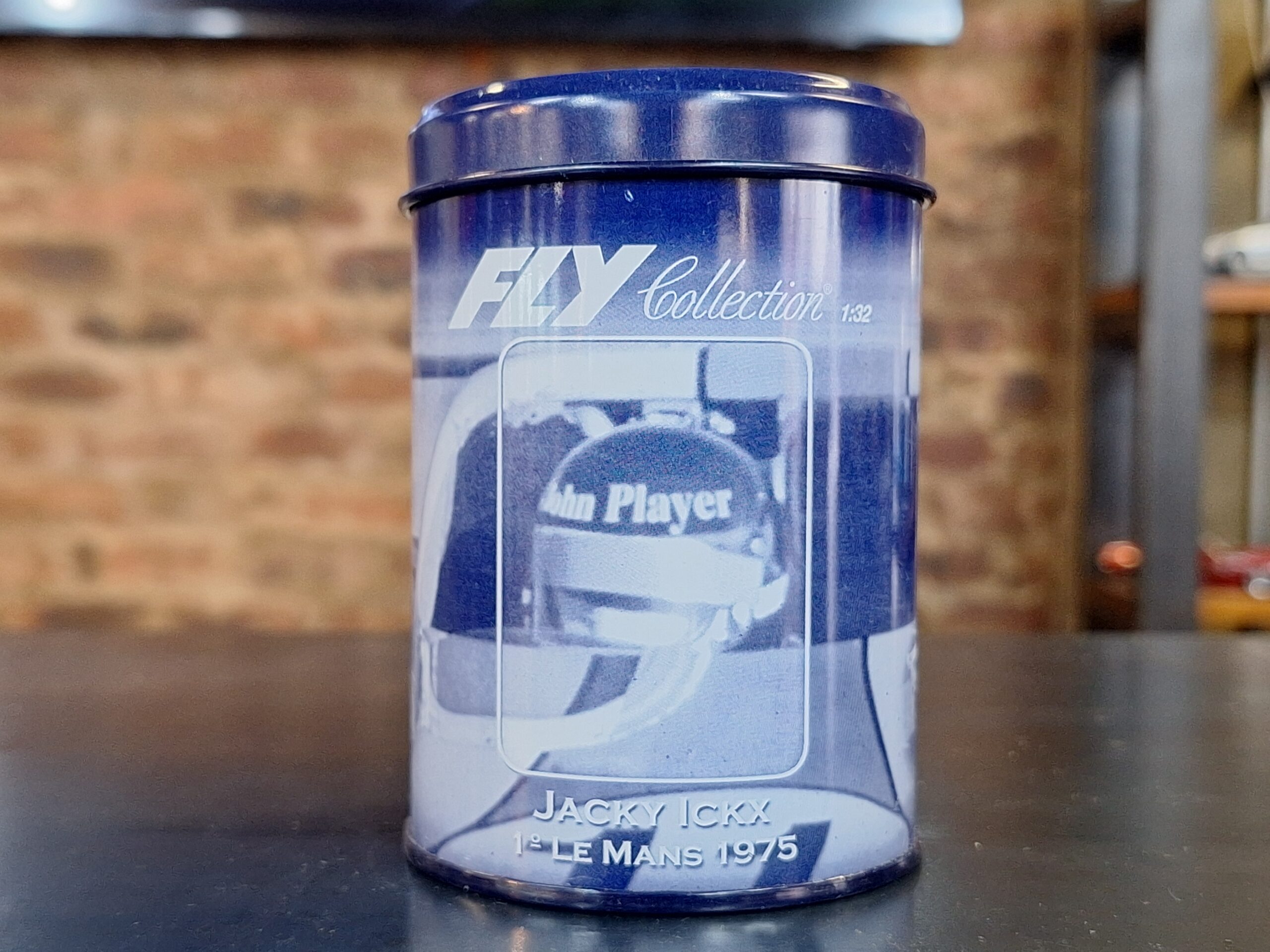 A collectible Fly 1:32 cast metal model statue celebrating Jacky Ickx’s 1st place at Le Mans in 1975. Beautifully detailed and presented in its original Fly tin can, this piece captures the legacy of one of endurance racing’s greatest drivers.