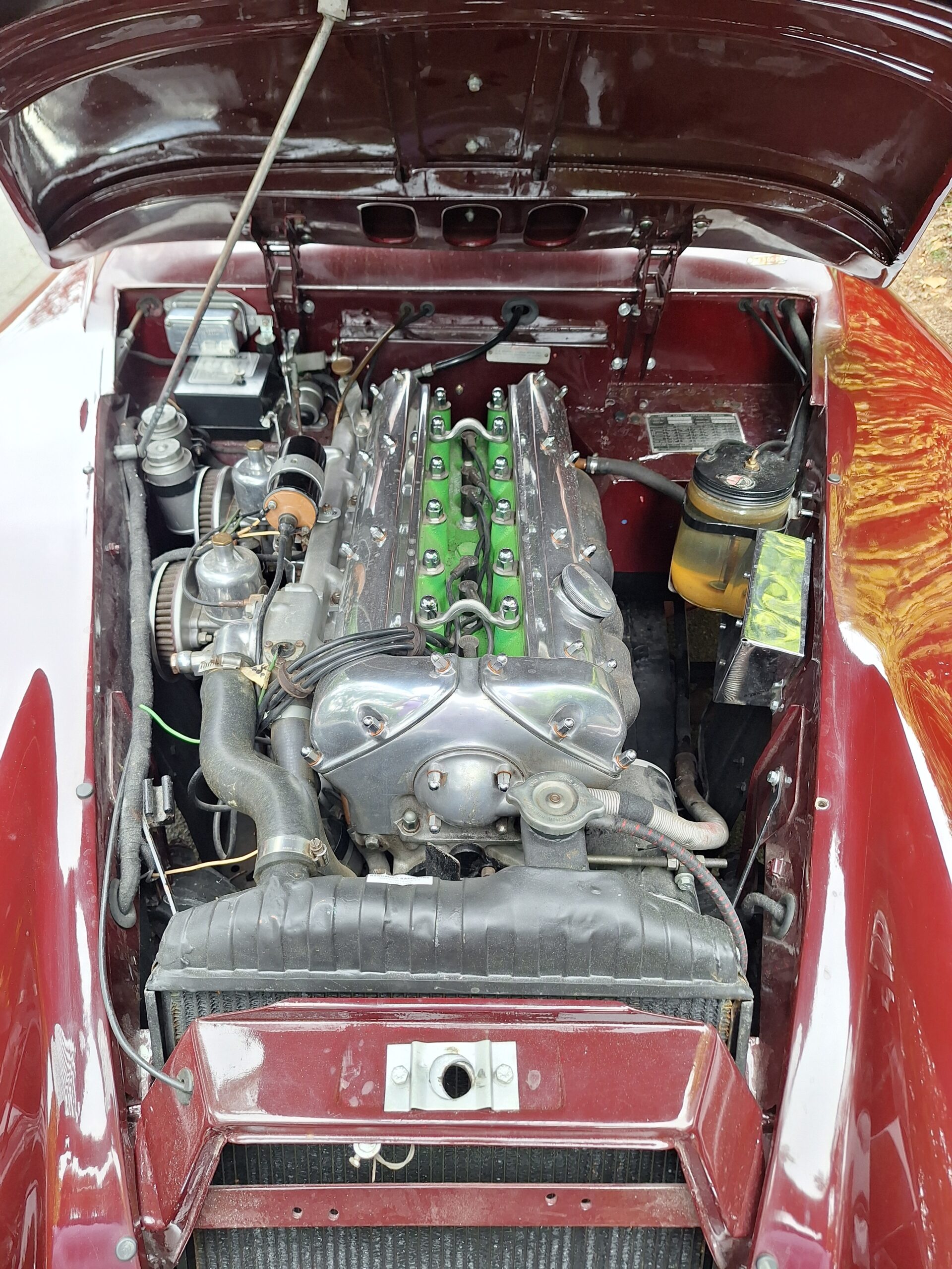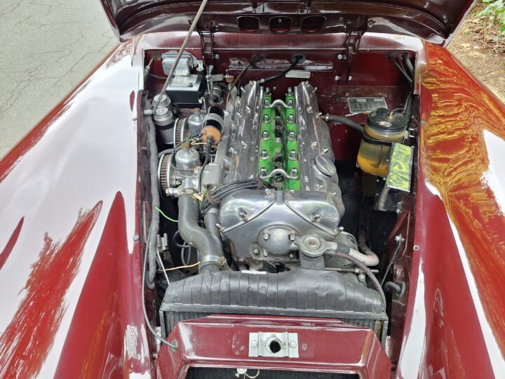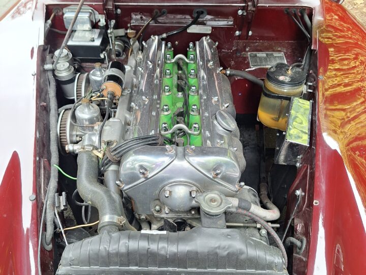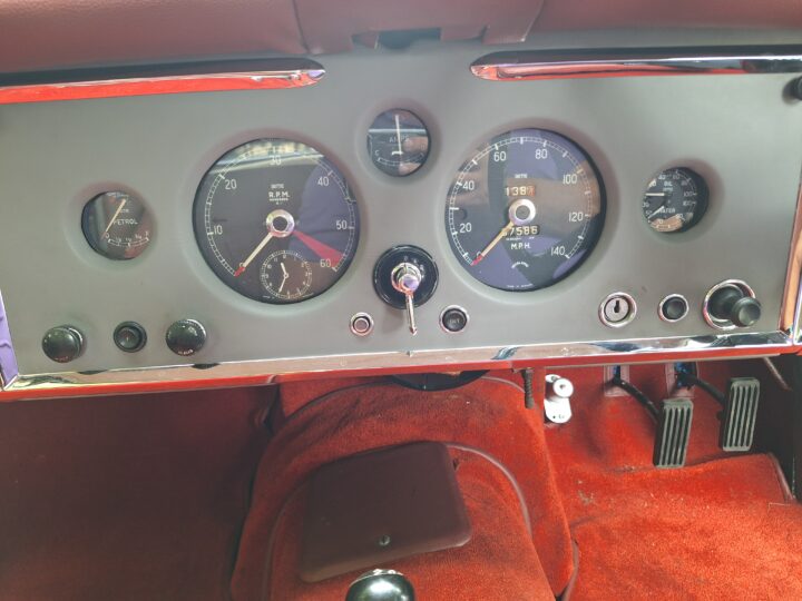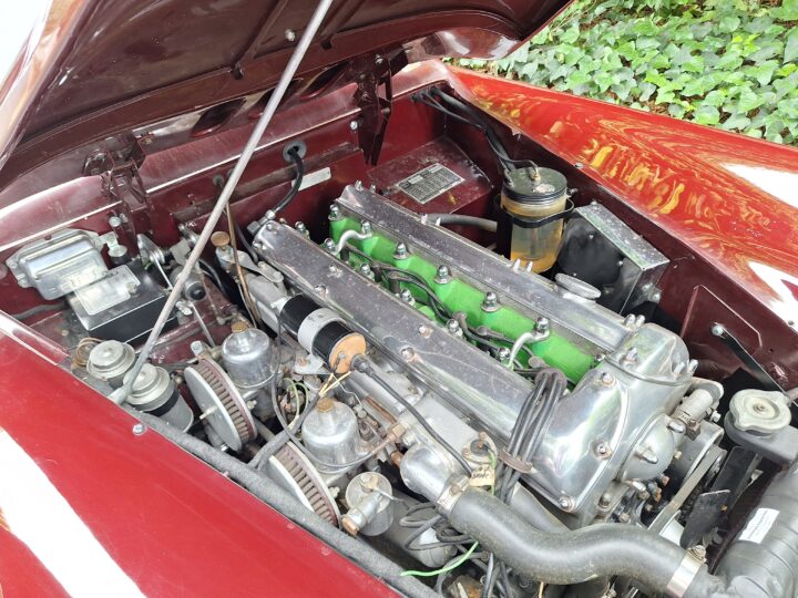 It sits on classic wire wheels with the correct spare, has been sympathetically restored and repainted, and is accompanied by a Jaguar Heritage Certificate. A highly collectible post-war Jaguar and a serious enthusiast’s classic.