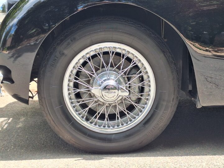 Like the racing cars it descends from, this XK150 is equipped with Dunlop disc brakes on all four wheels – a major technological leap at the time and one of the reasons the XK150 was considered one of the safest, most advanced sporting cars of the late 1950s. Stopping power matches the performance, giving real confidence on modern roads.